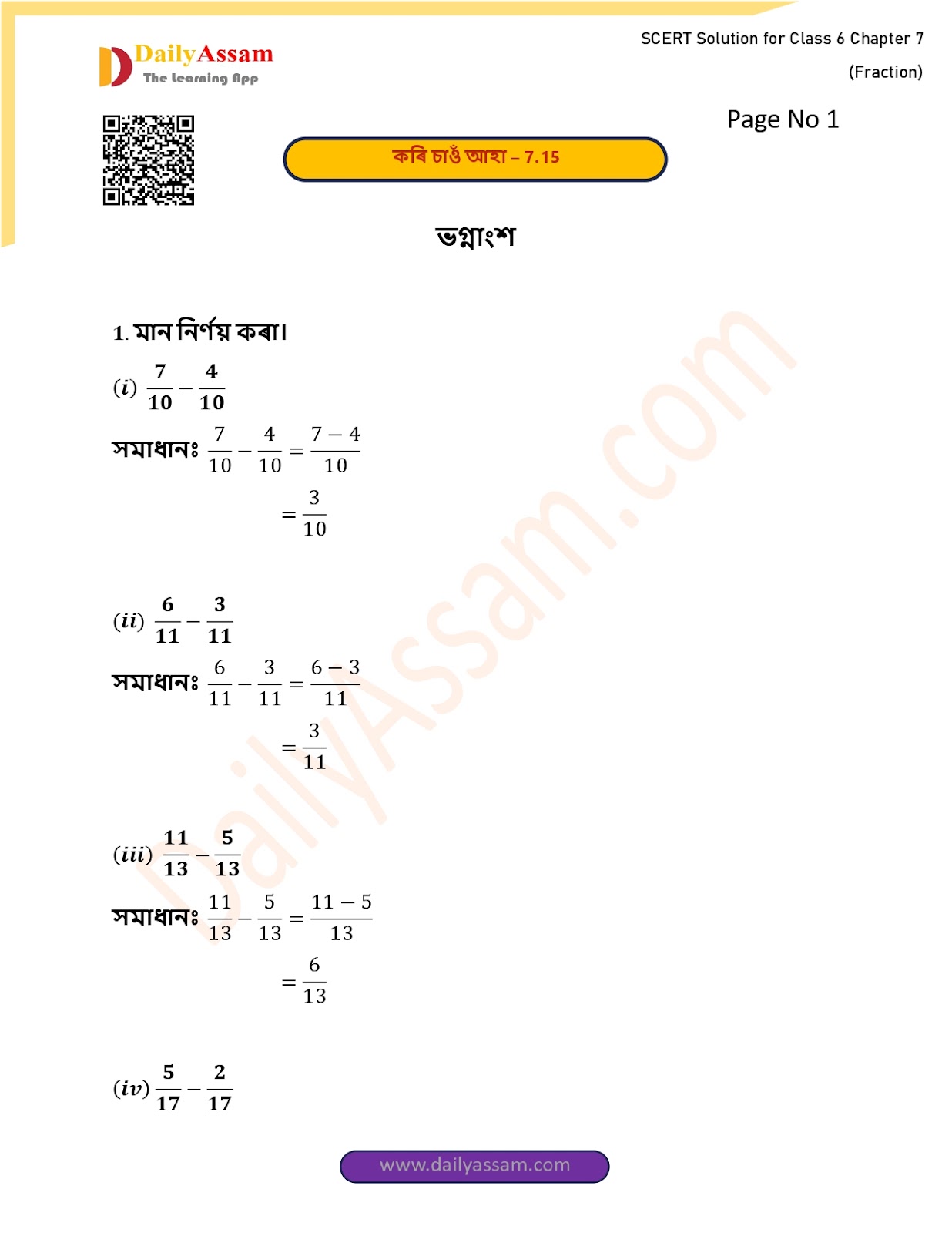 SEBA Class 6 Mathematics Chapter 7 Solution | Assam Board Class 6 Mathematics Chapter 7 ভগ্নাংশ (Fractions) Answer | 2025 - 2026