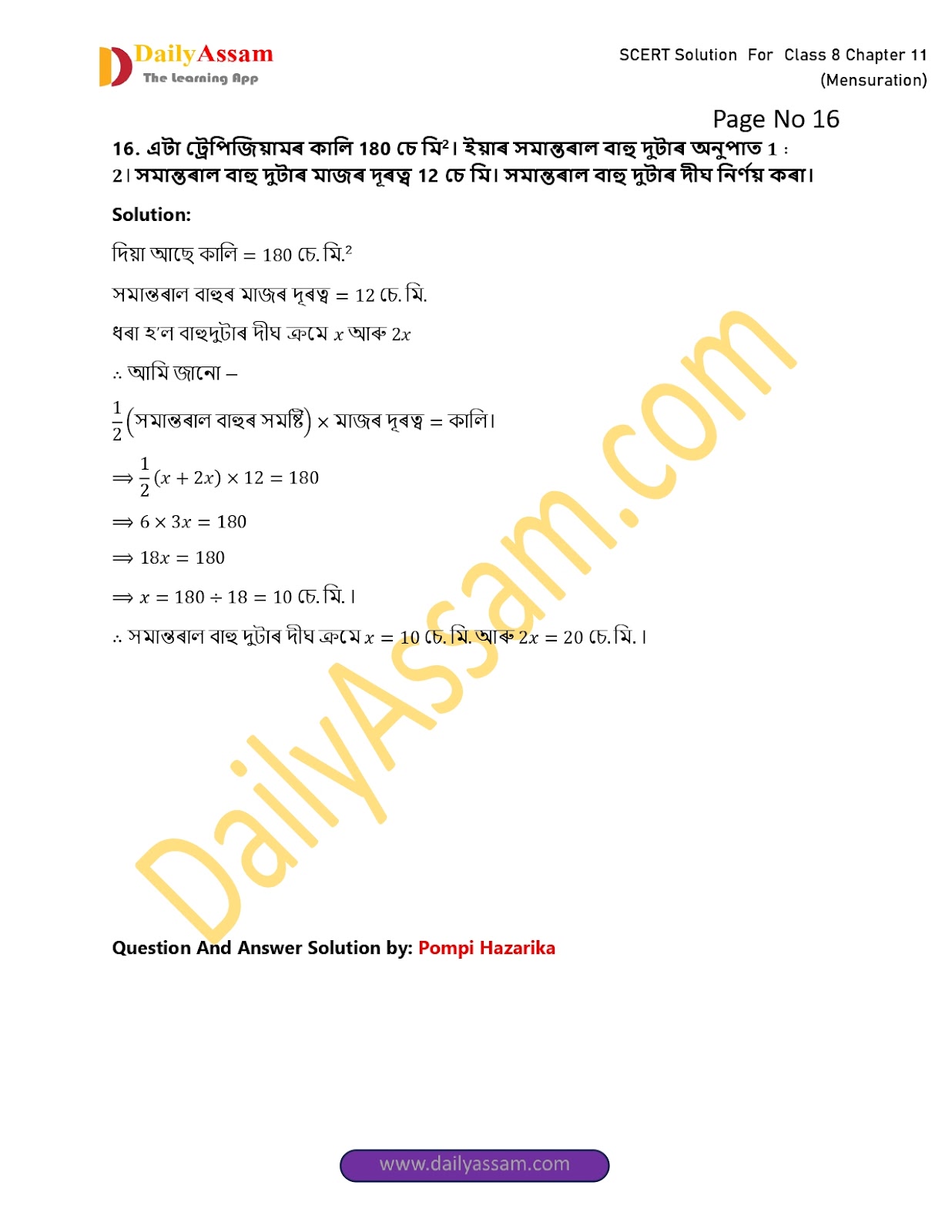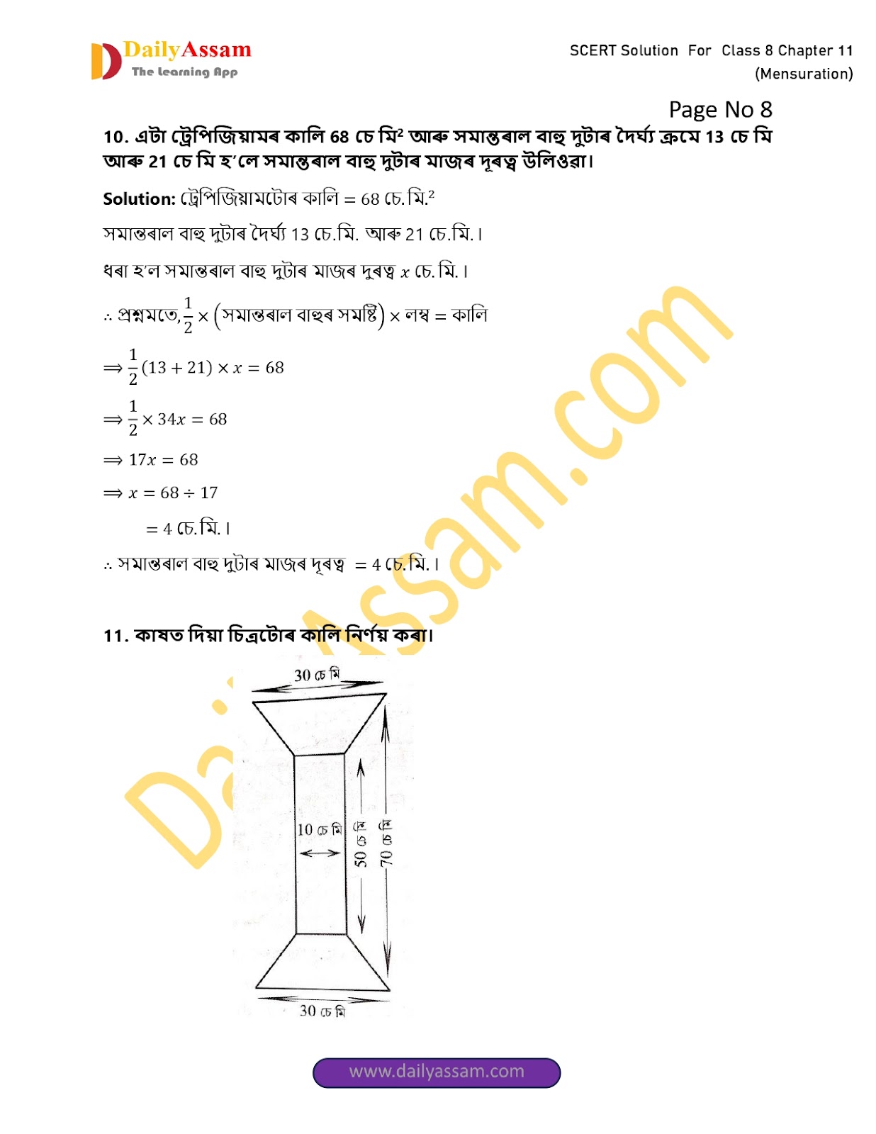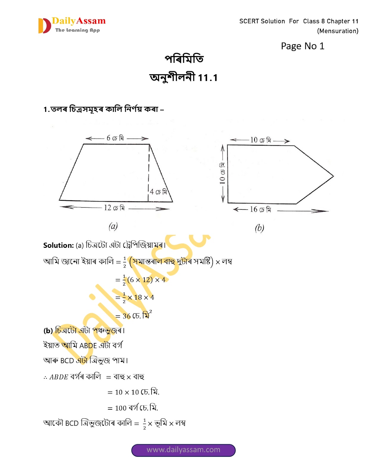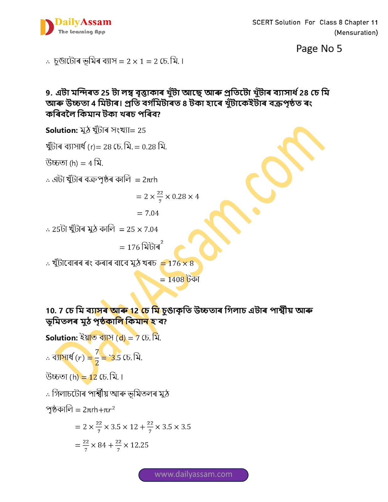 HomeClass 8 Mathematics SCERTSEBA Class 8 Mathematics Chapter 11 Solution | Assam Board Class 8 Mathematics Chapter 11 পৰিমিতি (Mensuration) Answer |2025-2026