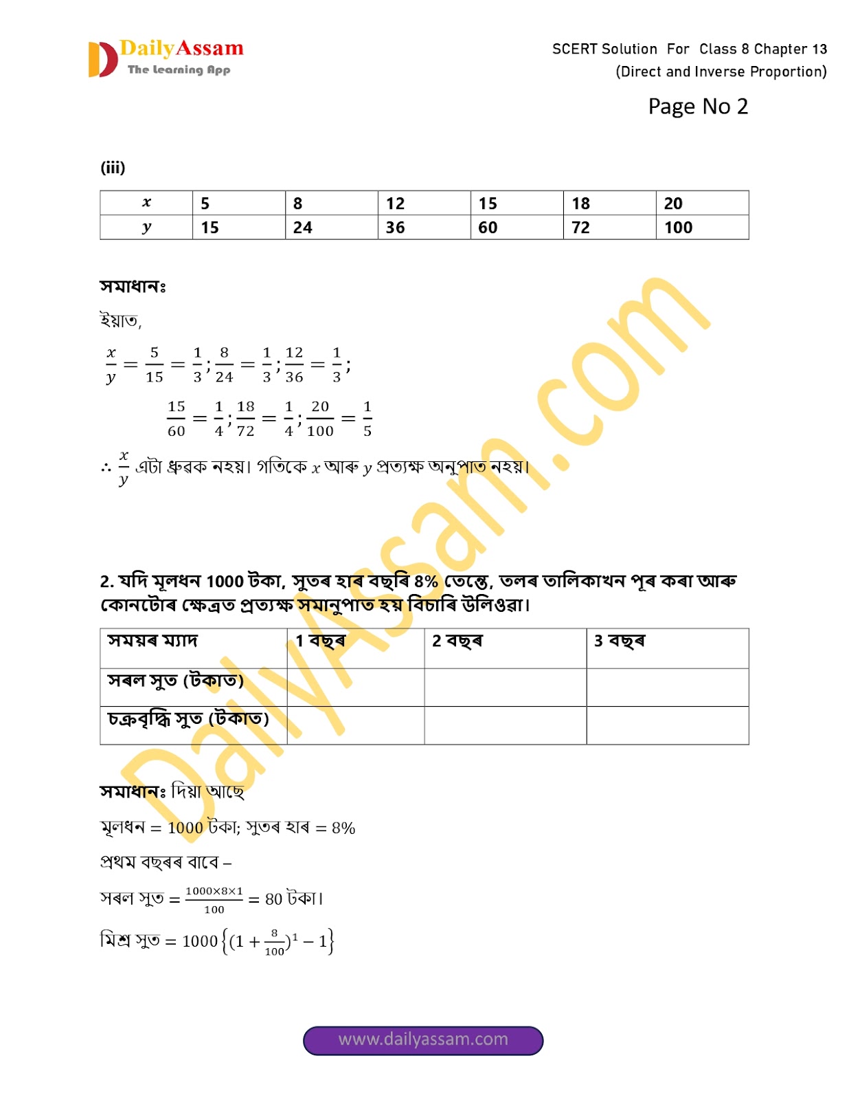SEBA Class 8 Mathematics Chapter 13 Solution | Assam Board Class 8 Mathematics Chapter 13 প্ৰত্য়ক্ষ আৰু ব্য়স্ত সমানুপাত ( Direct and Inverse Proportion Solution) Answer |2025-2026