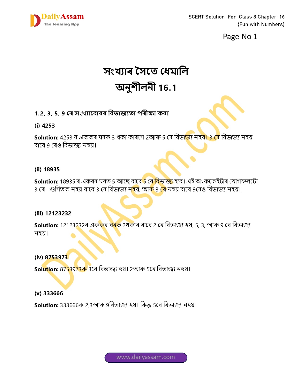SEBA Class 8 Mathematics Chapter 16 Solution | Assam Board Class 8 Mathematics Chapter 16 সংখ্য়াৰ সৈতে ধেমালি (Fun with numbers) Answer |2025-2026