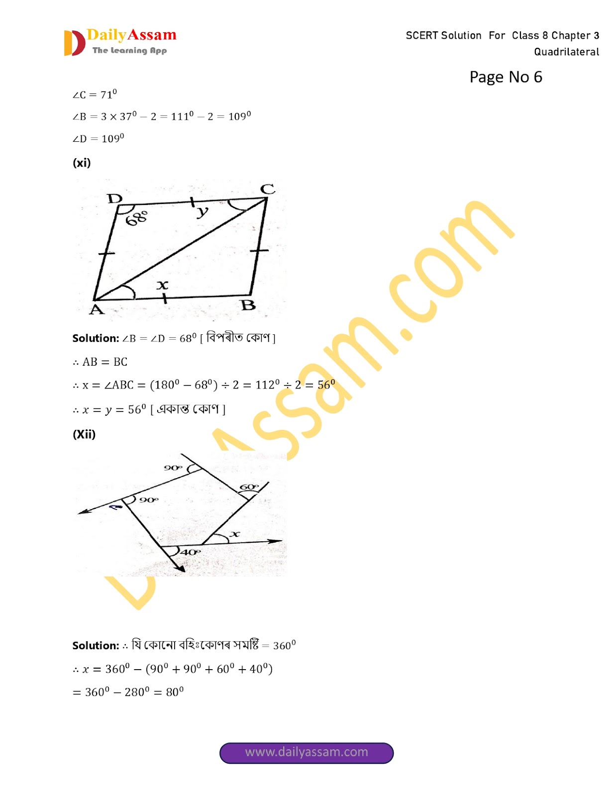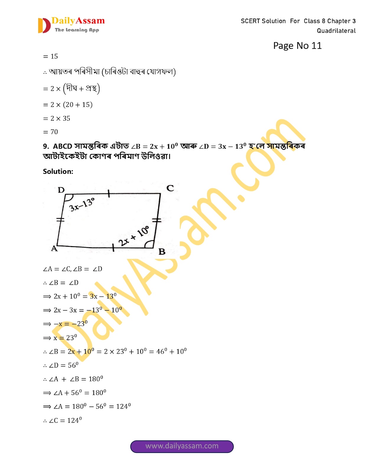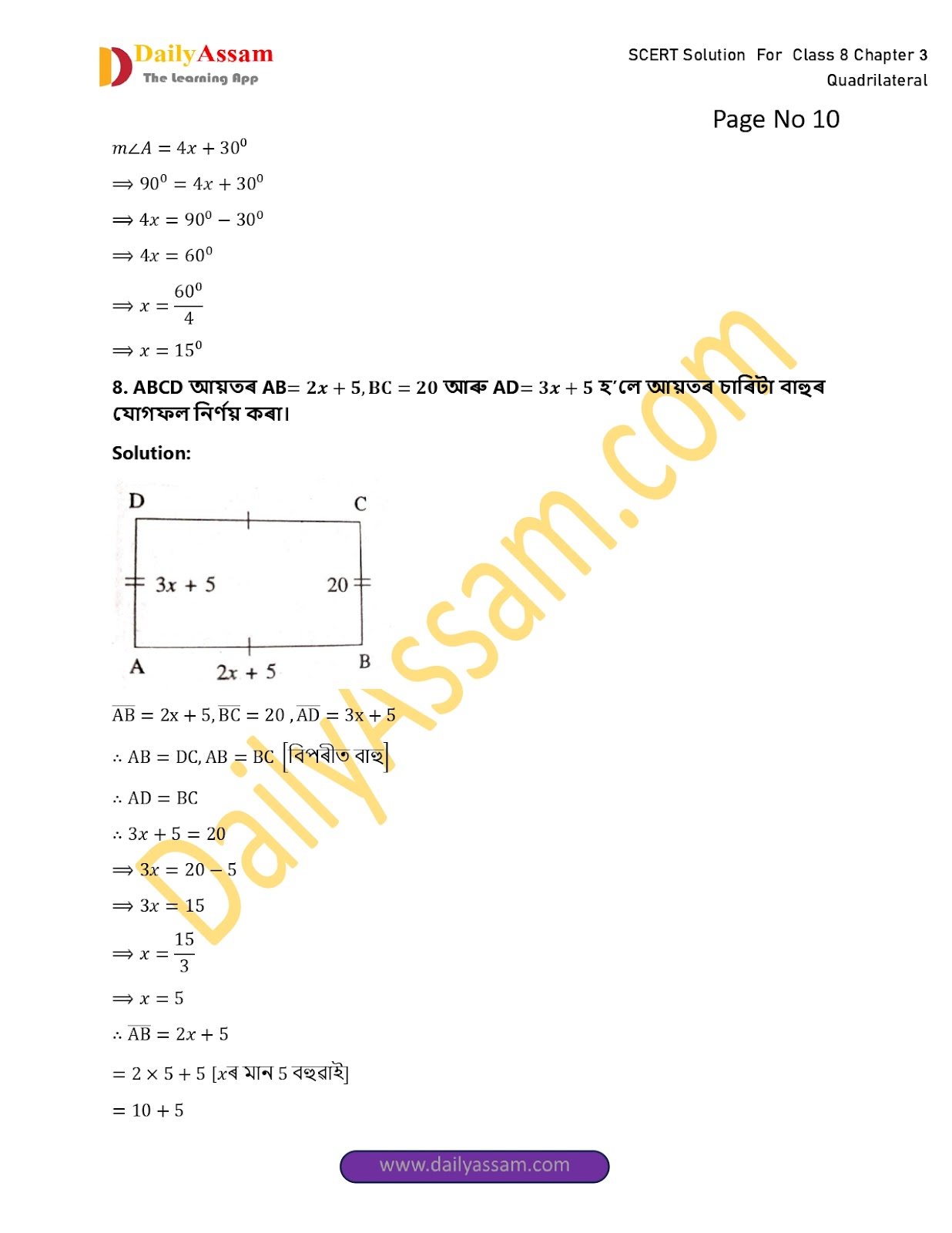 SEBA Class 8 Mathematics Chapter 3 Solution | Assam Board Class 8 Mathematics Chapter 3 চতুৰ্ভুজ (The quadrilateral) Answer | 2025-2026