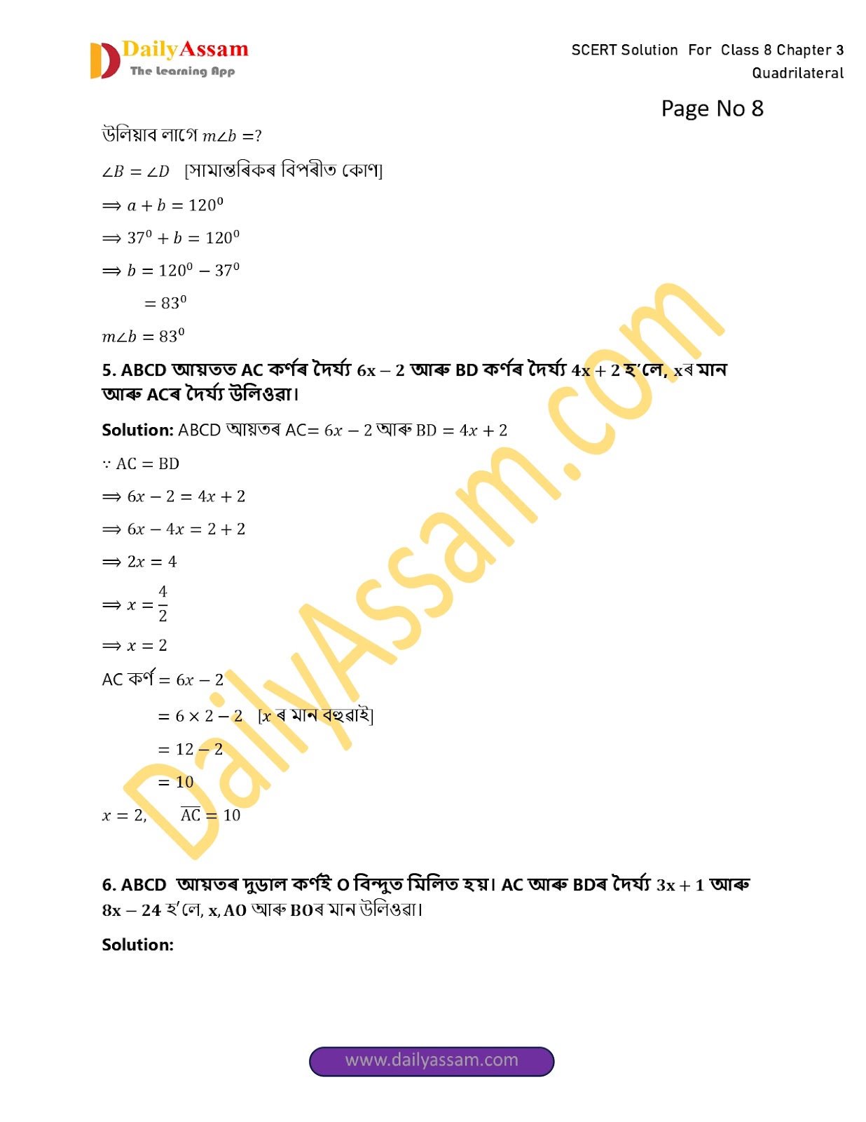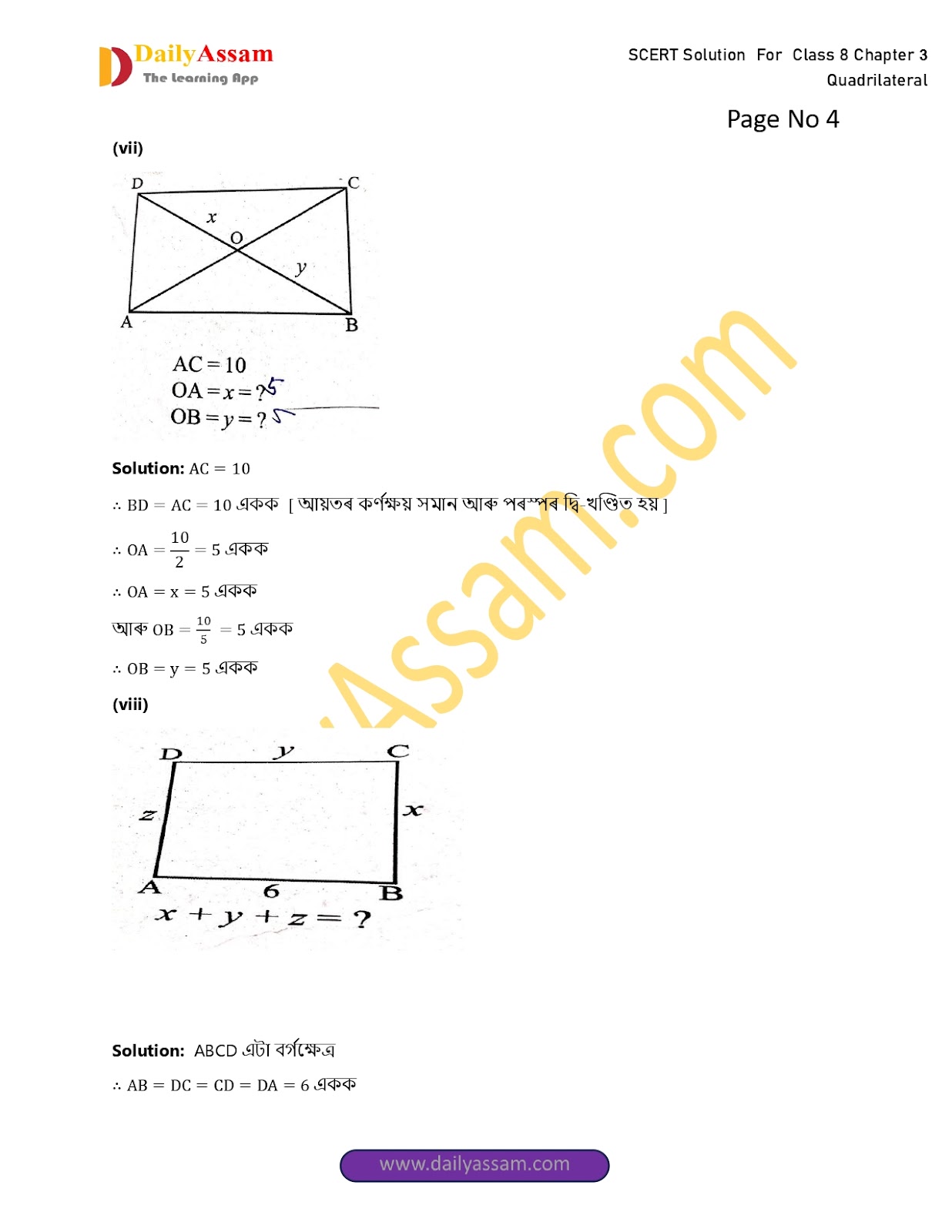 HomeClass 8 Mathematics SCERTSEBA Class 8 Mathematics Chapter 3 Solution | Assam Board Class 8 Mathematics Chapter 3 চতুৰ্ভুজ (The quadrilateral) Answer | 2025-2026