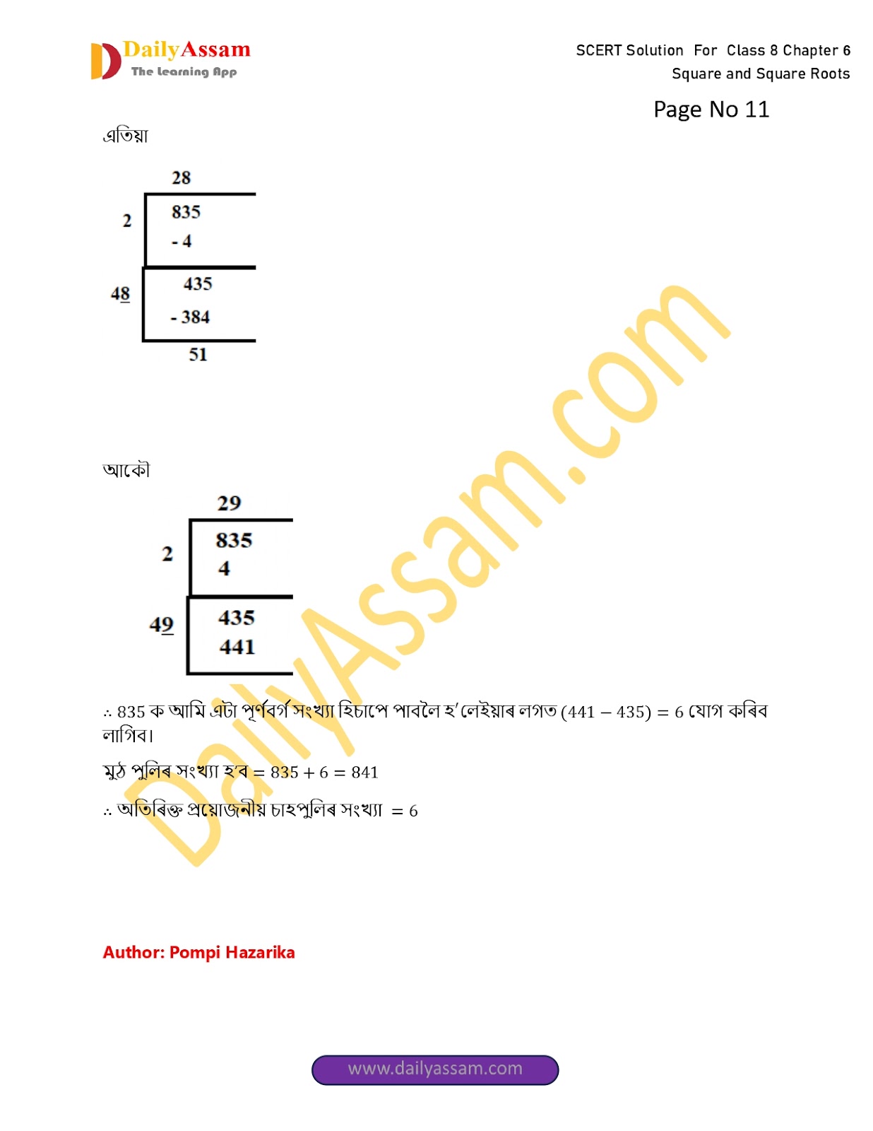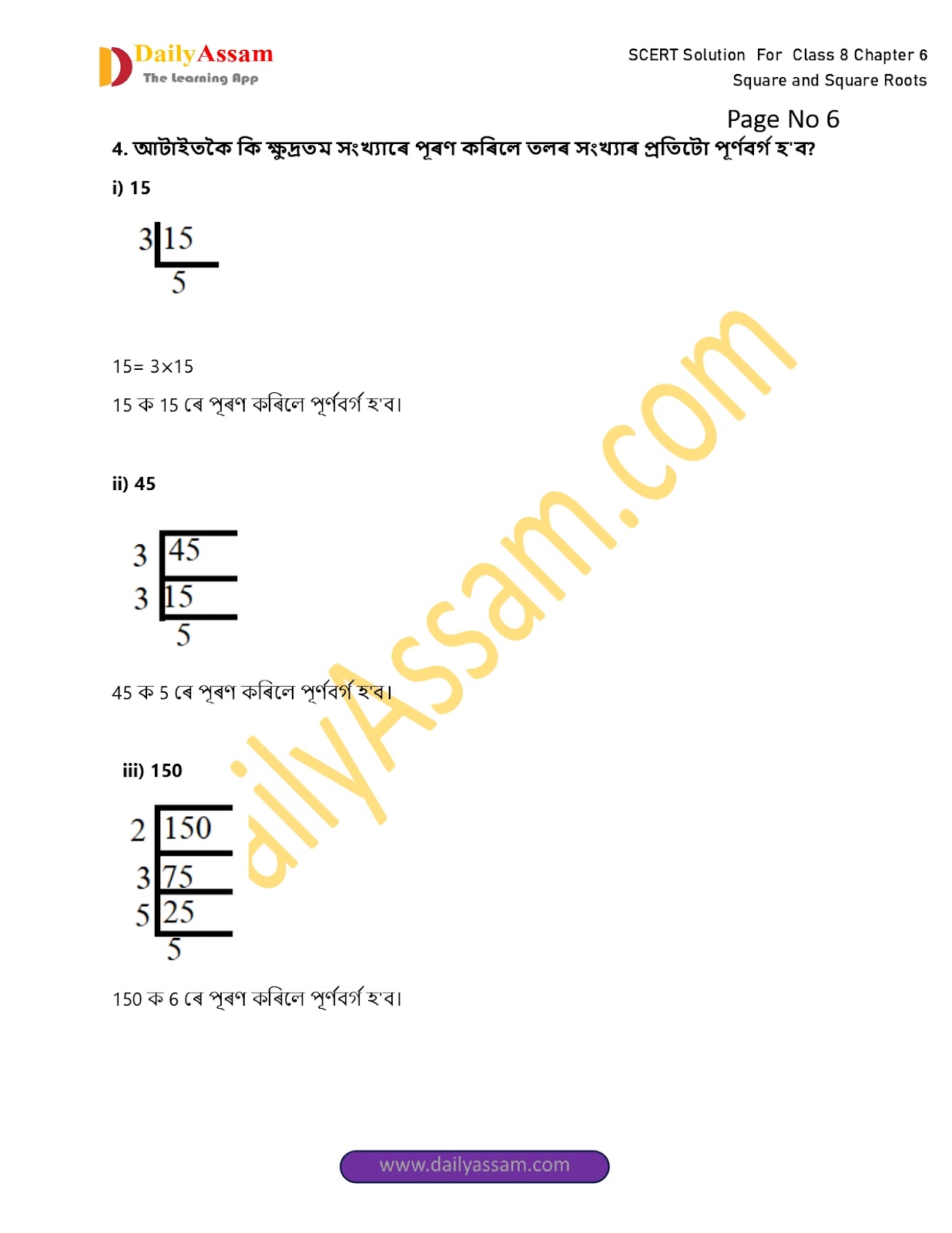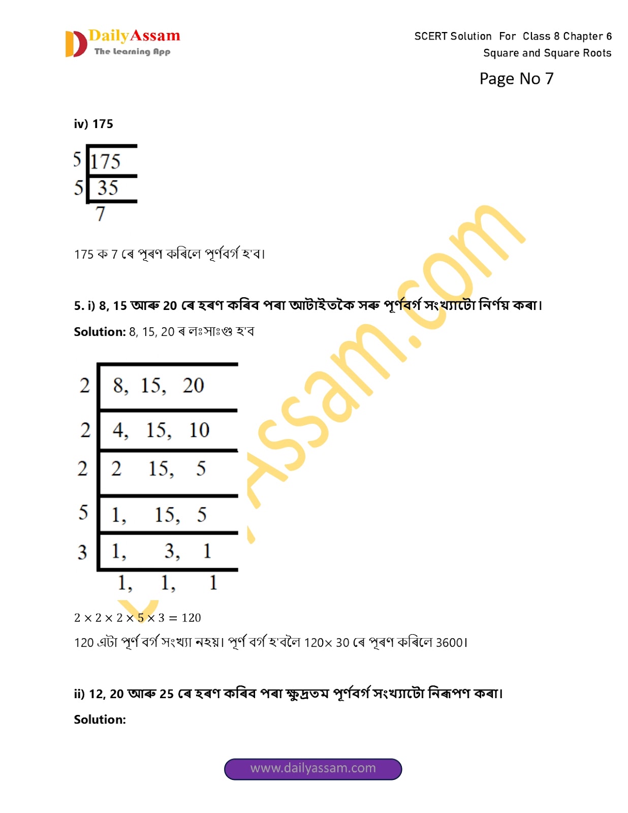 SEBA Class 8 Mathematics Chapter 6 Solution | Assam Board Class 8 Mathematics Chapter 6 বৰ্গ আৰু বৰ্গমূল (square and square root) Answer |2025-2026