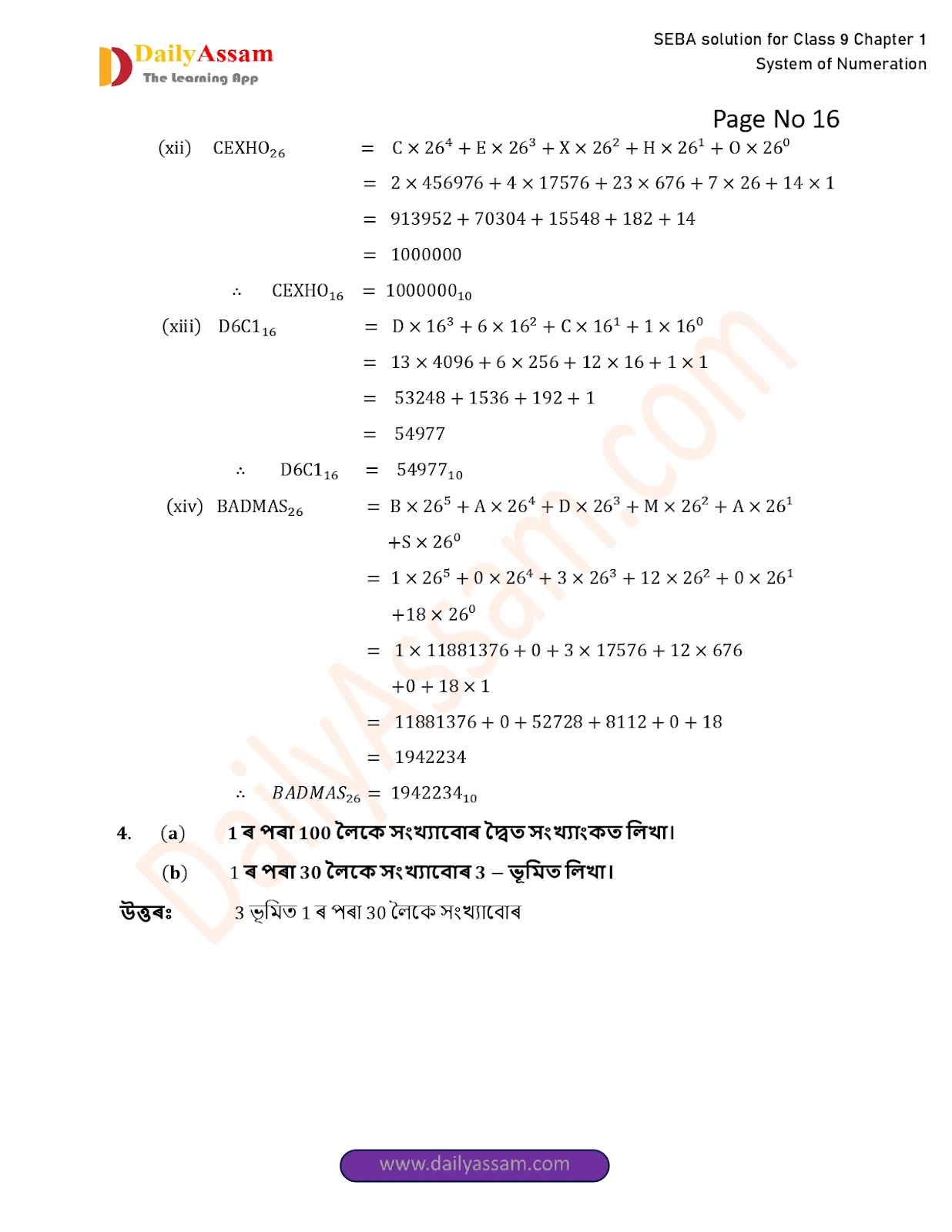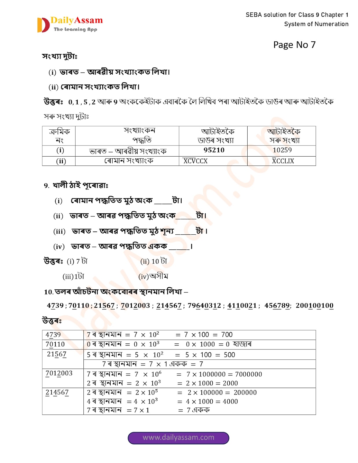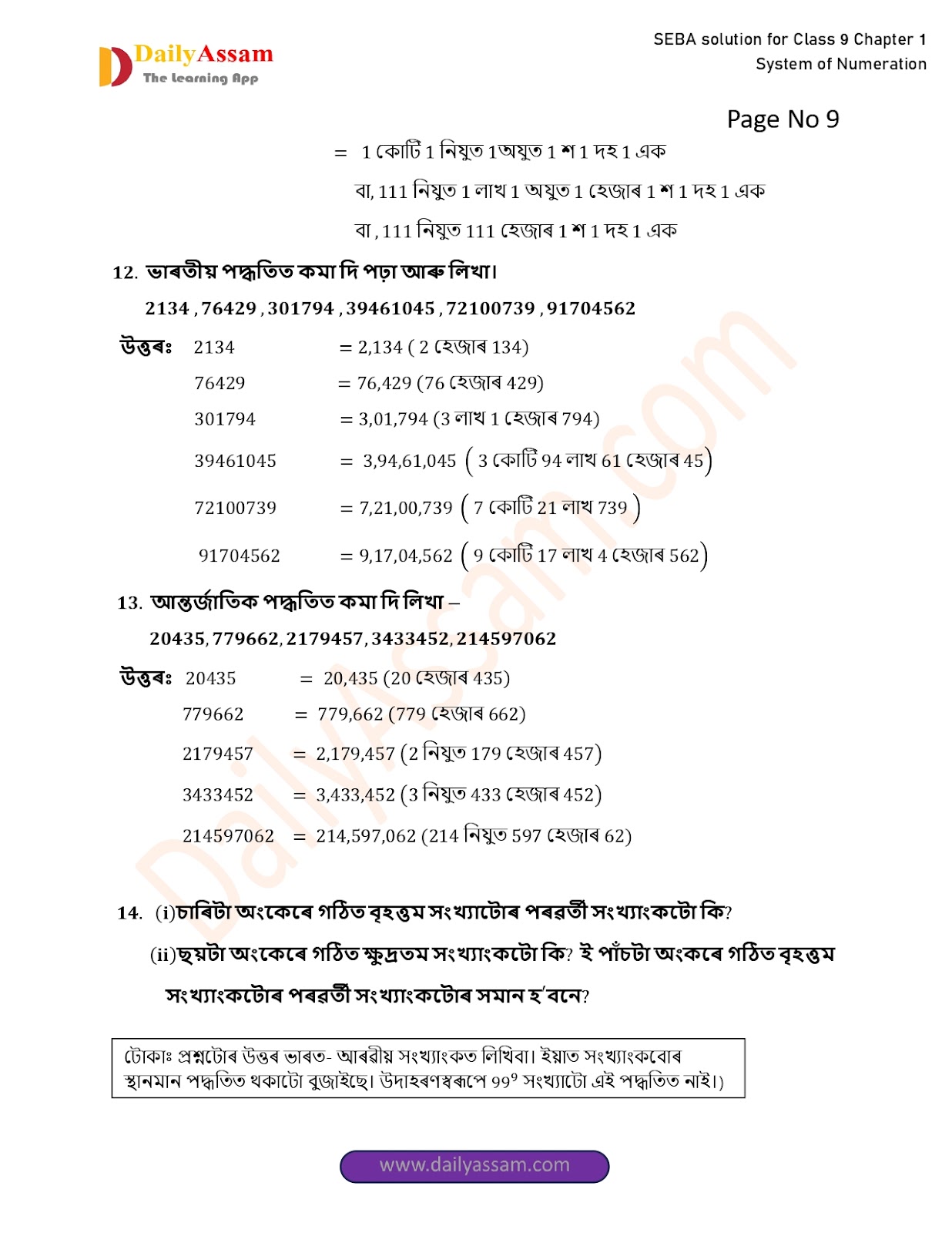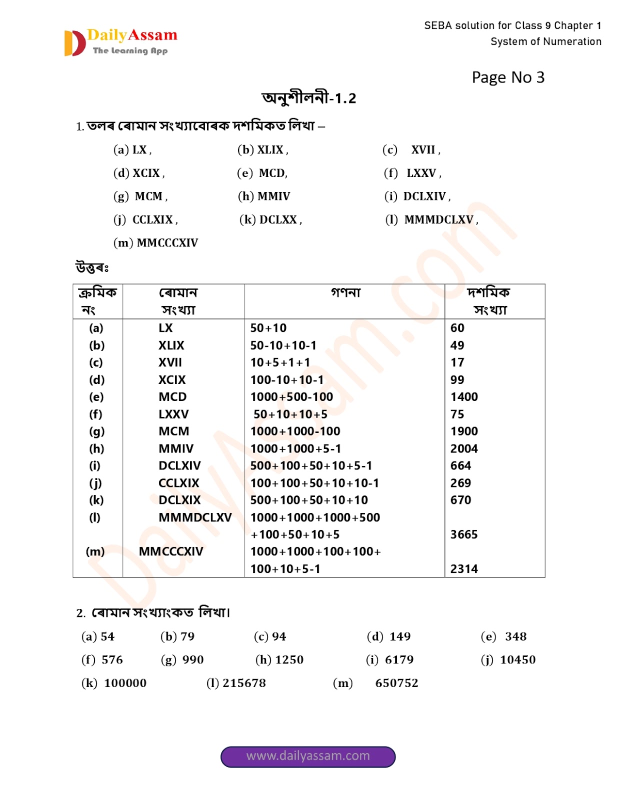SEBA Class 9 Advanced Mathematics Chapter 1 Solution | Assam Board Class 9 Advanced Mathematics Chapter 1 সংখ্যাকন পদ্ধতি ( System of numeration) Answer | 2025 -2026