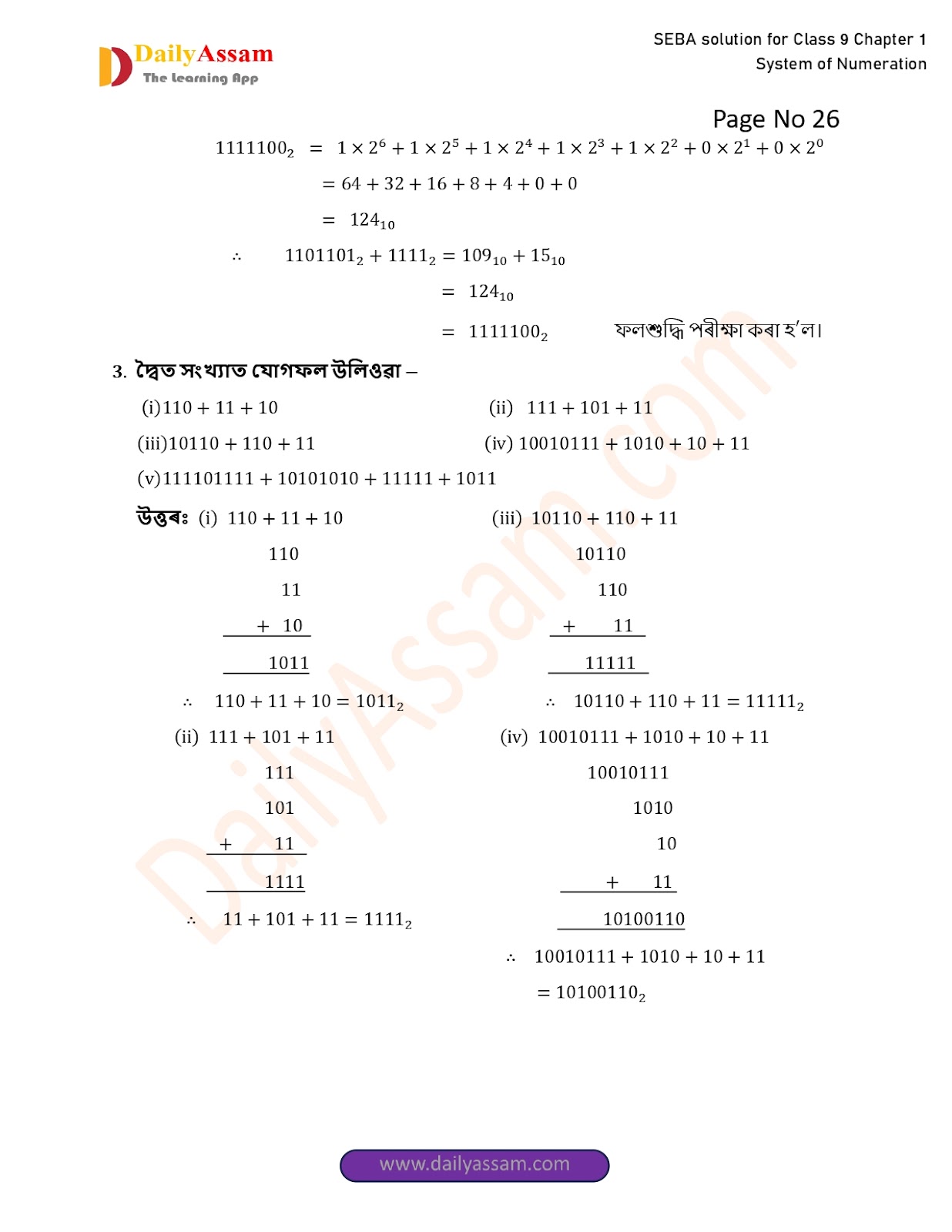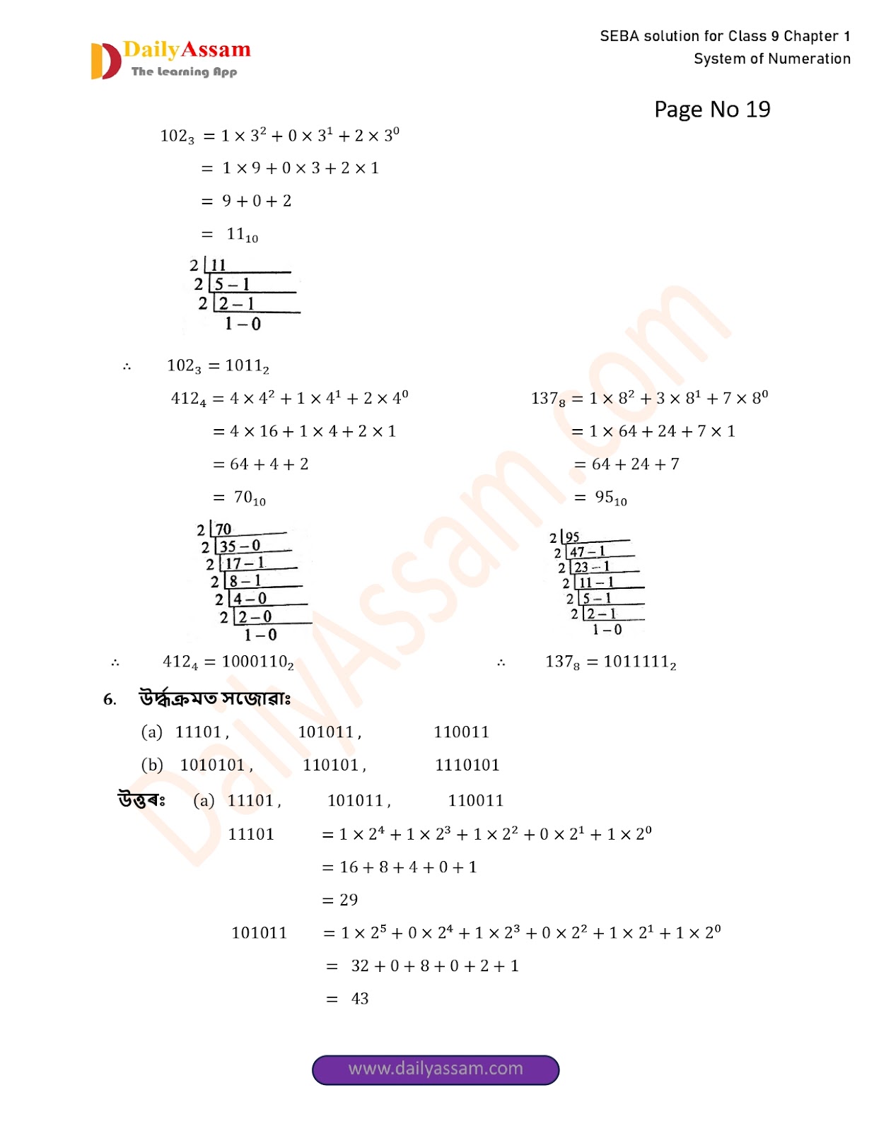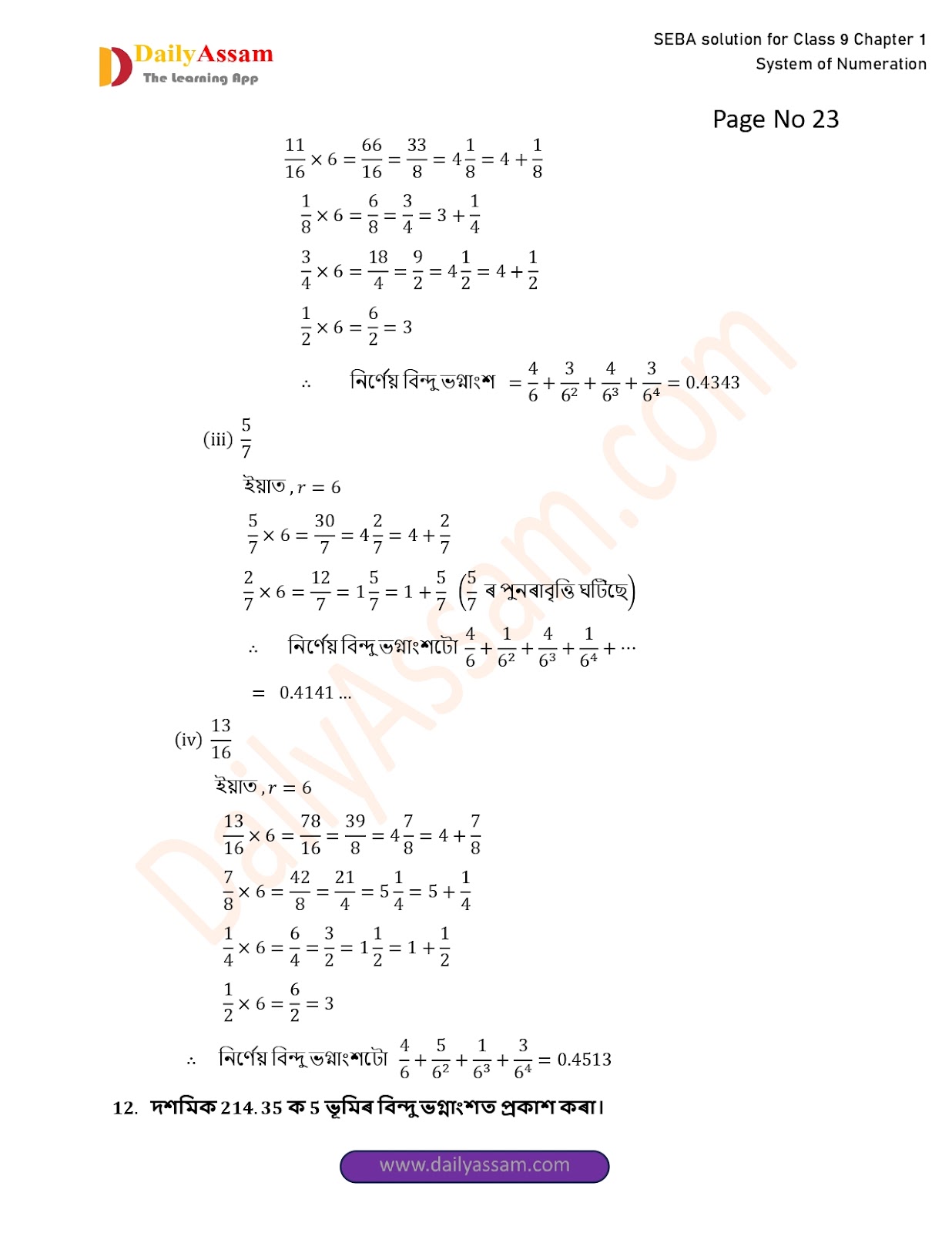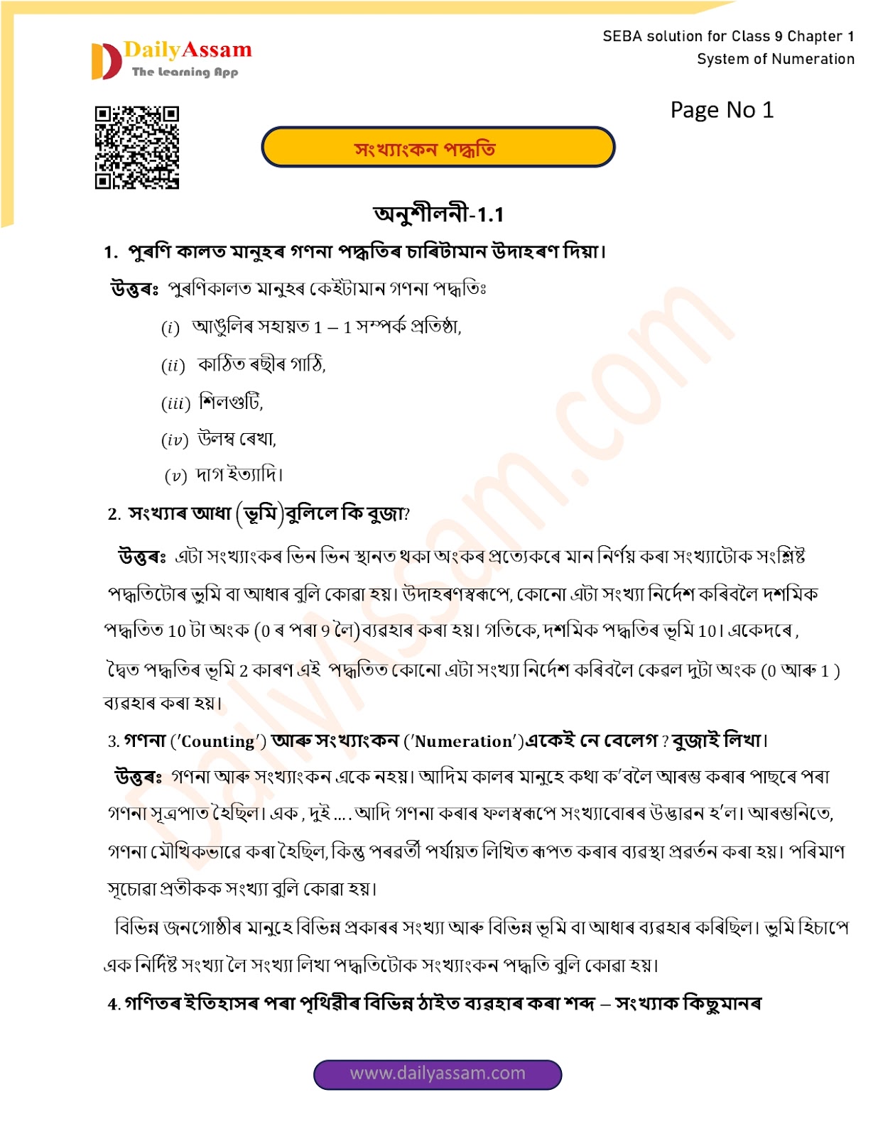 SEBA Class 9 Advanced Mathematics Chapter 1 Solution | Assam Board Class 9 Advanced Mathematics Chapter 1 সংখ্যাকন পদ্ধতি ( System of numeration) Answer | 2025 -2026