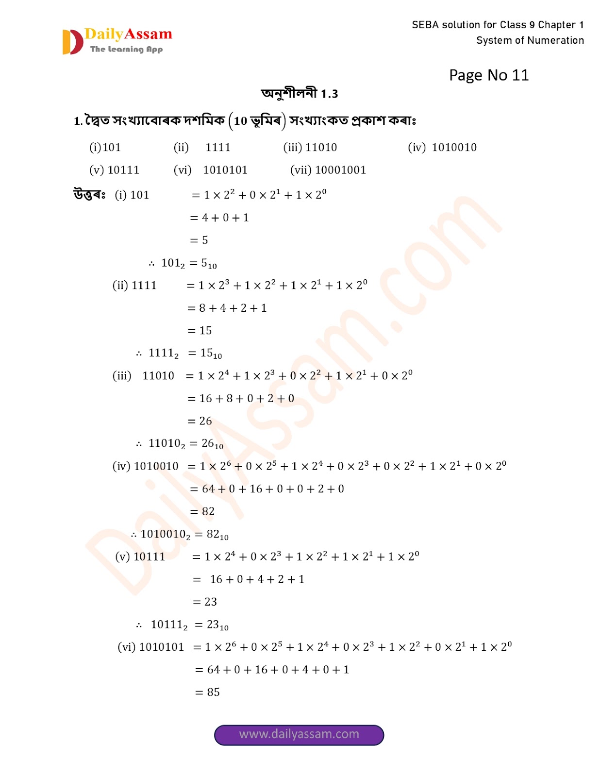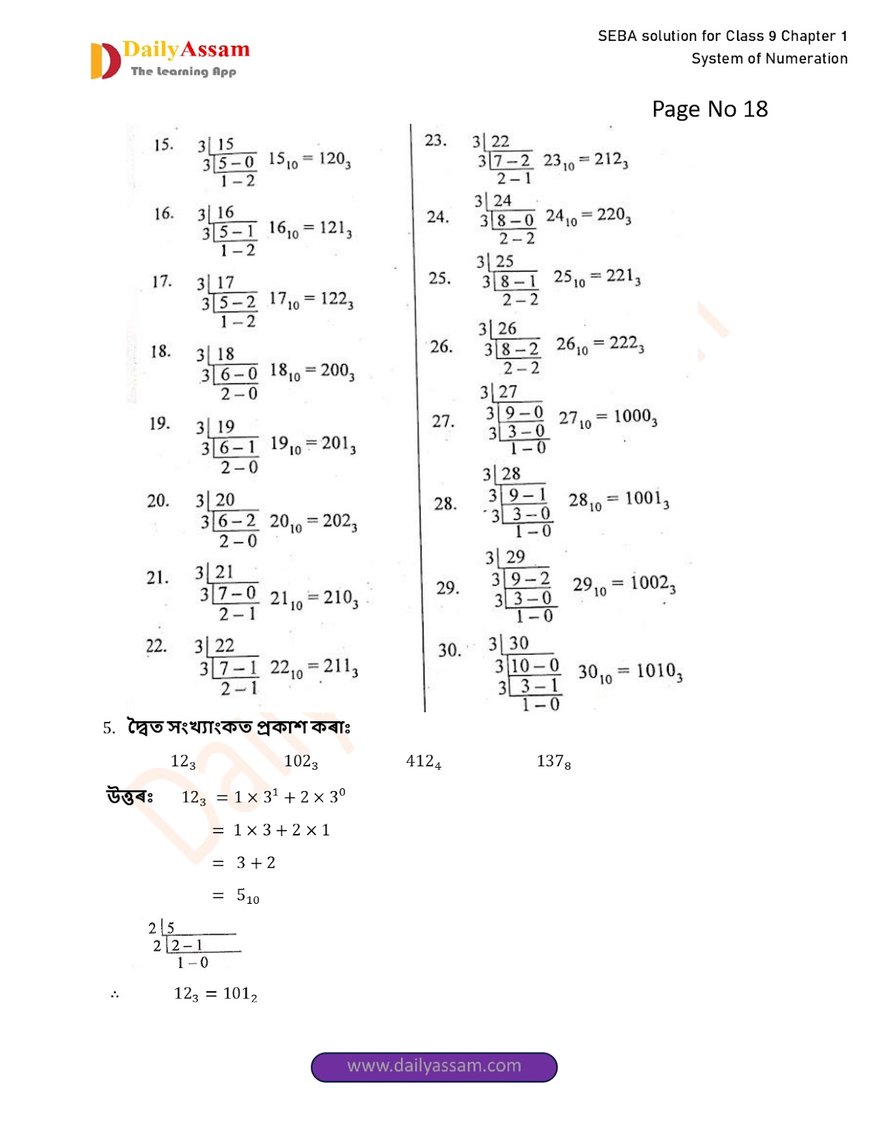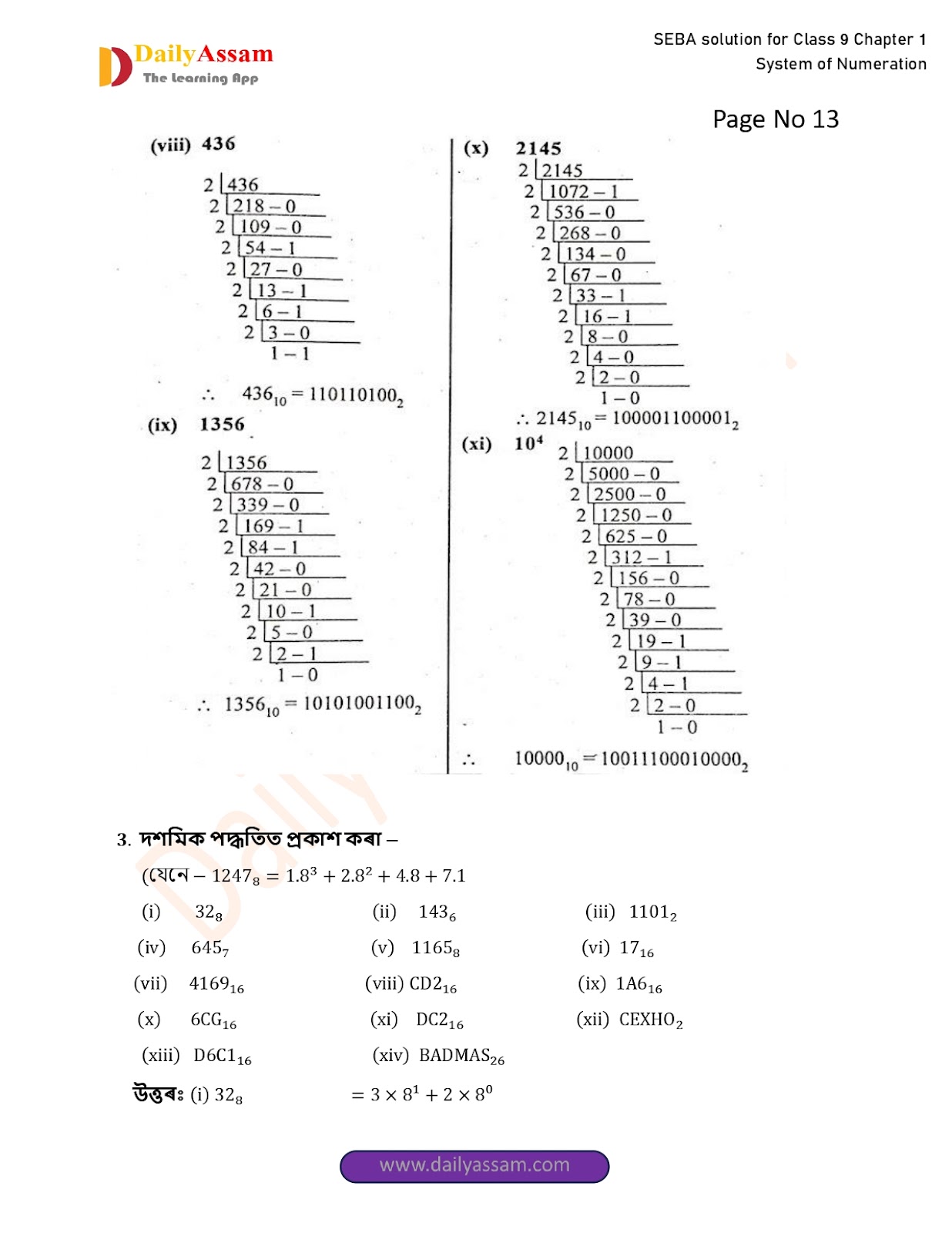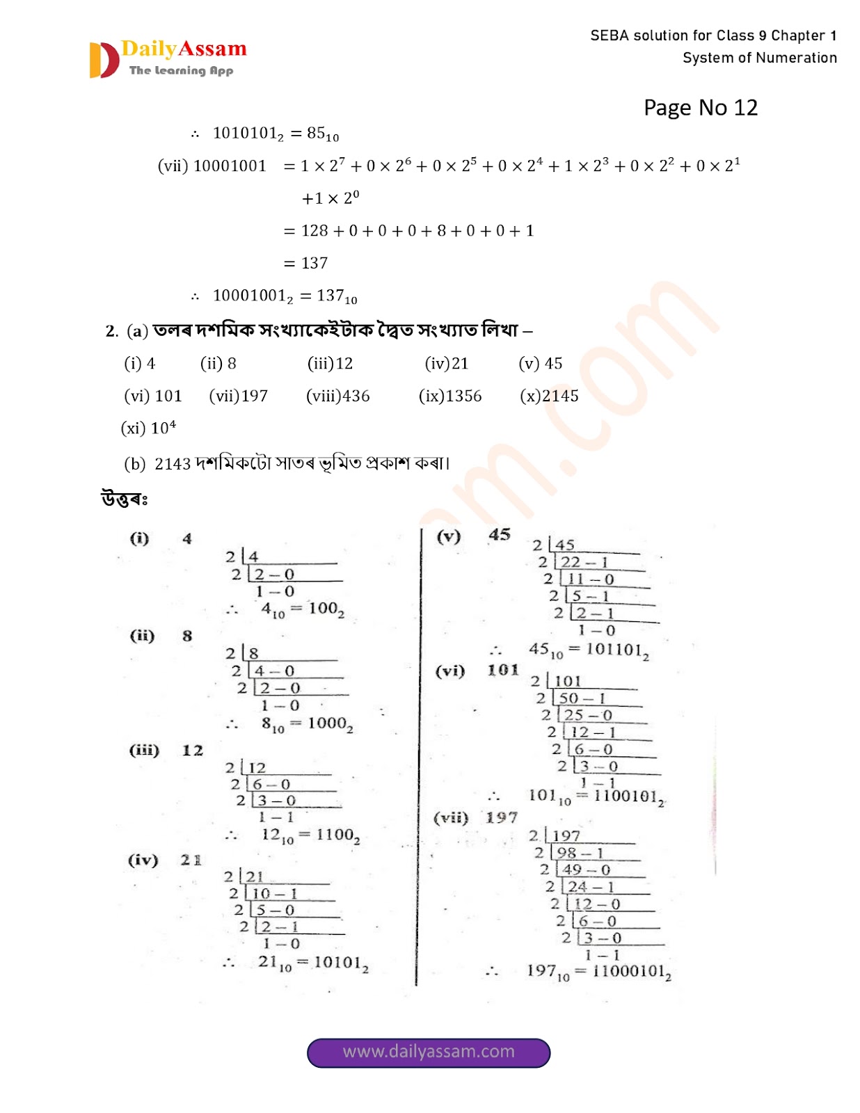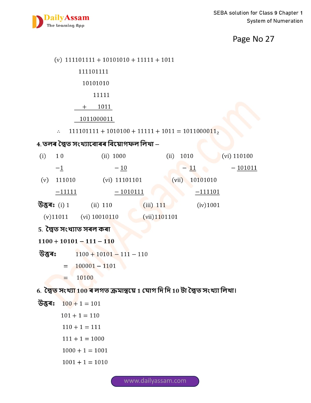 SEBA Class 9 Advanced Mathematics Chapter 1 Solution | Assam Board Class 9 Advanced Mathematics Chapter 1 সংখ্যাকন পদ্ধতি ( System of numeration) Answer | 2025 -2026