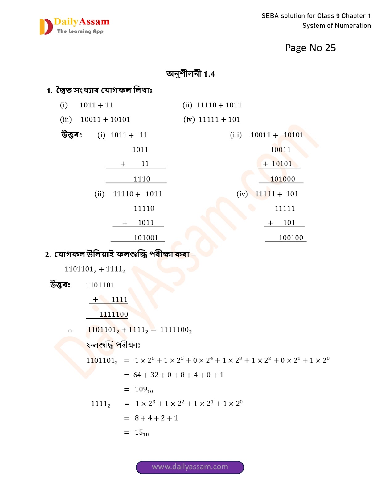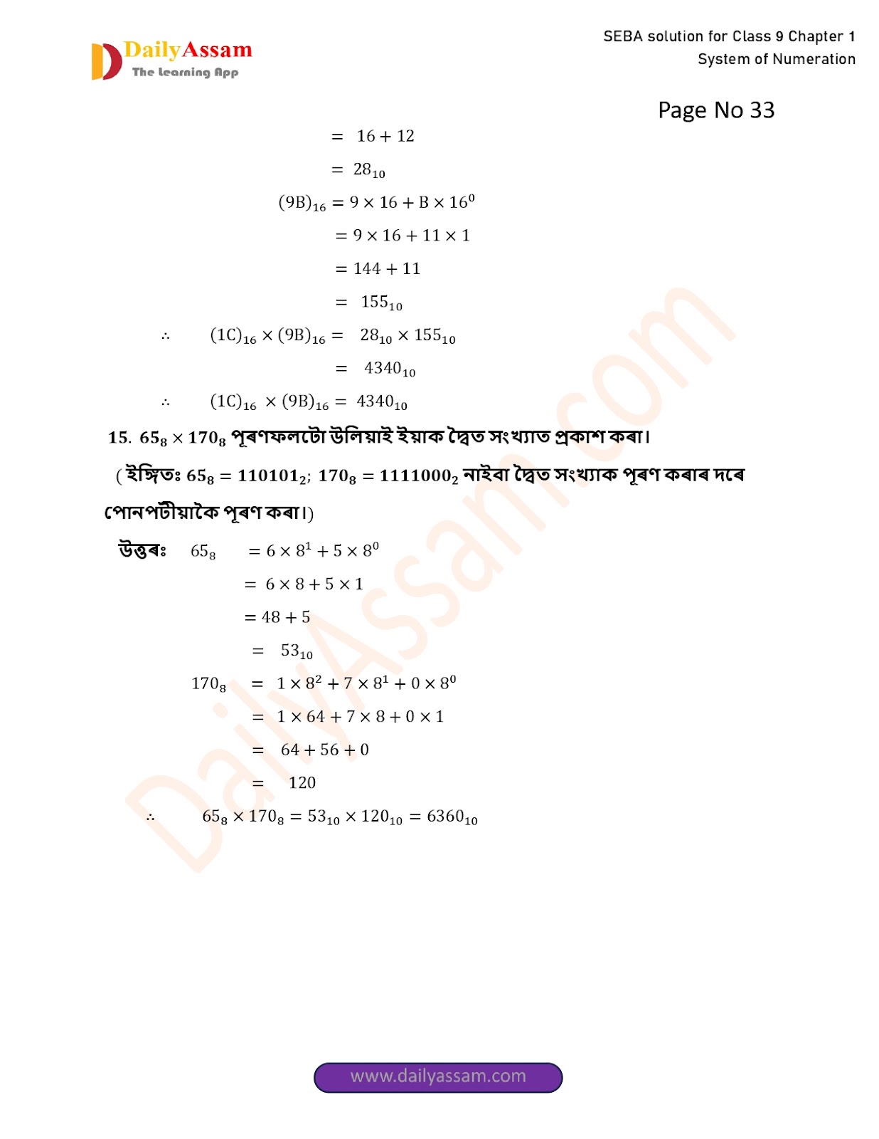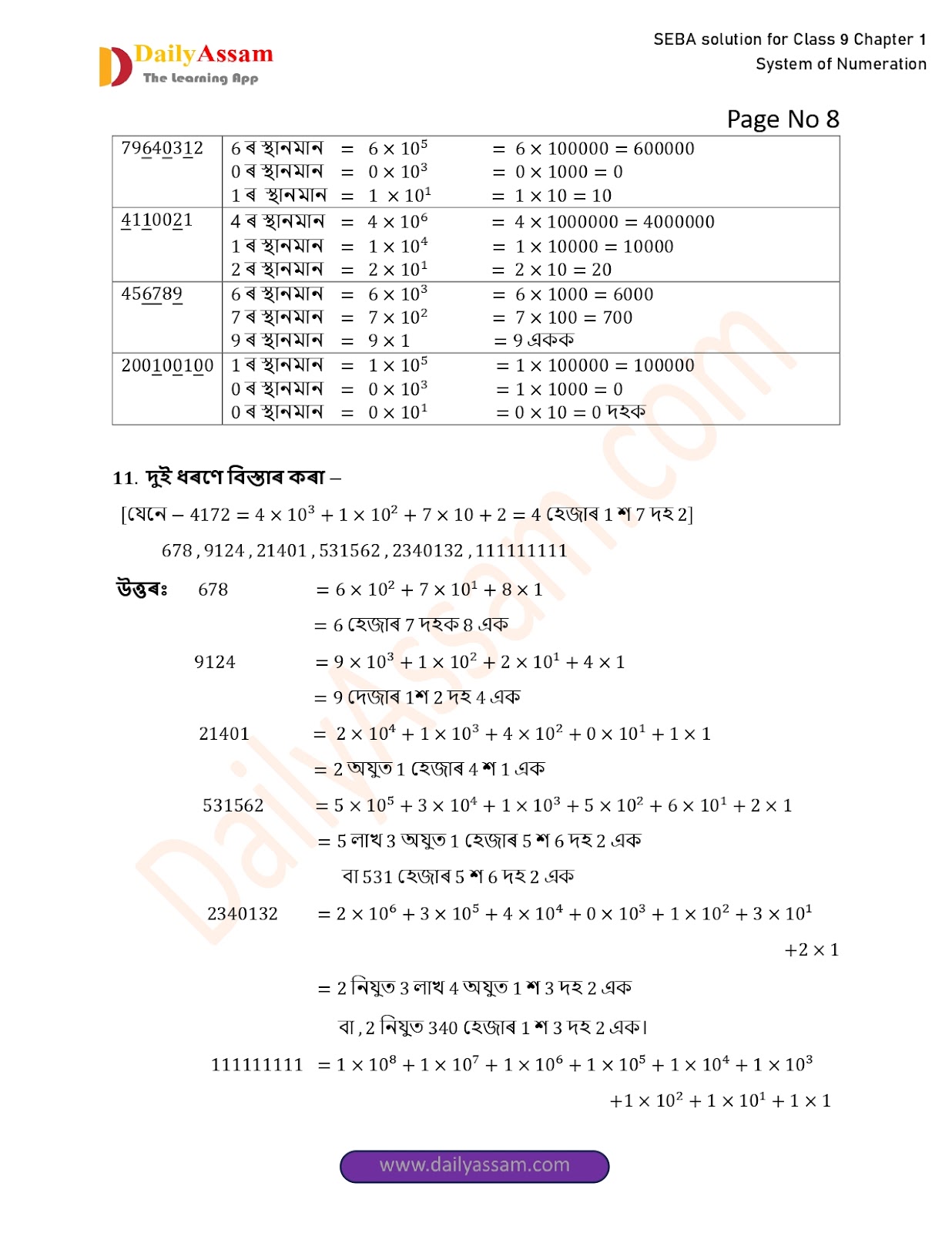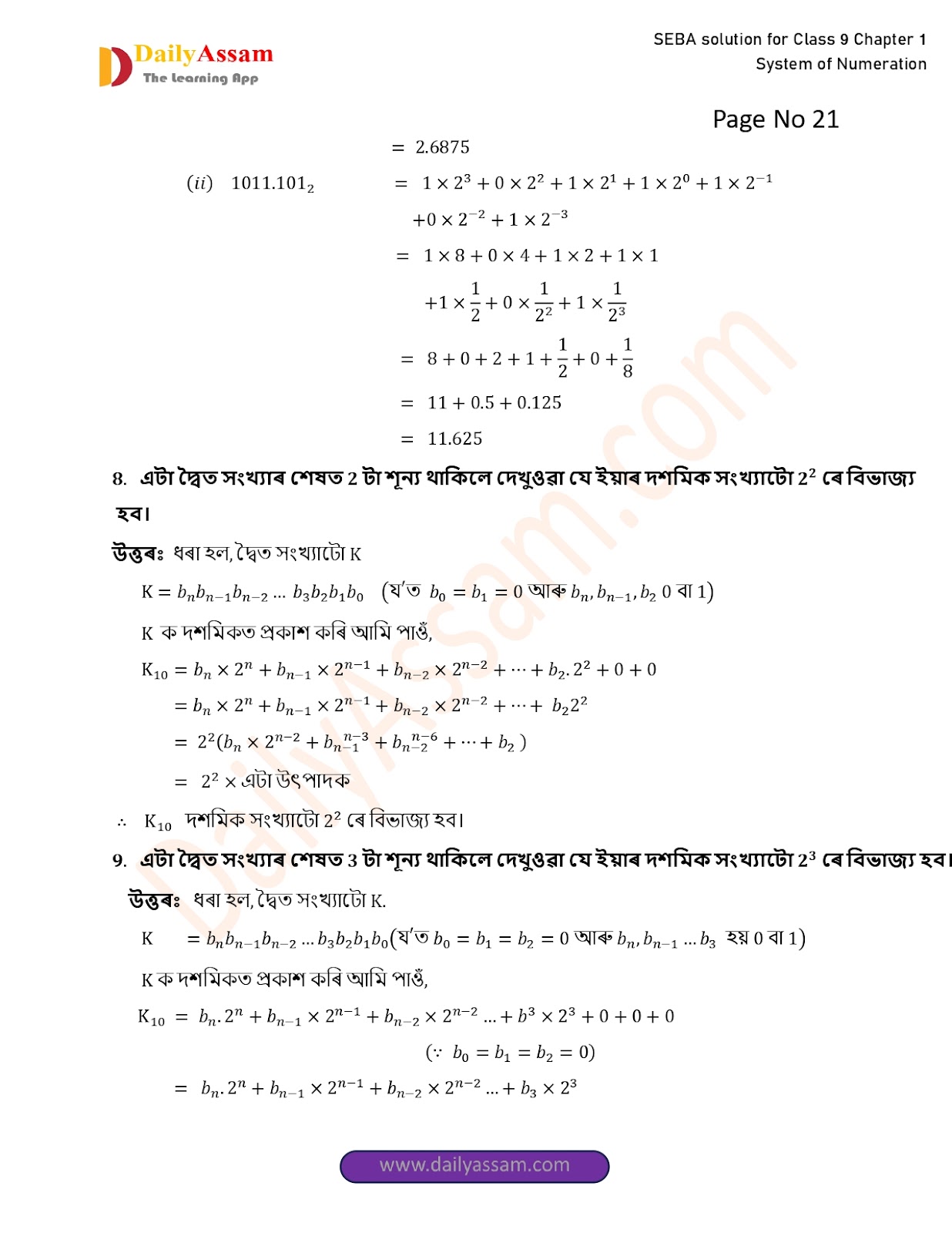 SEBA Class 9 Advanced Mathematics Chapter 1 Solution | Assam Board Class 9 Advanced Mathematics Chapter 1 সংখ্যাকন পদ্ধতি ( System of numeration) Answer | 2025 -2026