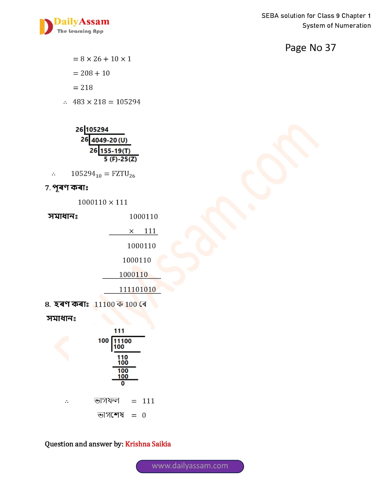 HomeClass 9 Advanced MathsSEBA Class 9 Advanced Mathematics Chapter 1 Solution | Assam Board Class 9 Advanced Mathematics Chapter 1 সংখ্যাকন পদ্ধতি ( System of numeration) Answer | 2025 -2026