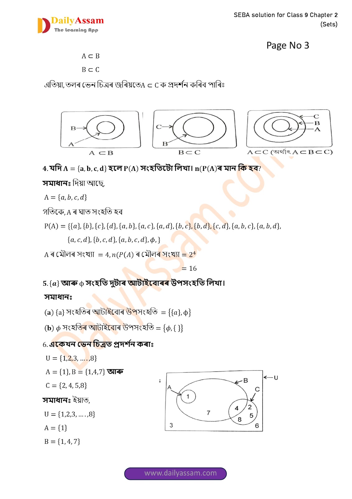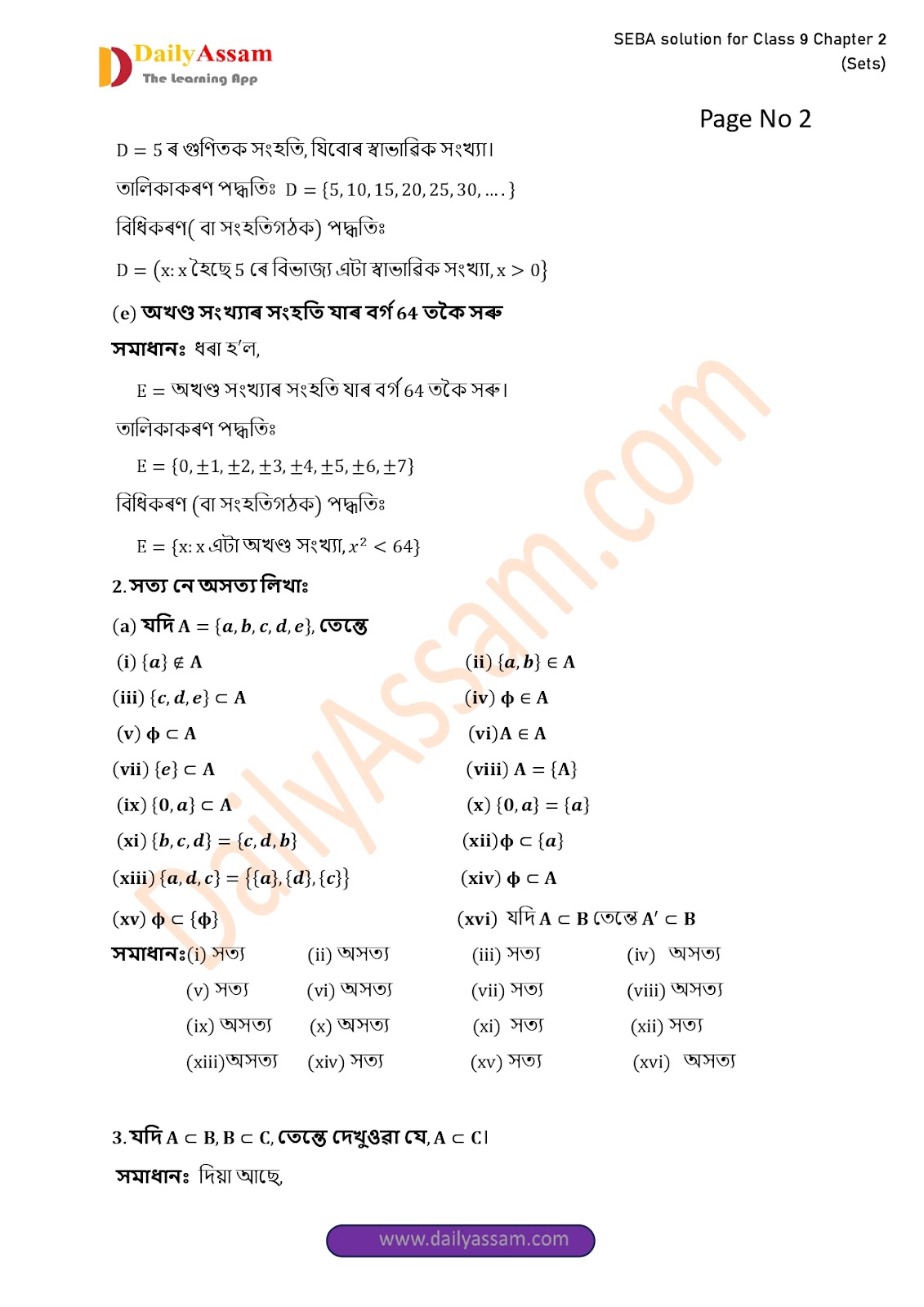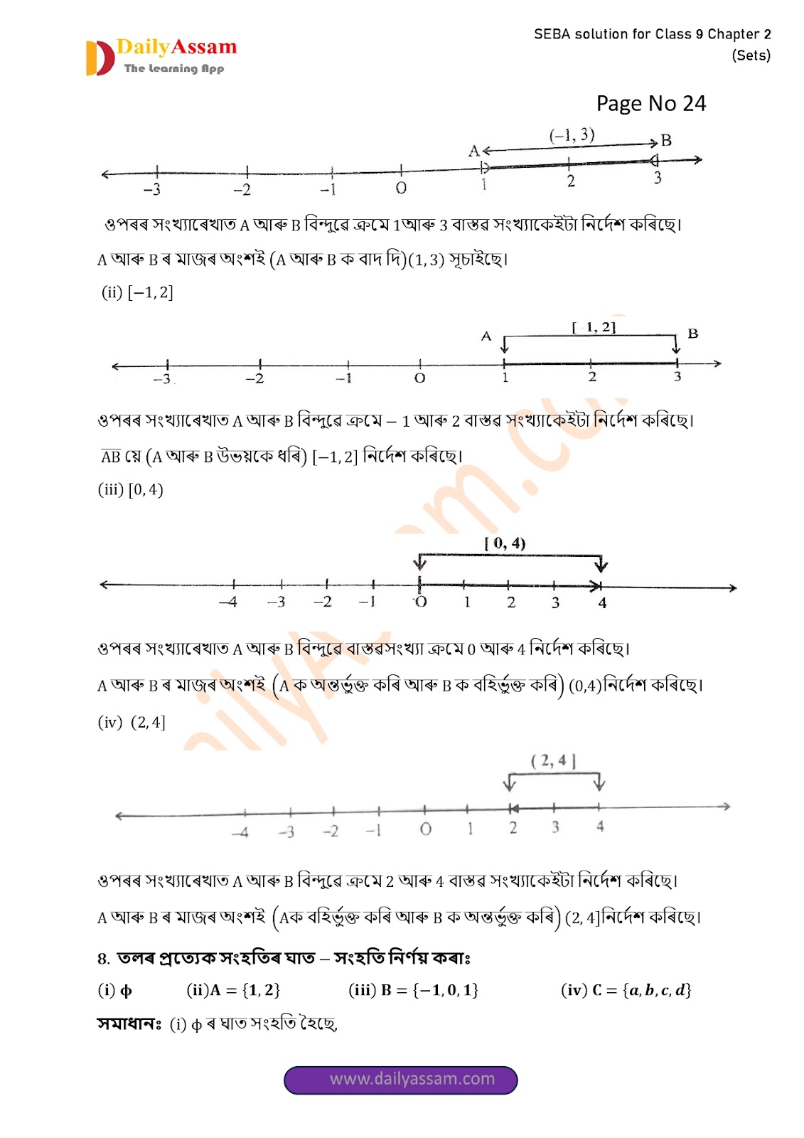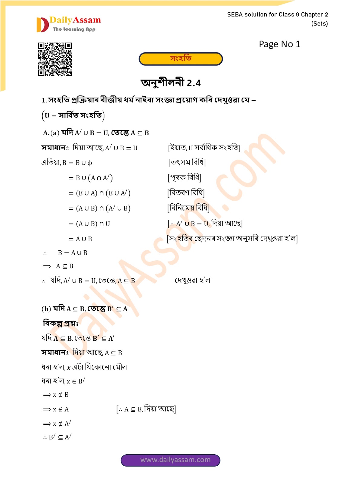 SEBA Class 9 Advanced Mathematics Chapter 2 Solution | Assam Board Class 9 Advanced Mathematics Chapter 2 সংহতি ( Sets) Answer | 2025 -2026