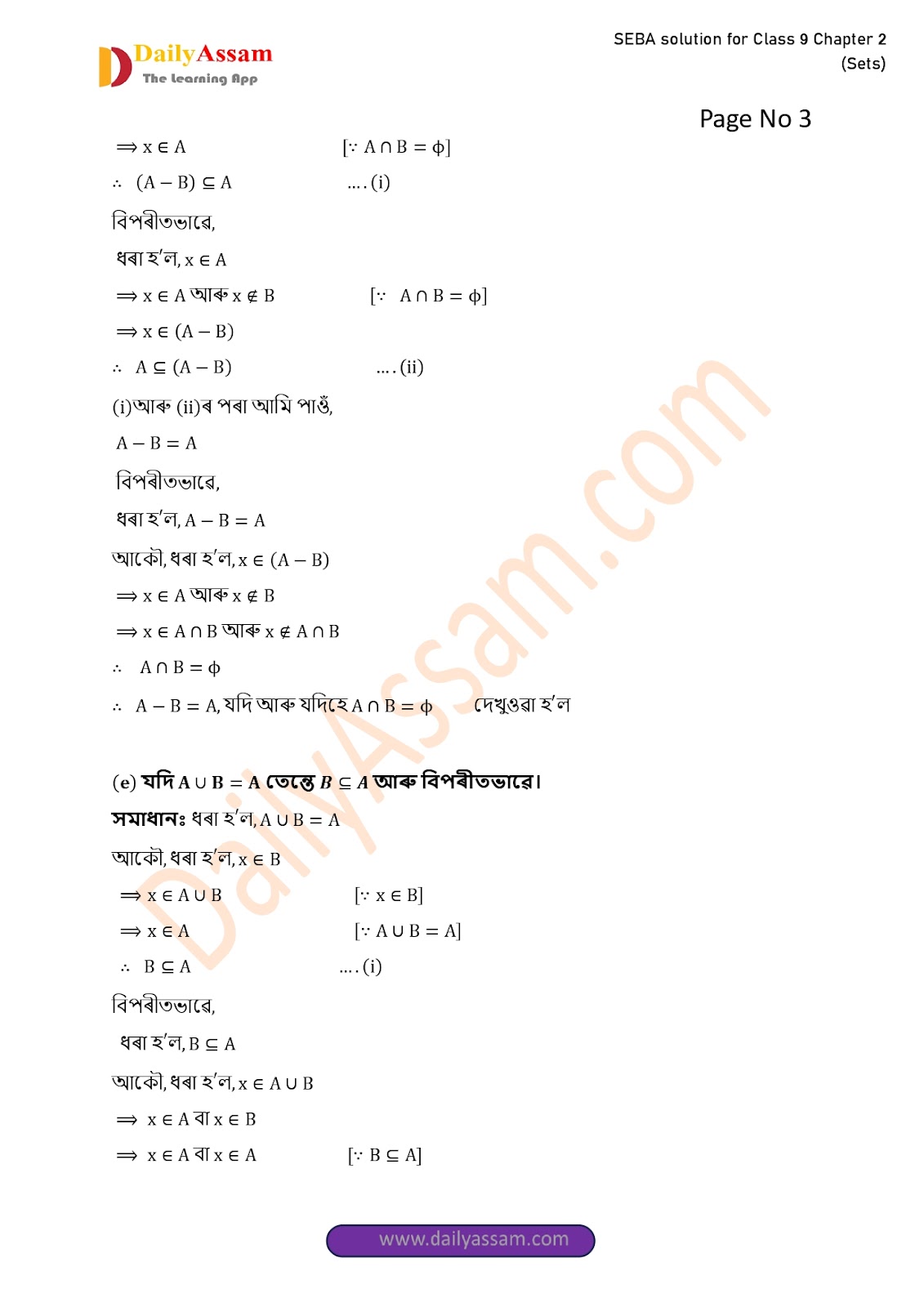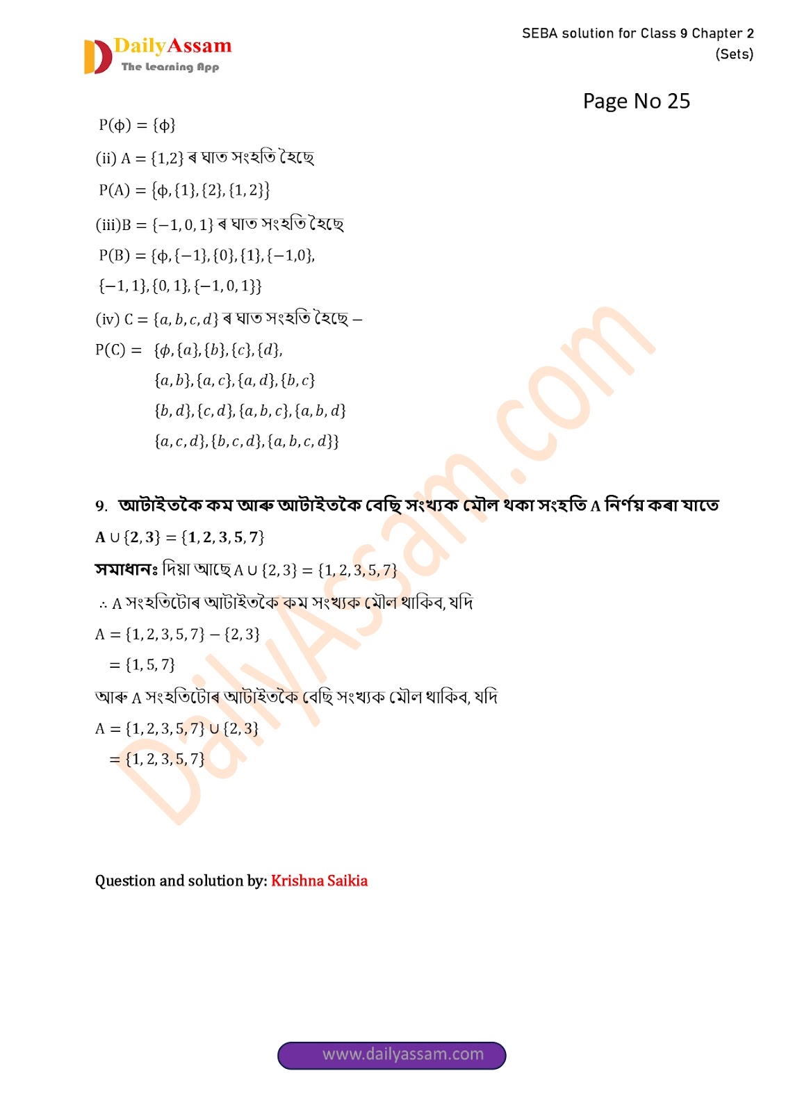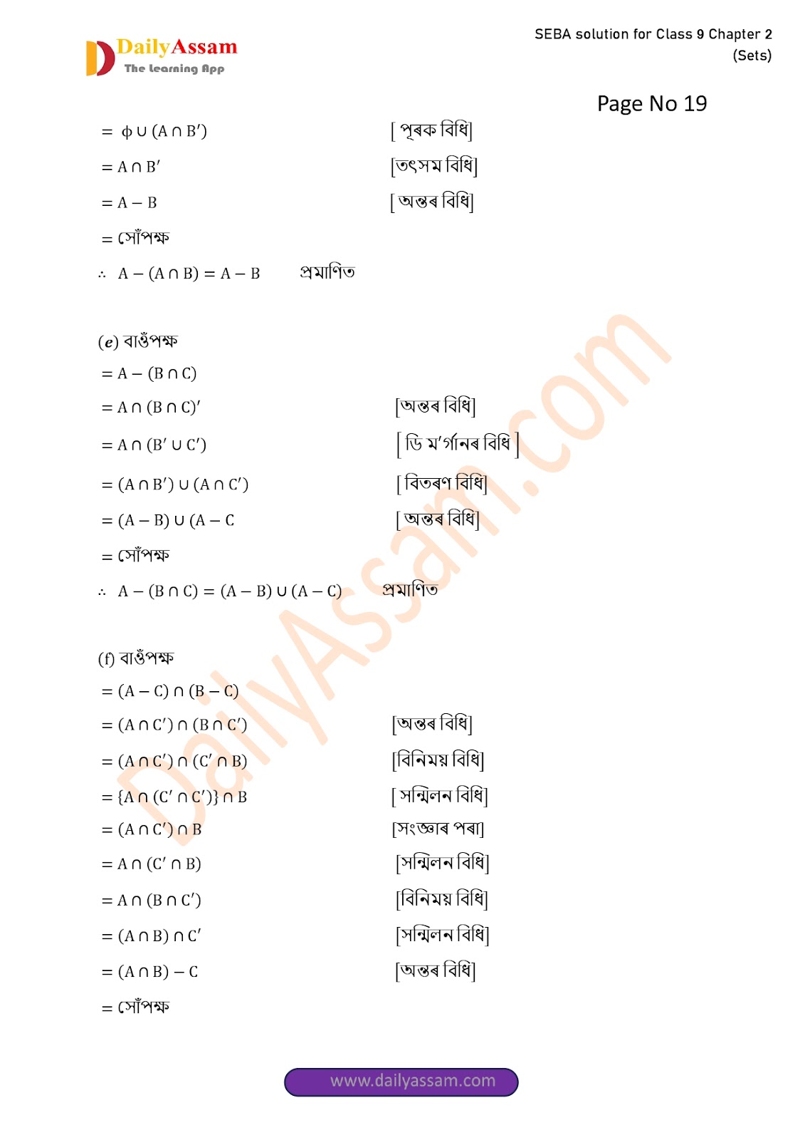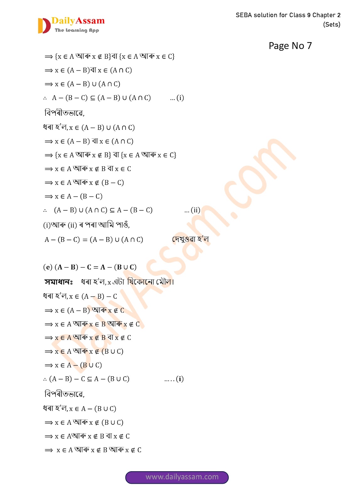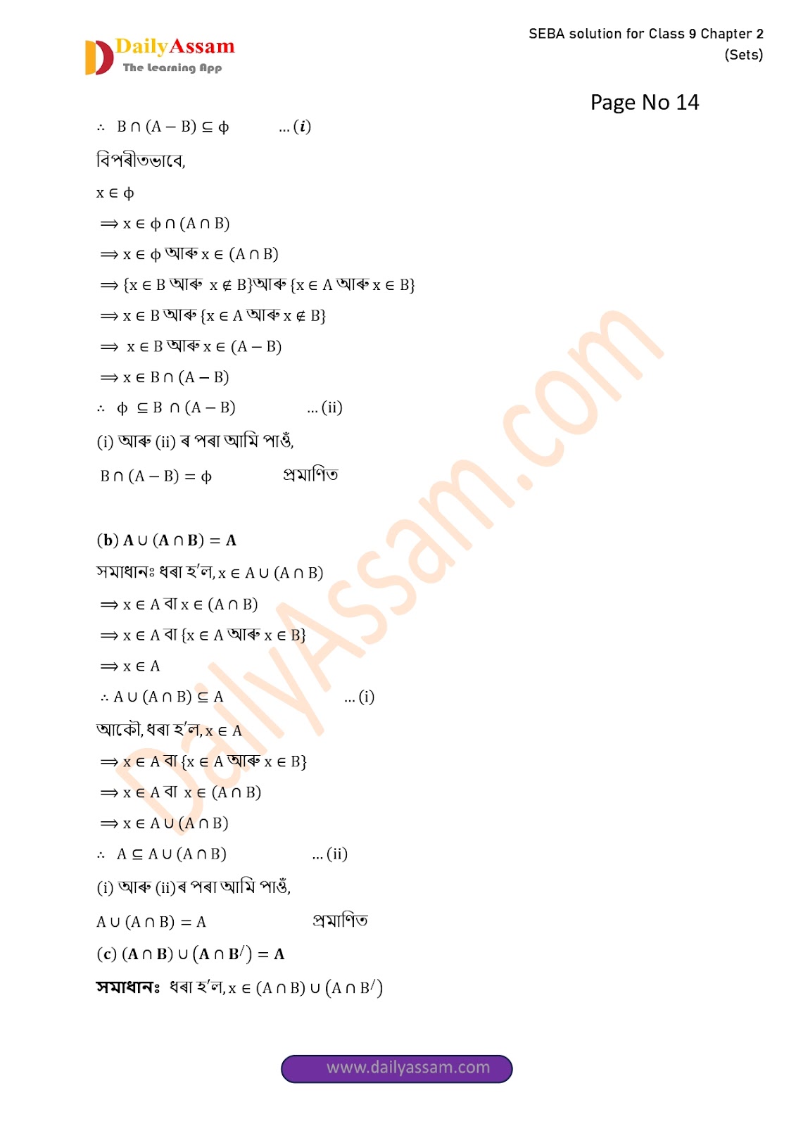 SEBA Class 9 Advanced Mathematics Chapter 2 Solution | Assam Board Class 9 Advanced Mathematics Chapter 2 সংহতি ( Sets) Answer | 2025 -2026