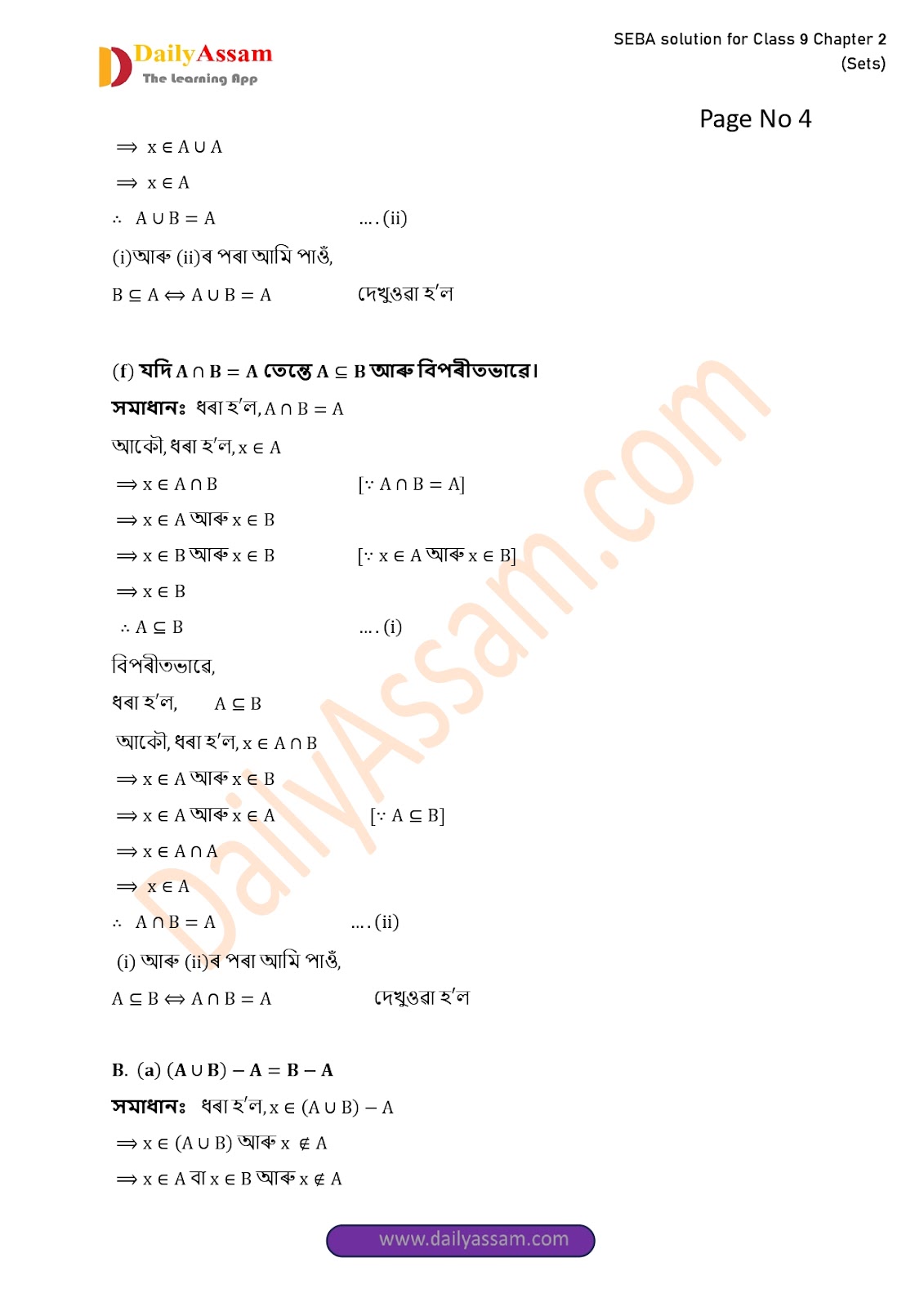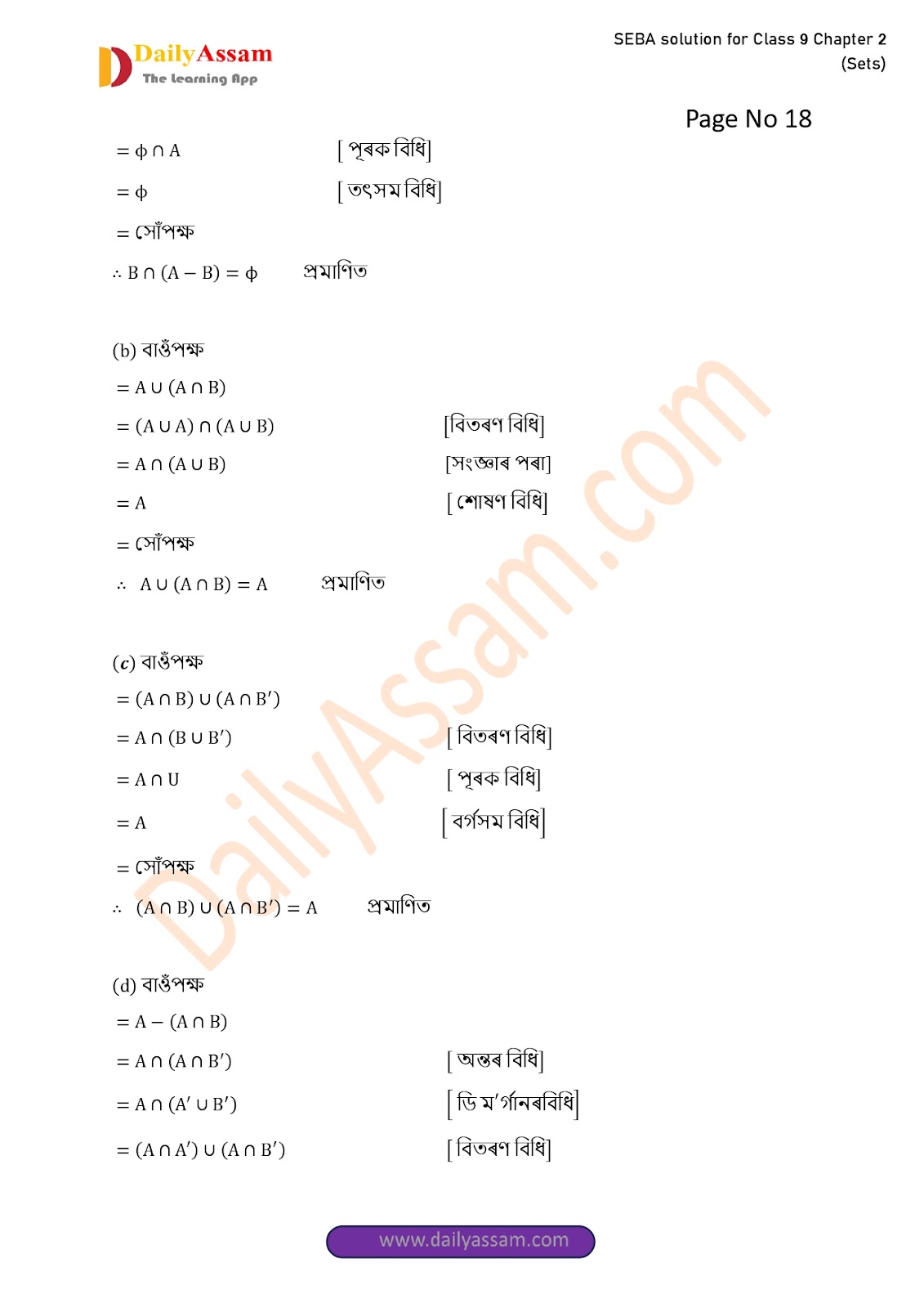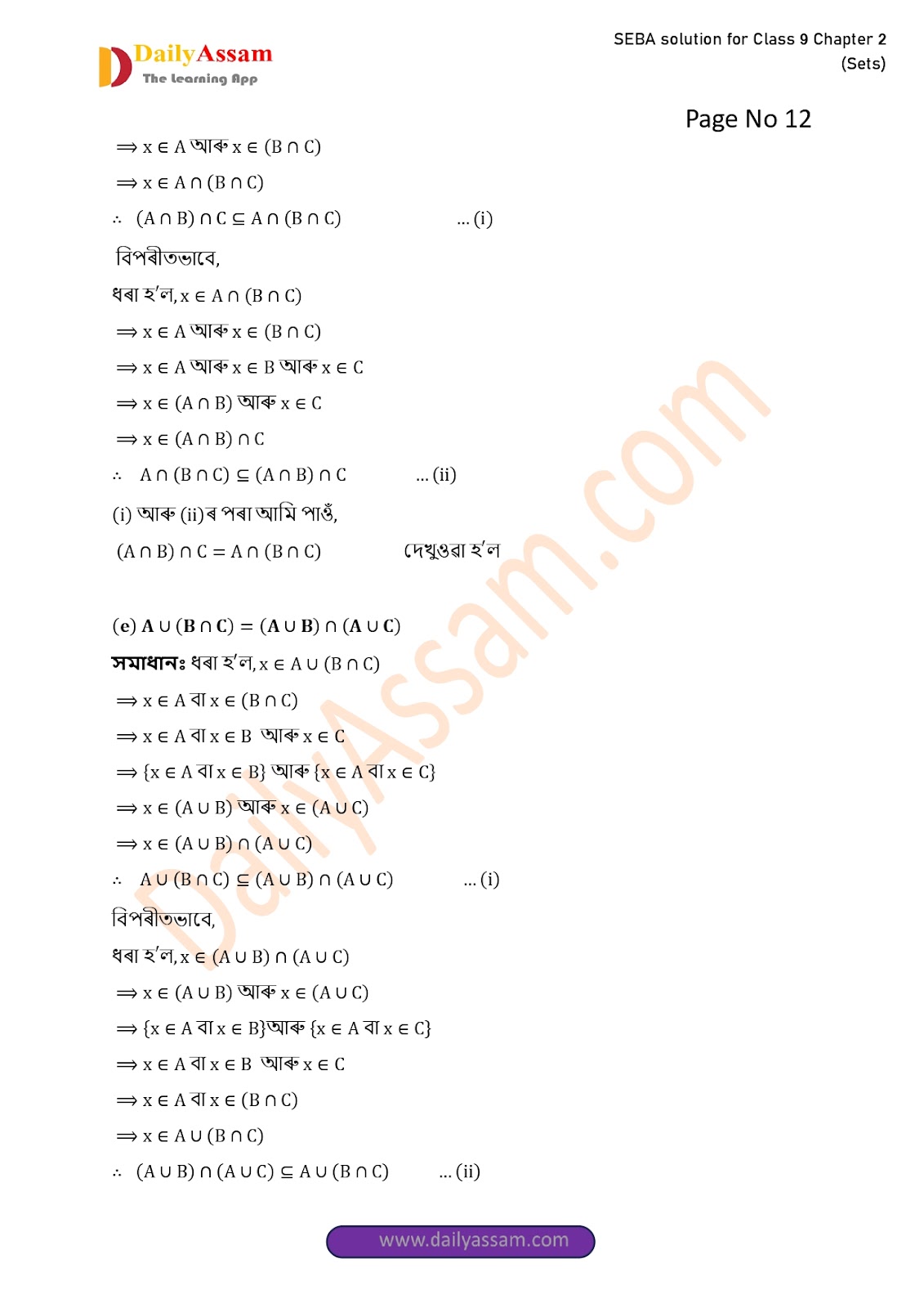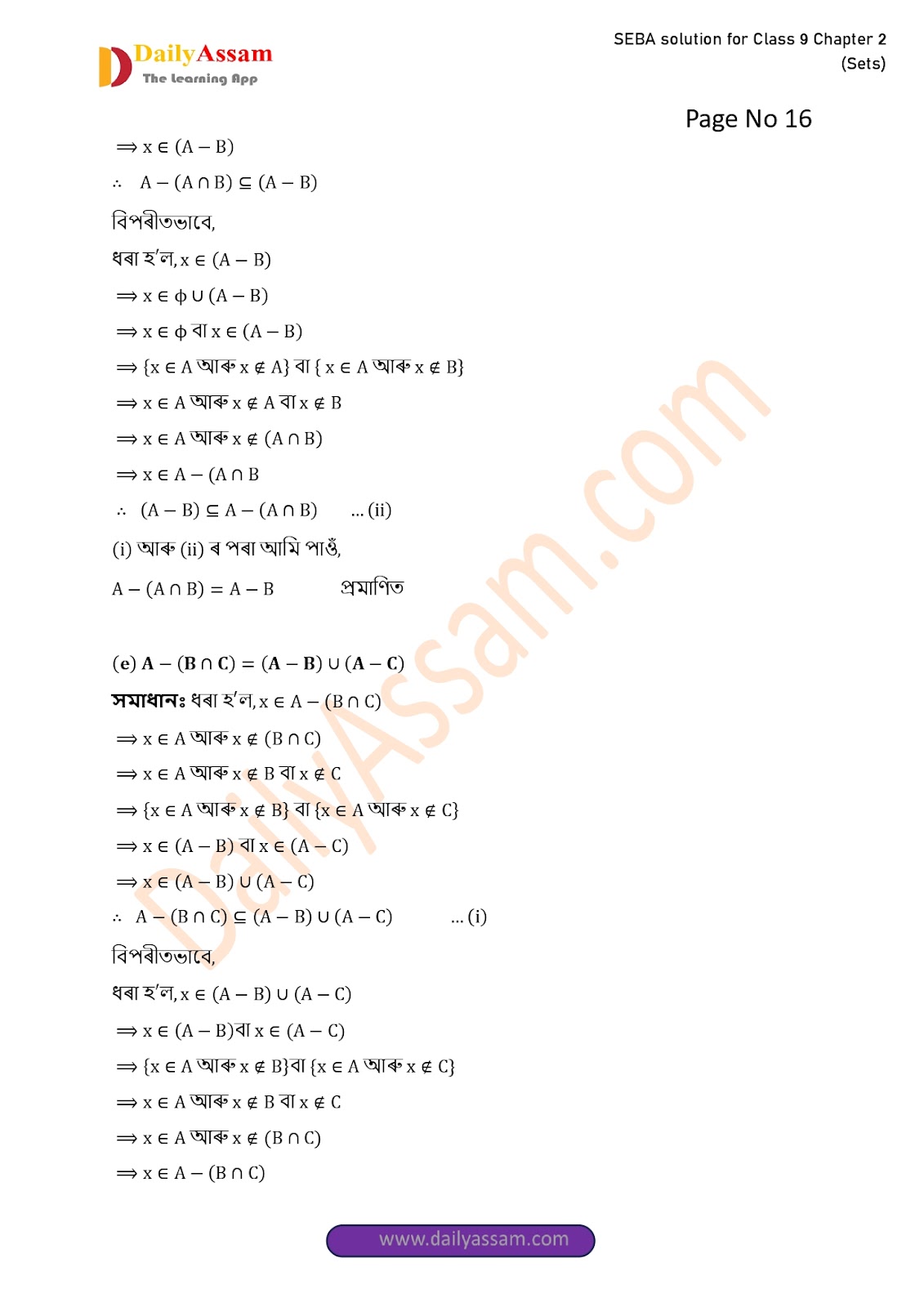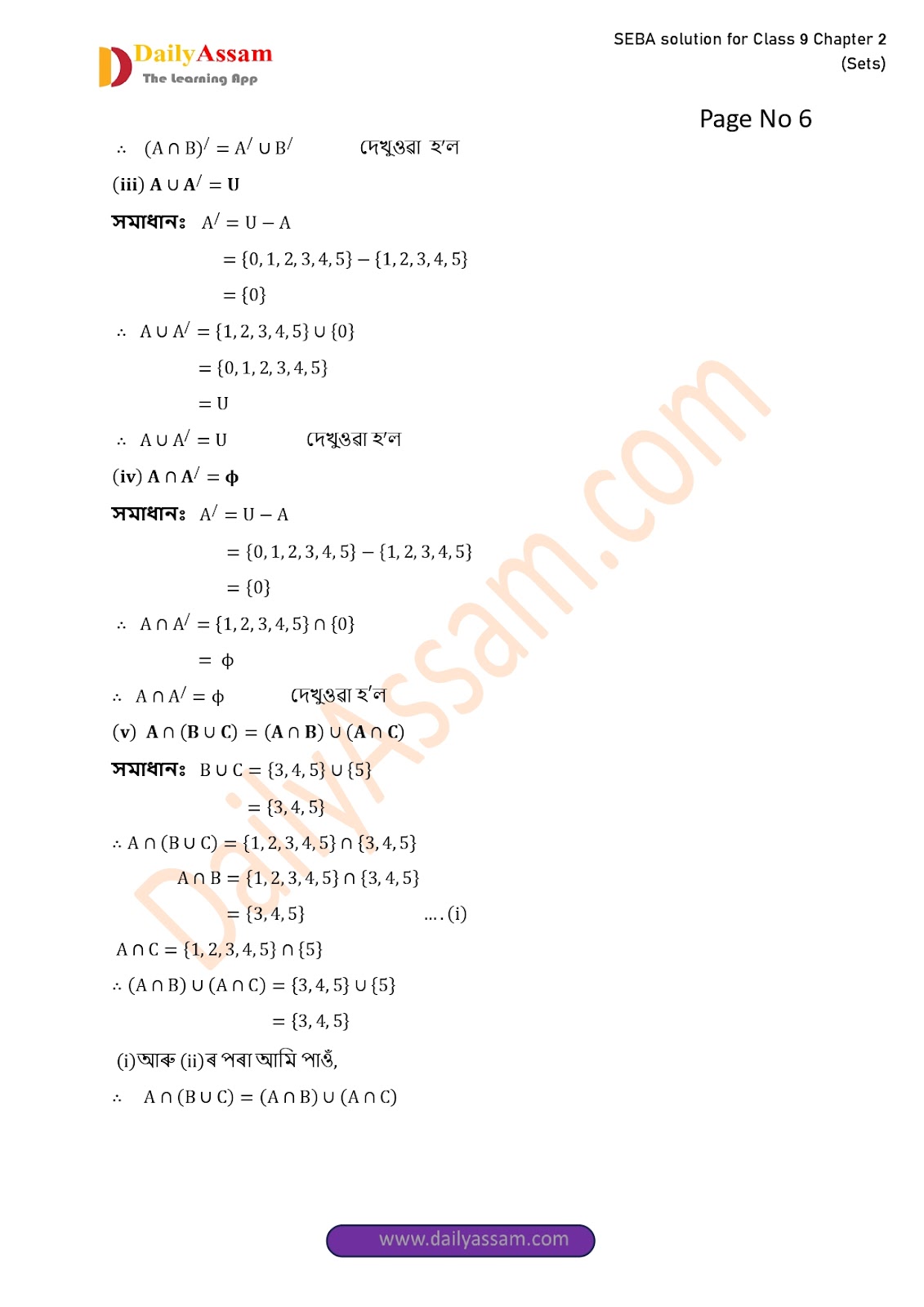 SEBA Class 9 Advanced Mathematics Chapter 2 Solution | Assam Board Class 9 Advanced Mathematics Chapter 2 সংহতি ( Sets) Answer | 2025 -2026
