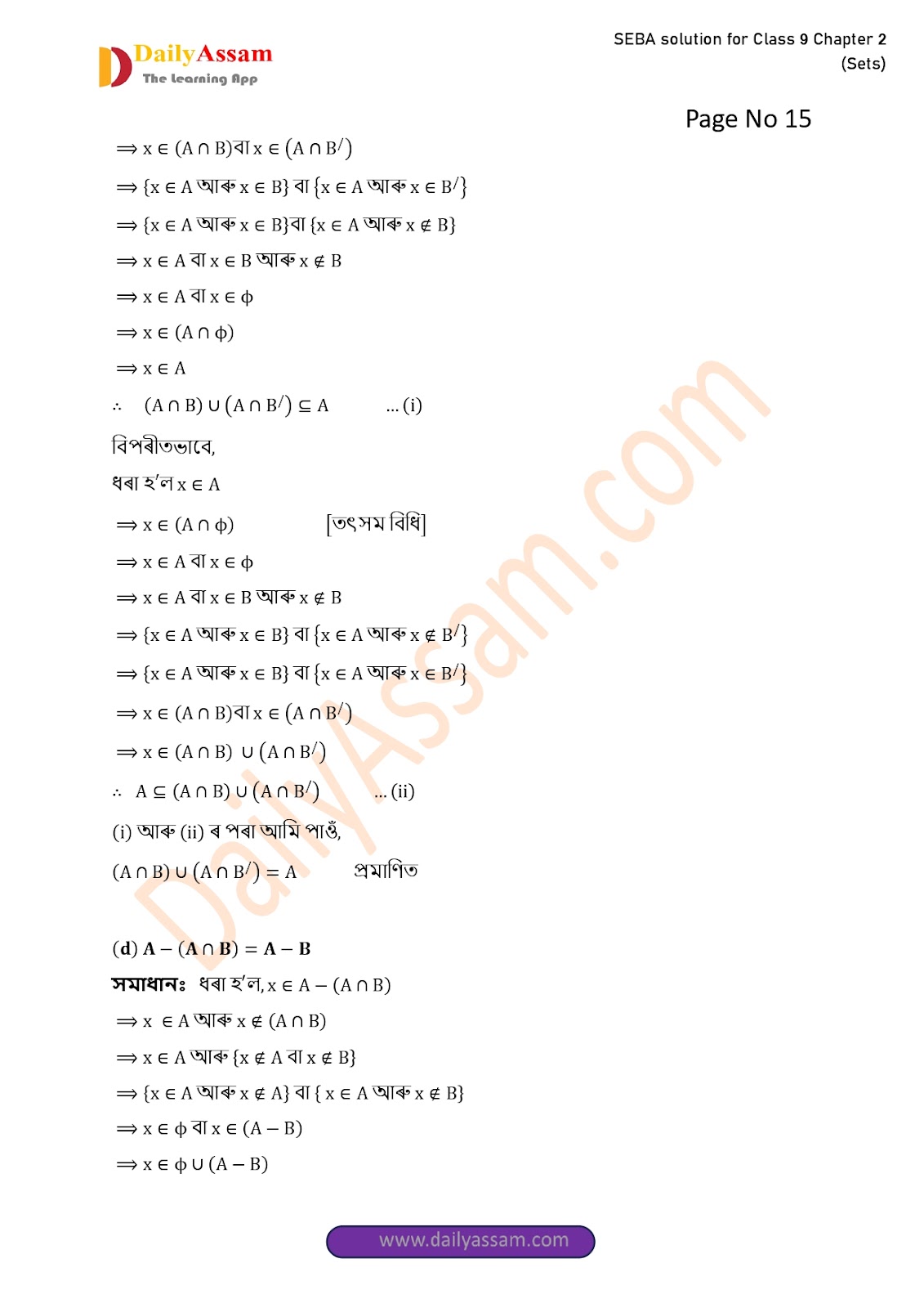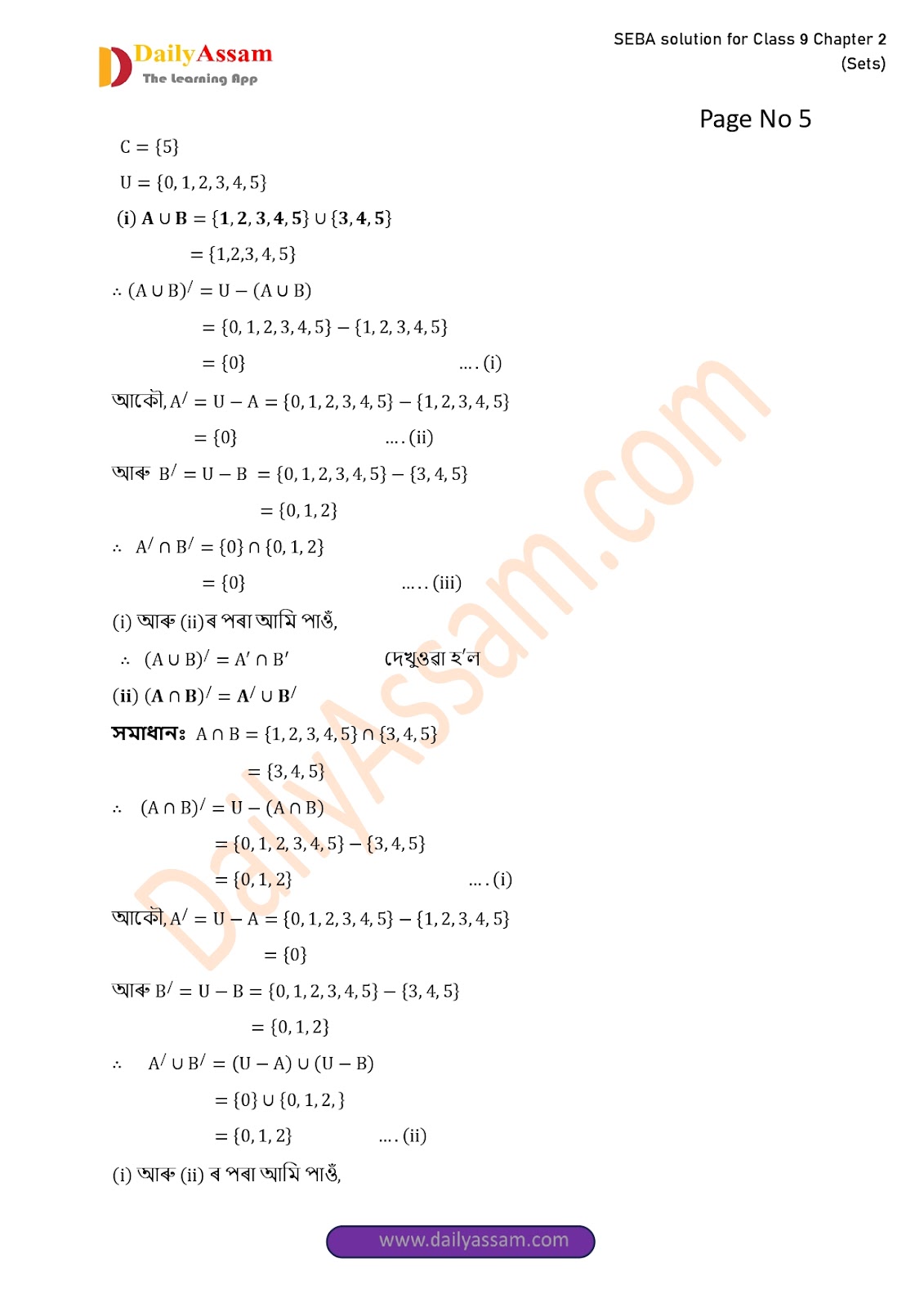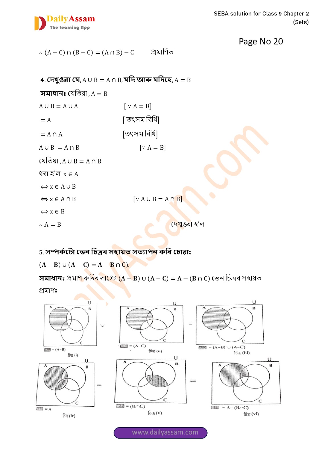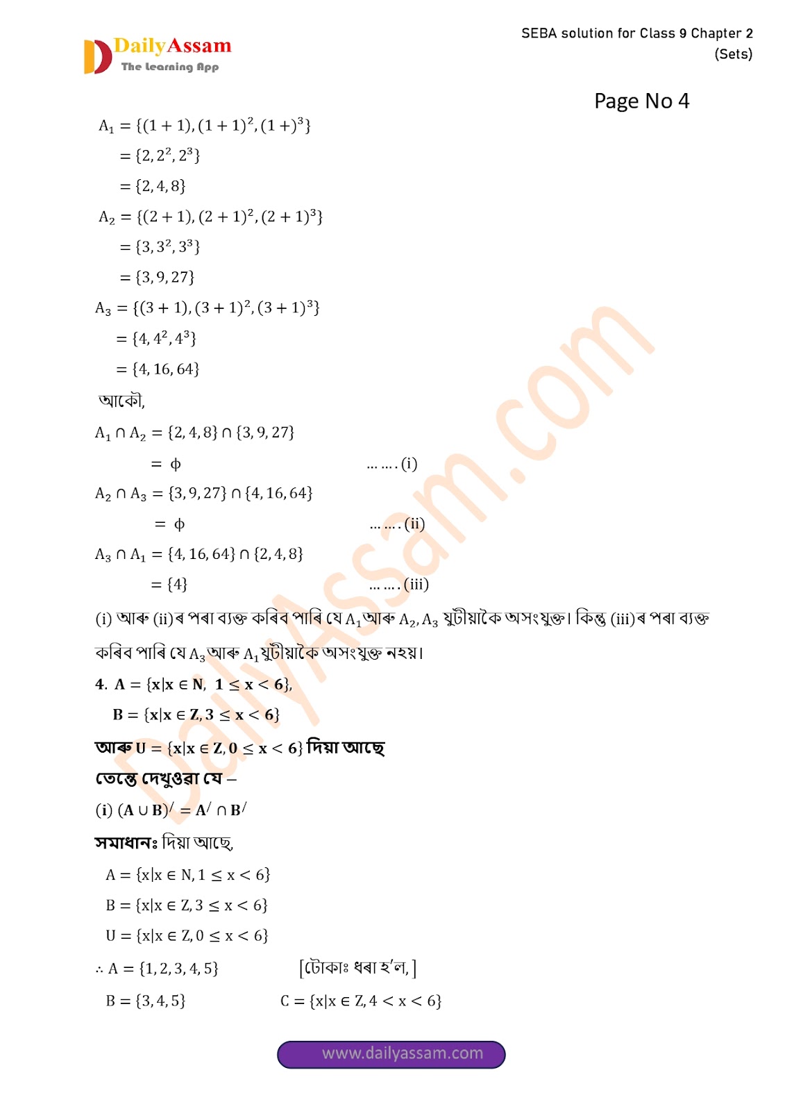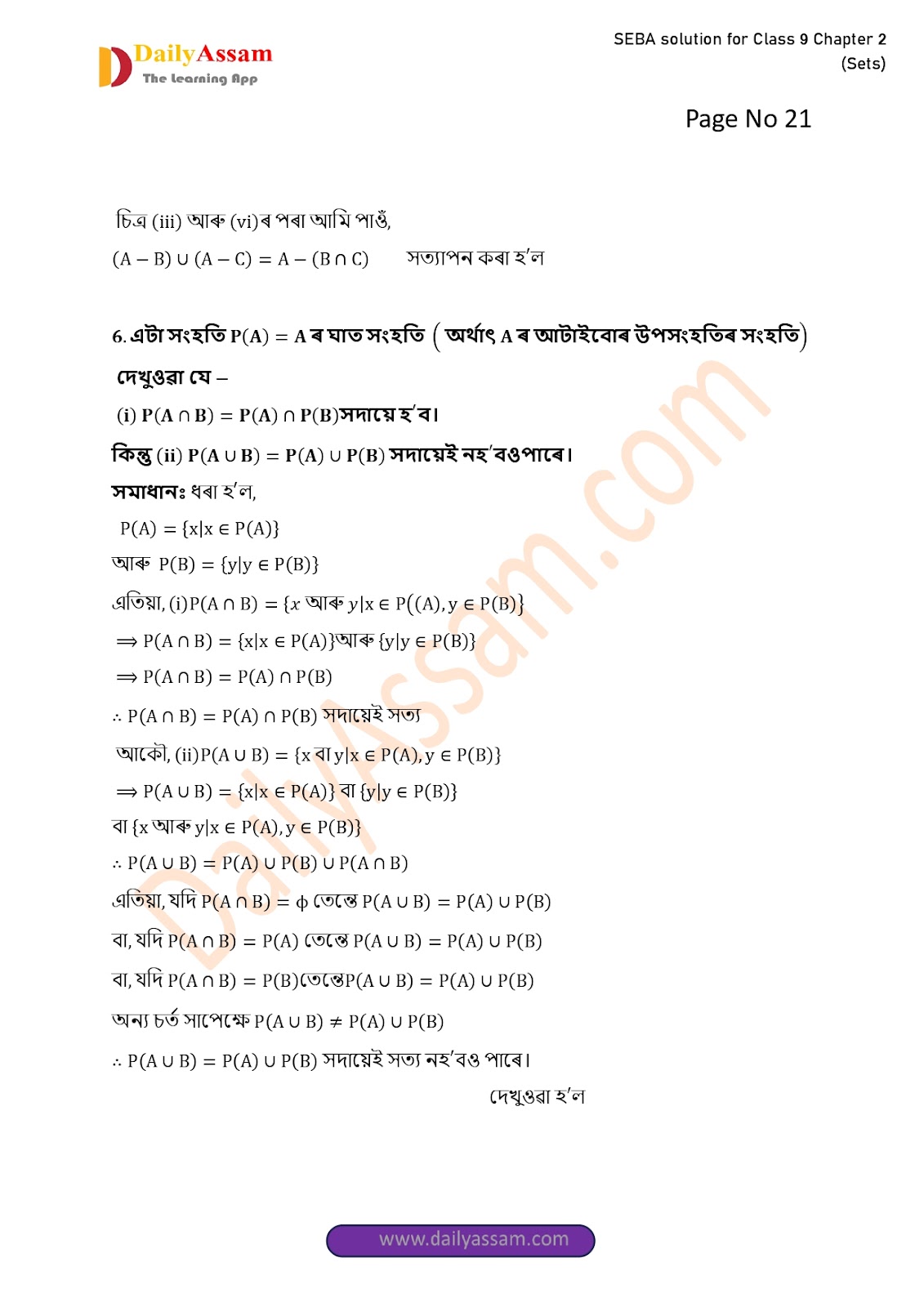 SEBA Class 9 Advanced Mathematics Chapter 2 Solution | Assam Board Class 9 Advanced Mathematics Chapter 2 সংহতি ( Sets) Answer | 2025 -2026