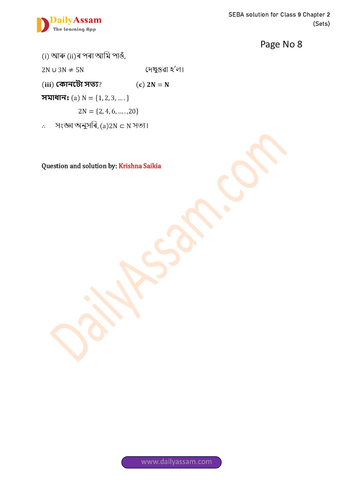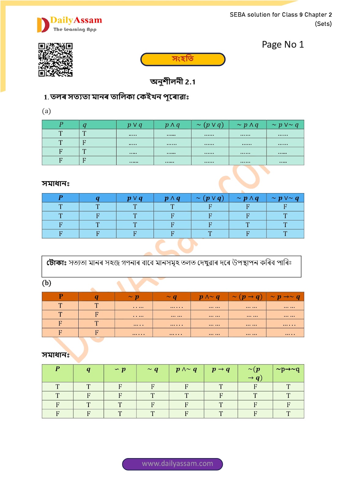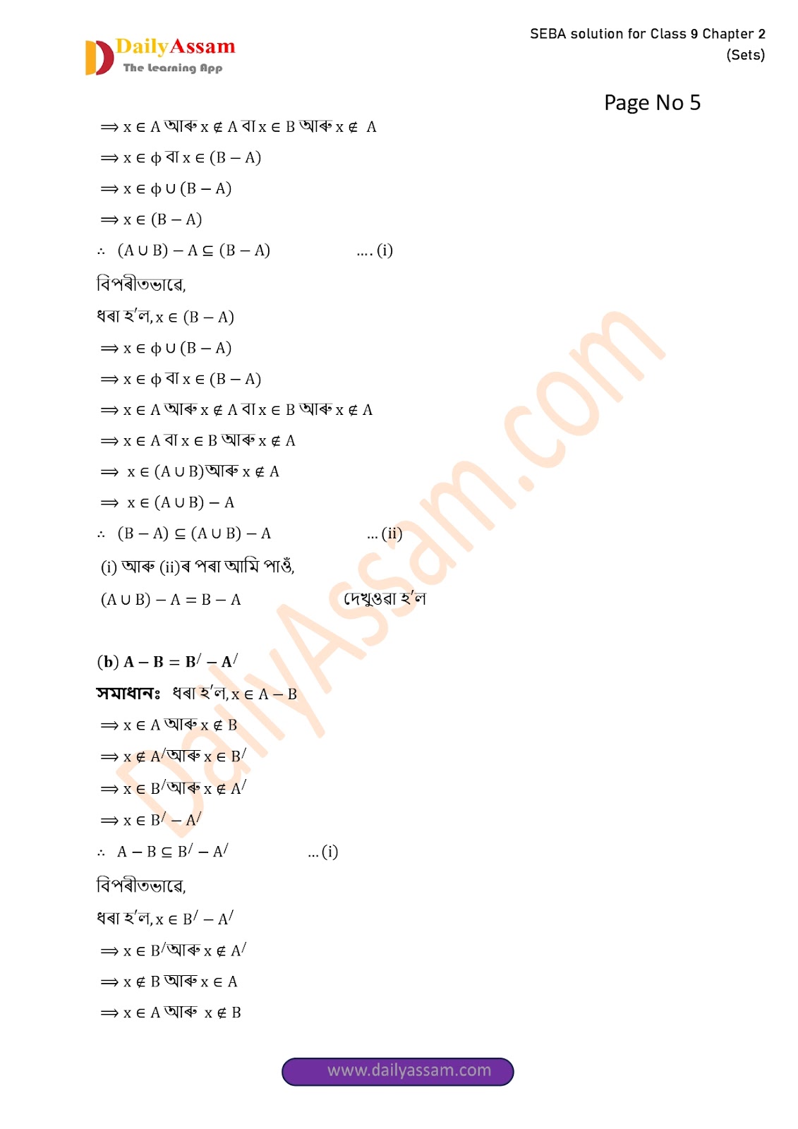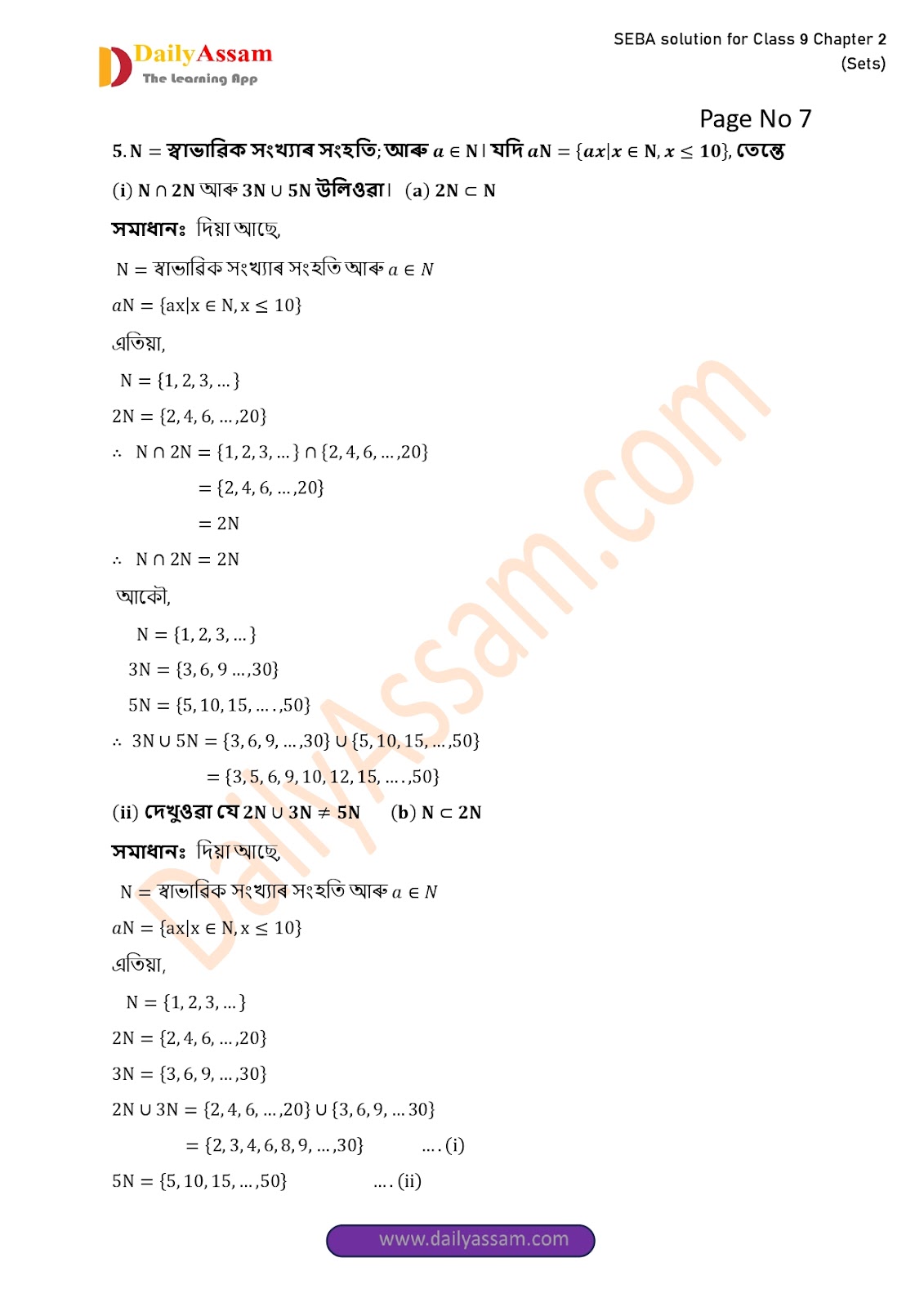 SEBA Class 9 Advanced Mathematics Chapter 2 Solution | Assam Board Class 9 Advanced Mathematics Chapter 2 সংহতি ( Sets) Answer | 2025 -2026