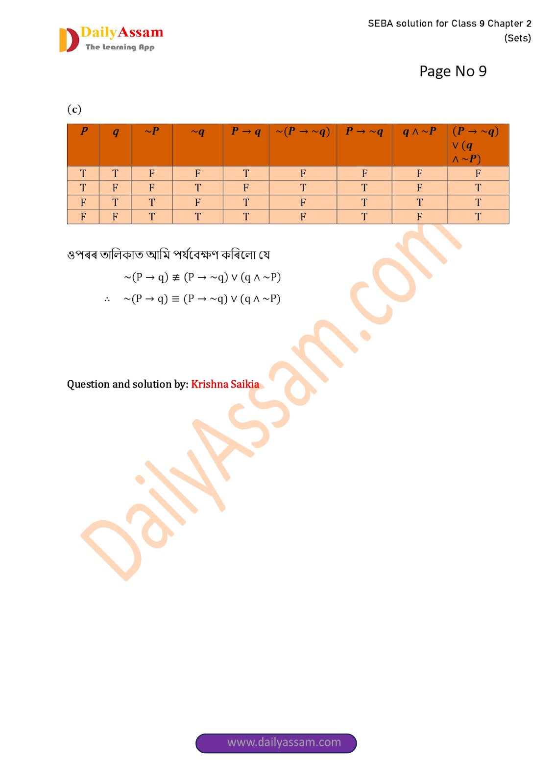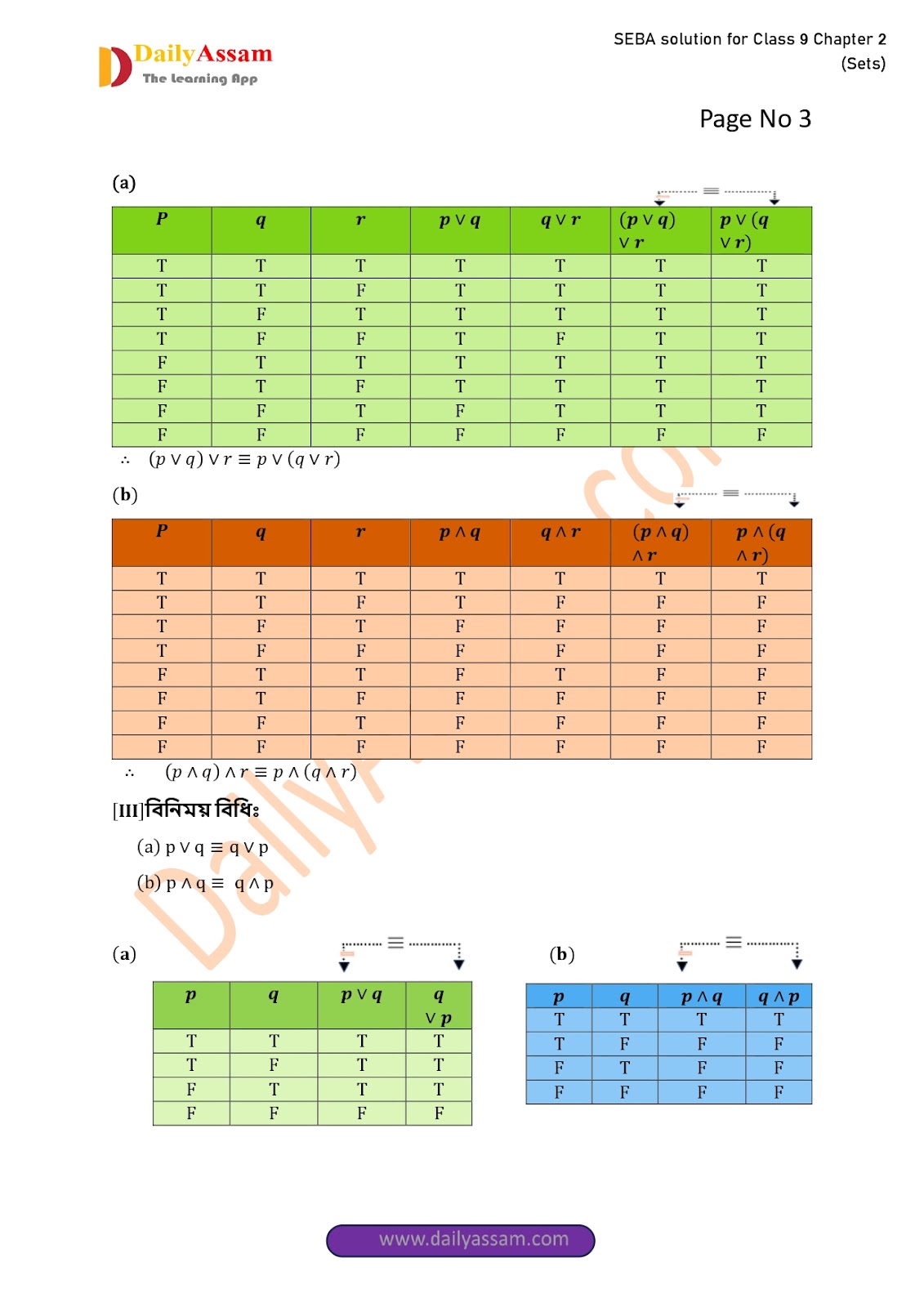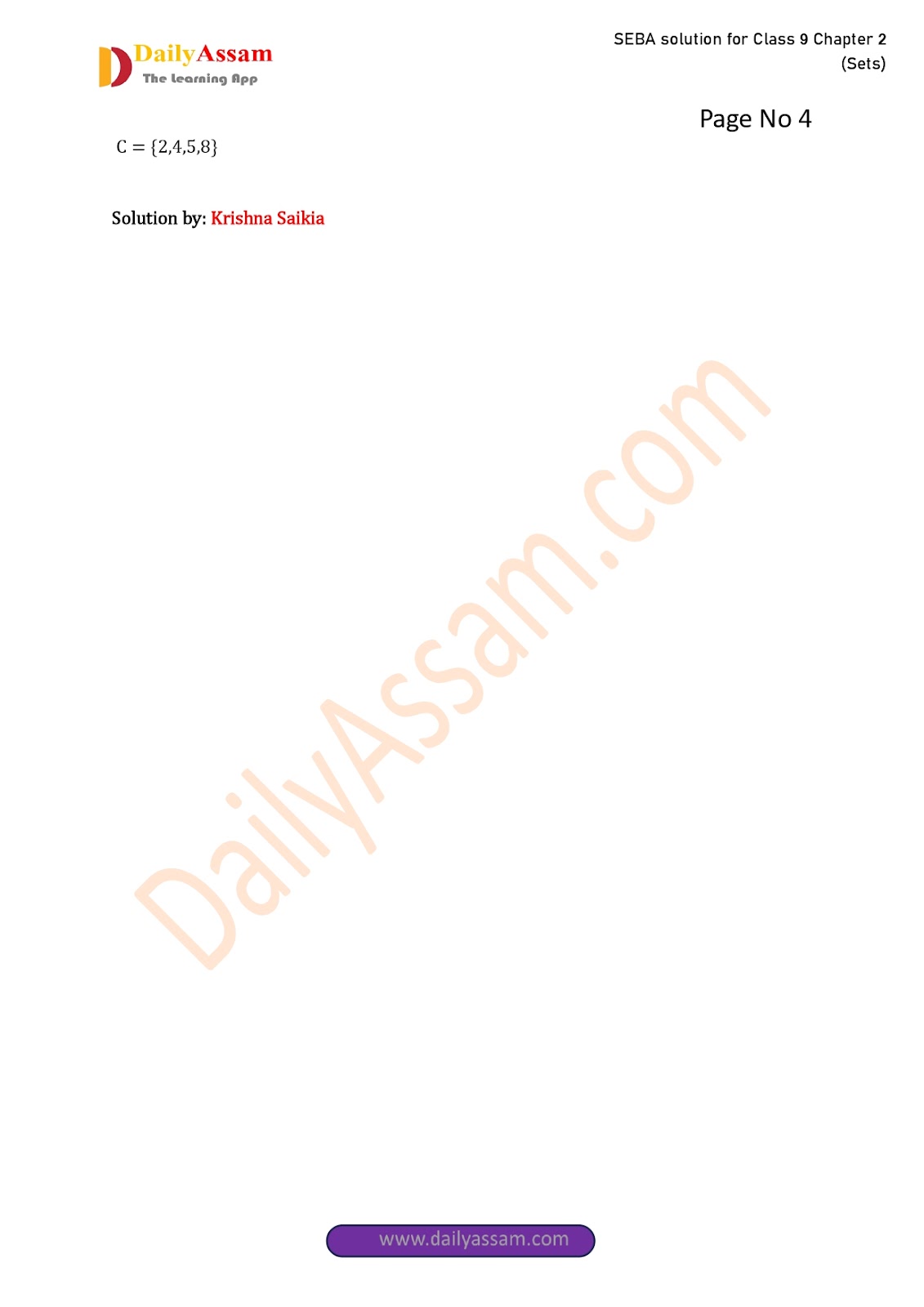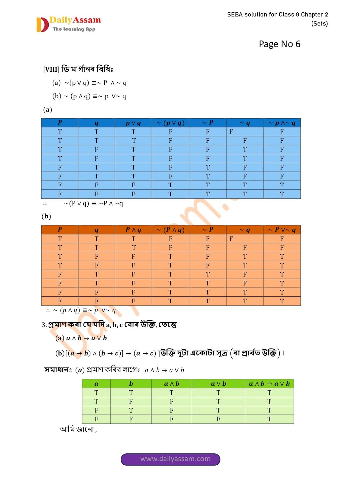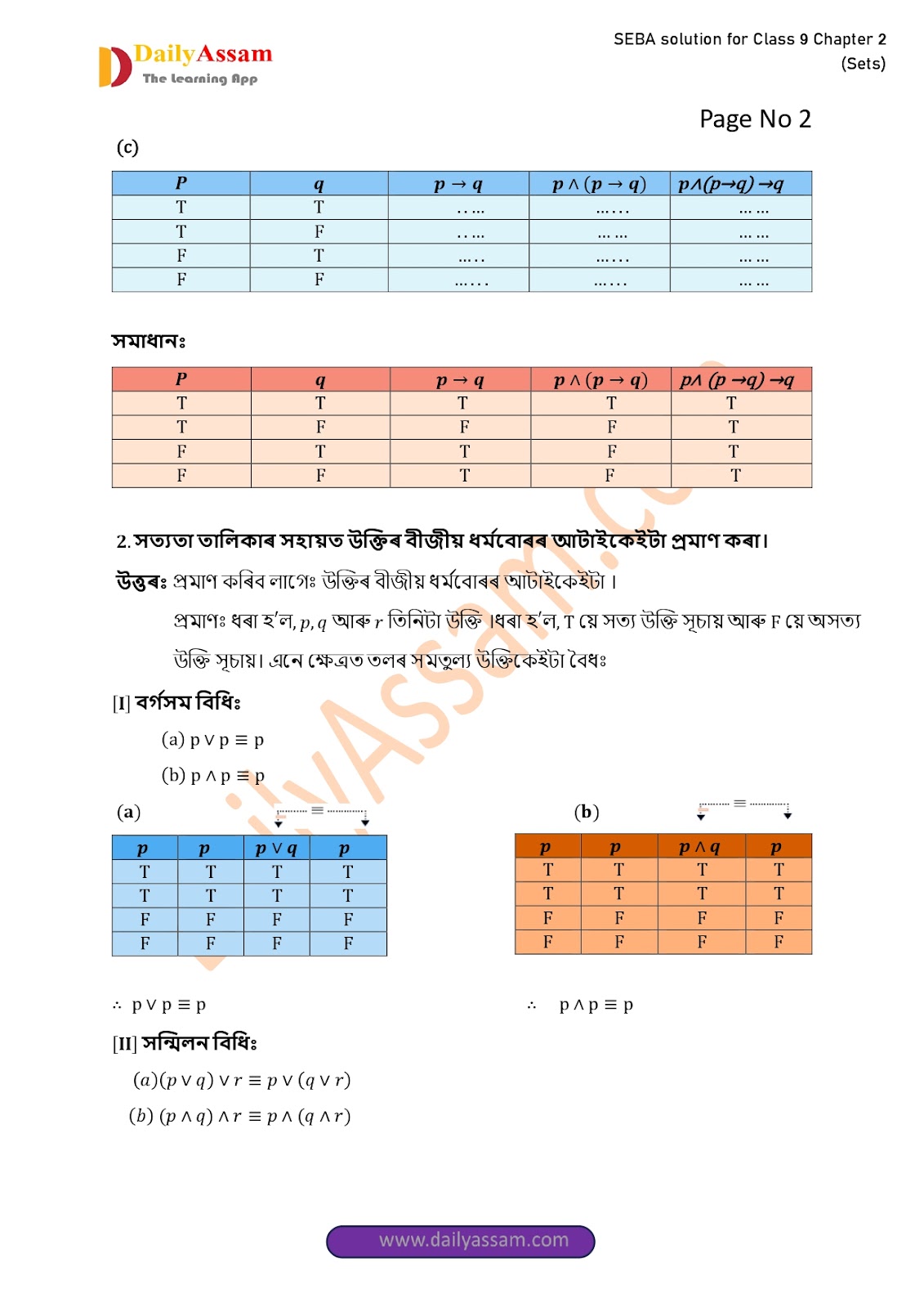 SEBA Class 9 Advanced Mathematics Chapter 2 Solution | Assam Board Class 9 Advanced Mathematics Chapter 2 সংহতি ( Sets) Answer | 2025 -2026