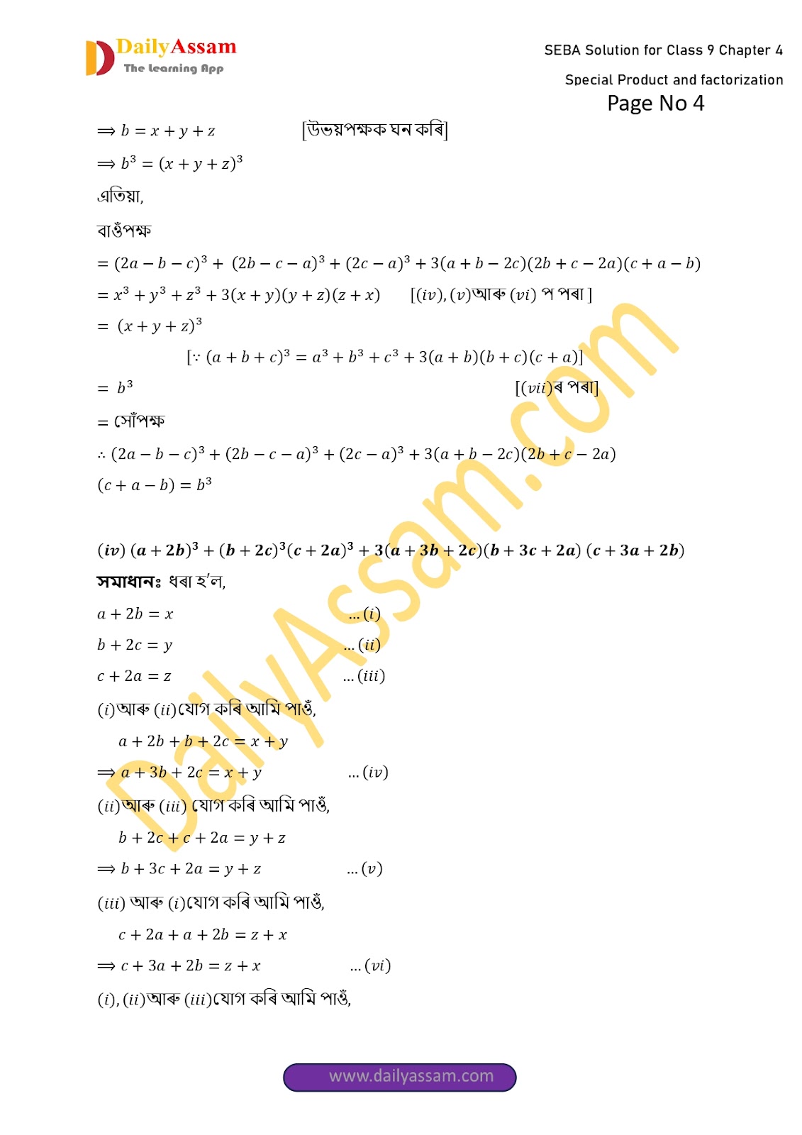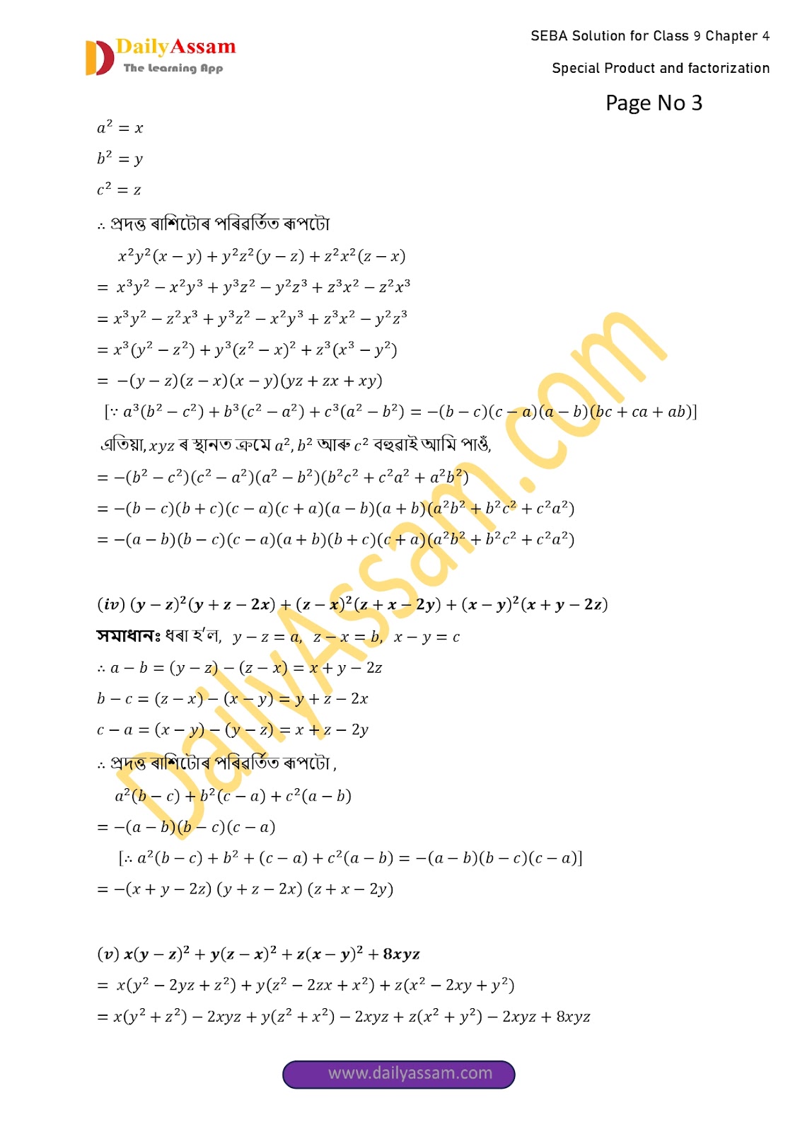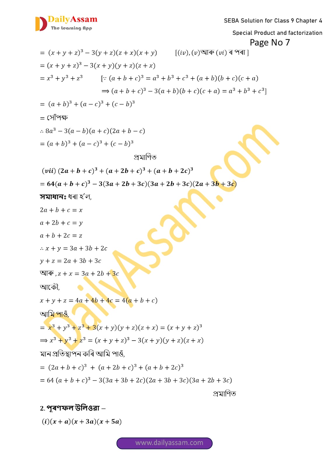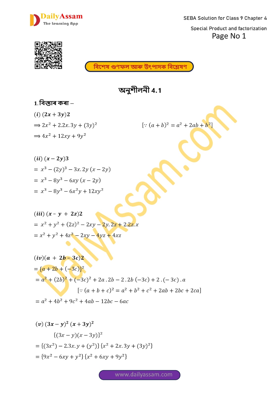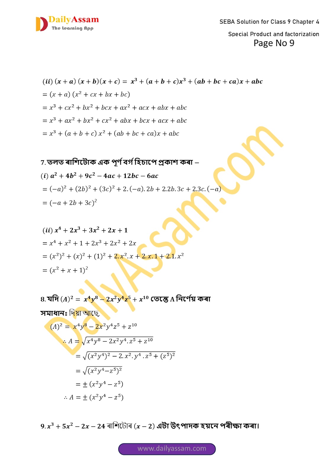 SEBA Class 9 Advanced Mathematics Chapter 4 Solution | Assam Board Class 9 Advanced Mathematics Chapter 4 বিশেষ গুণফল আৰু উৎপাদক বিশ্লেষণ (Special Product and Factorization) Answer | 2025 -2026