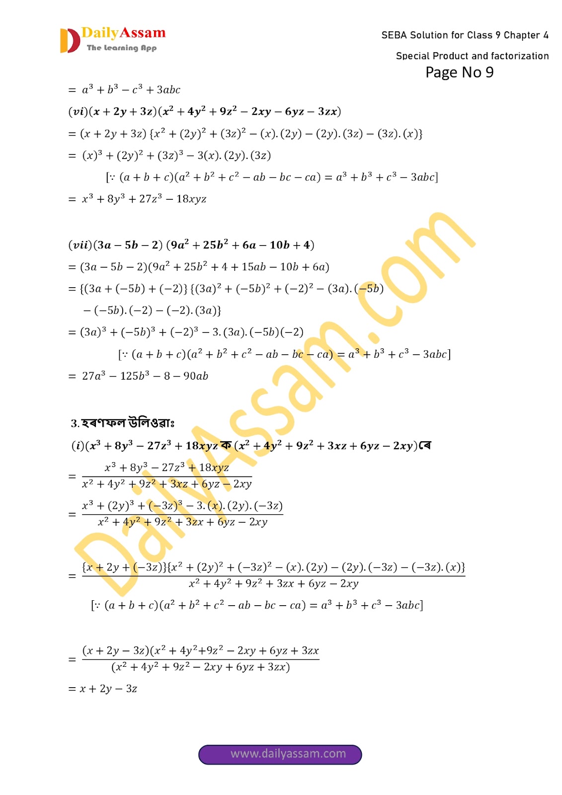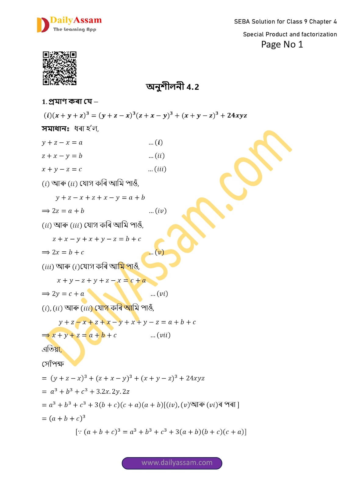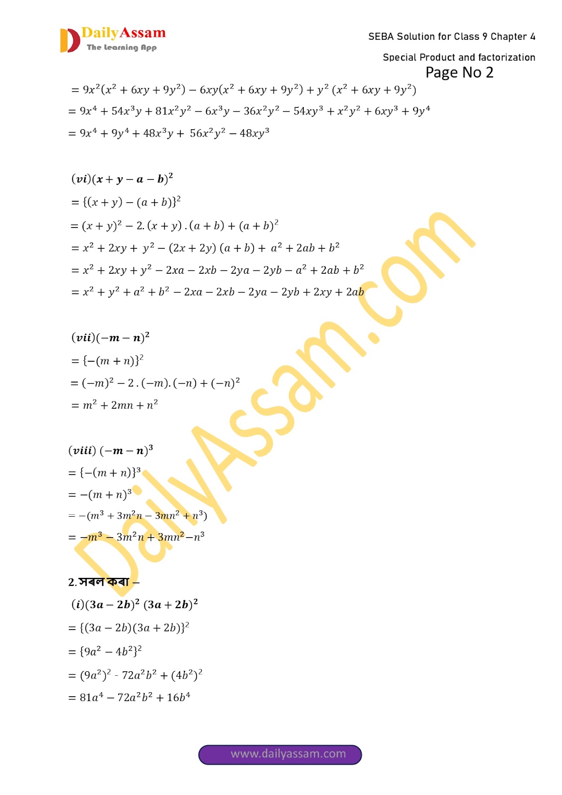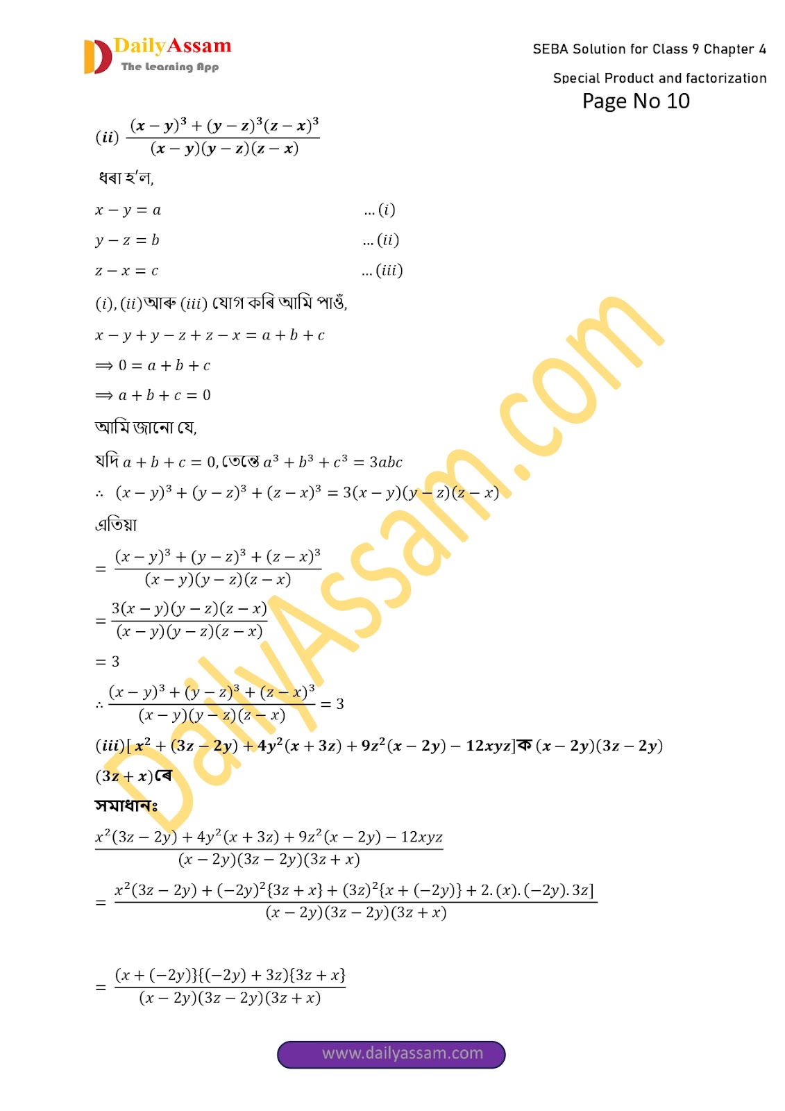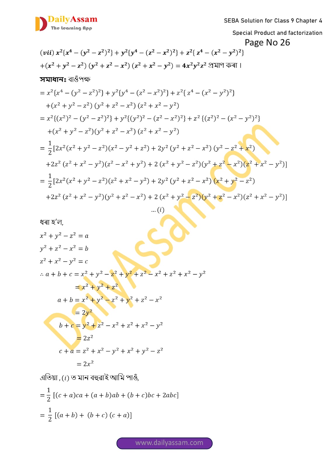 SEBA Class 9 Advanced Mathematics Chapter 4 Solution | Assam Board Class 9 Advanced Mathematics Chapter 4 বিশেষ গুণফল আৰু উৎপাদক বিশ্লেষণ (Special Product and Factorization) Answer | 2025 -2026