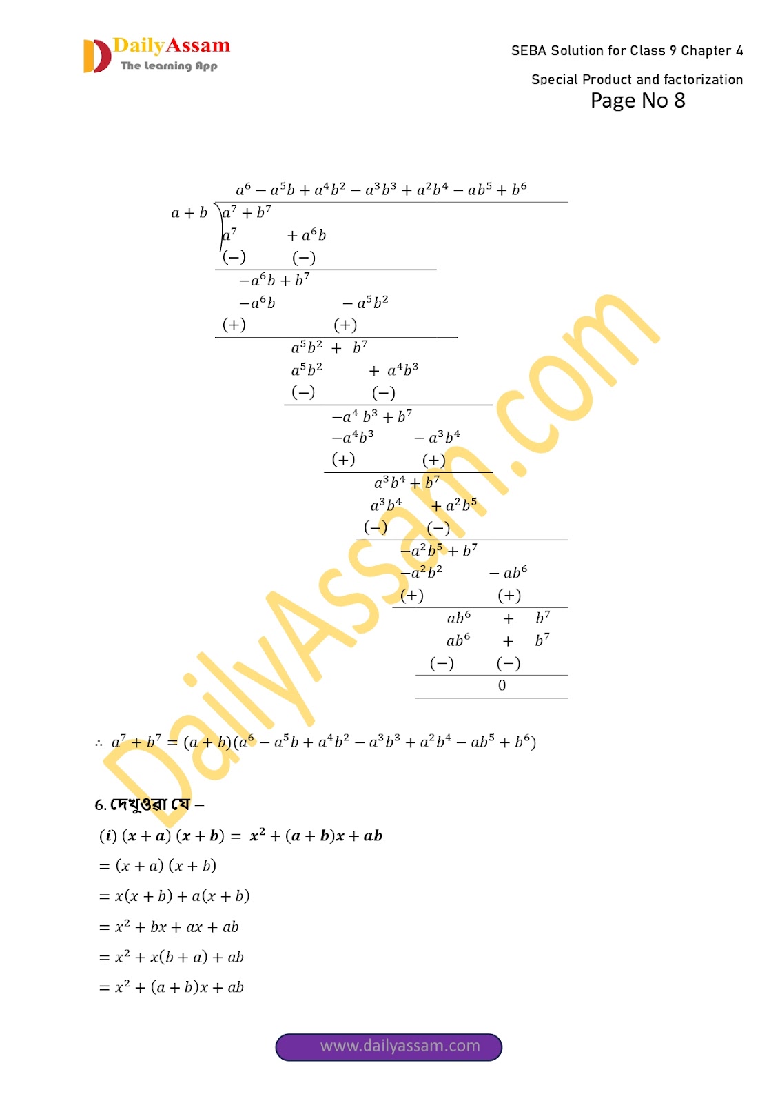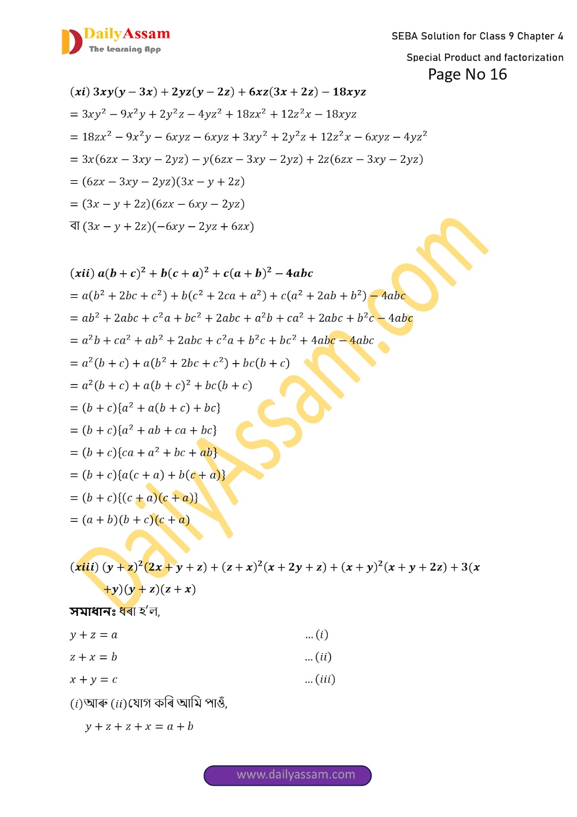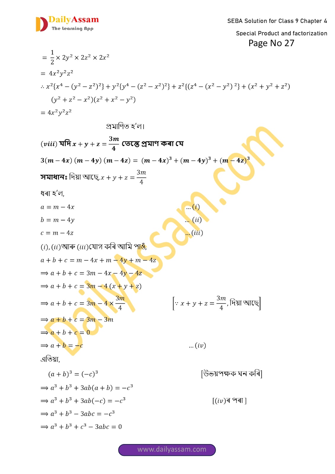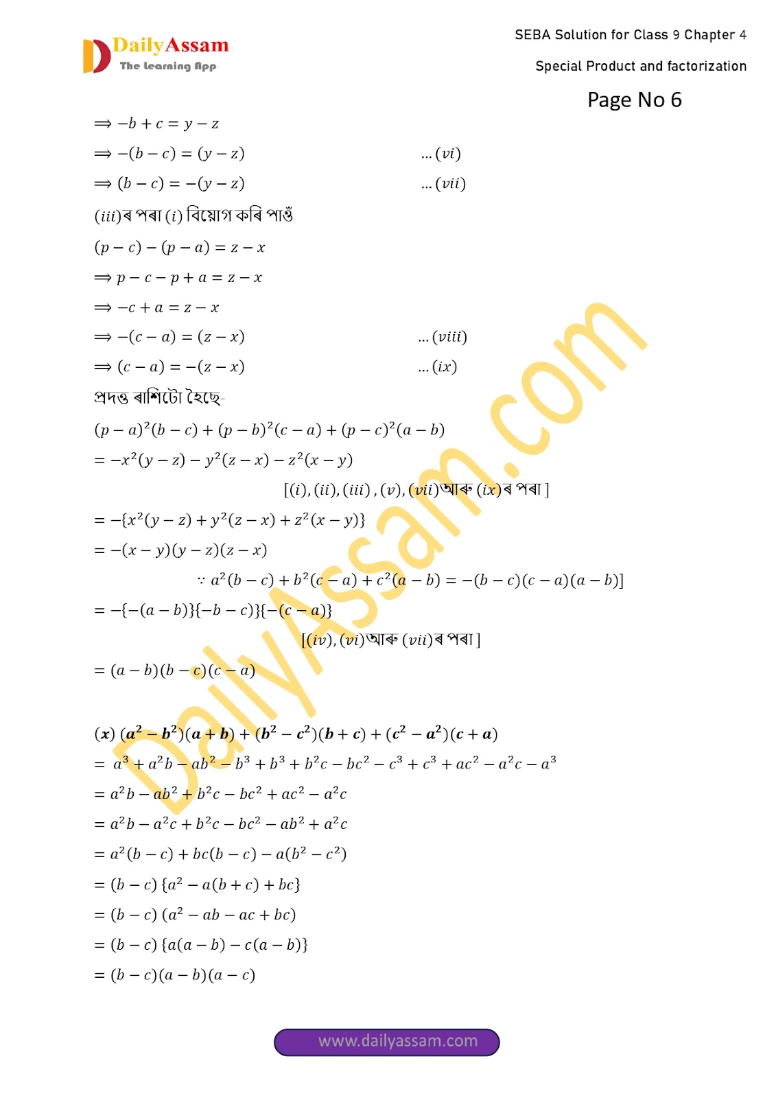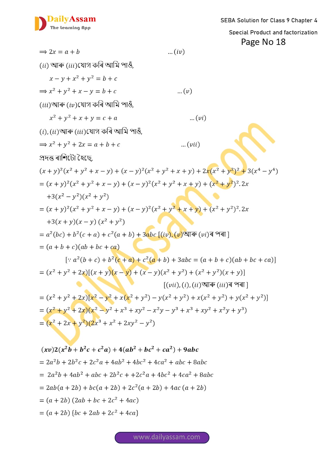 SEBA Class 9 Advanced Mathematics Chapter 4 Solution | Assam Board Class 9 Advanced Mathematics Chapter 4 বিশেষ গুণফল আৰু উৎপাদক বিশ্লেষণ (Special Product and Factorization) Answer | 2025 -2026