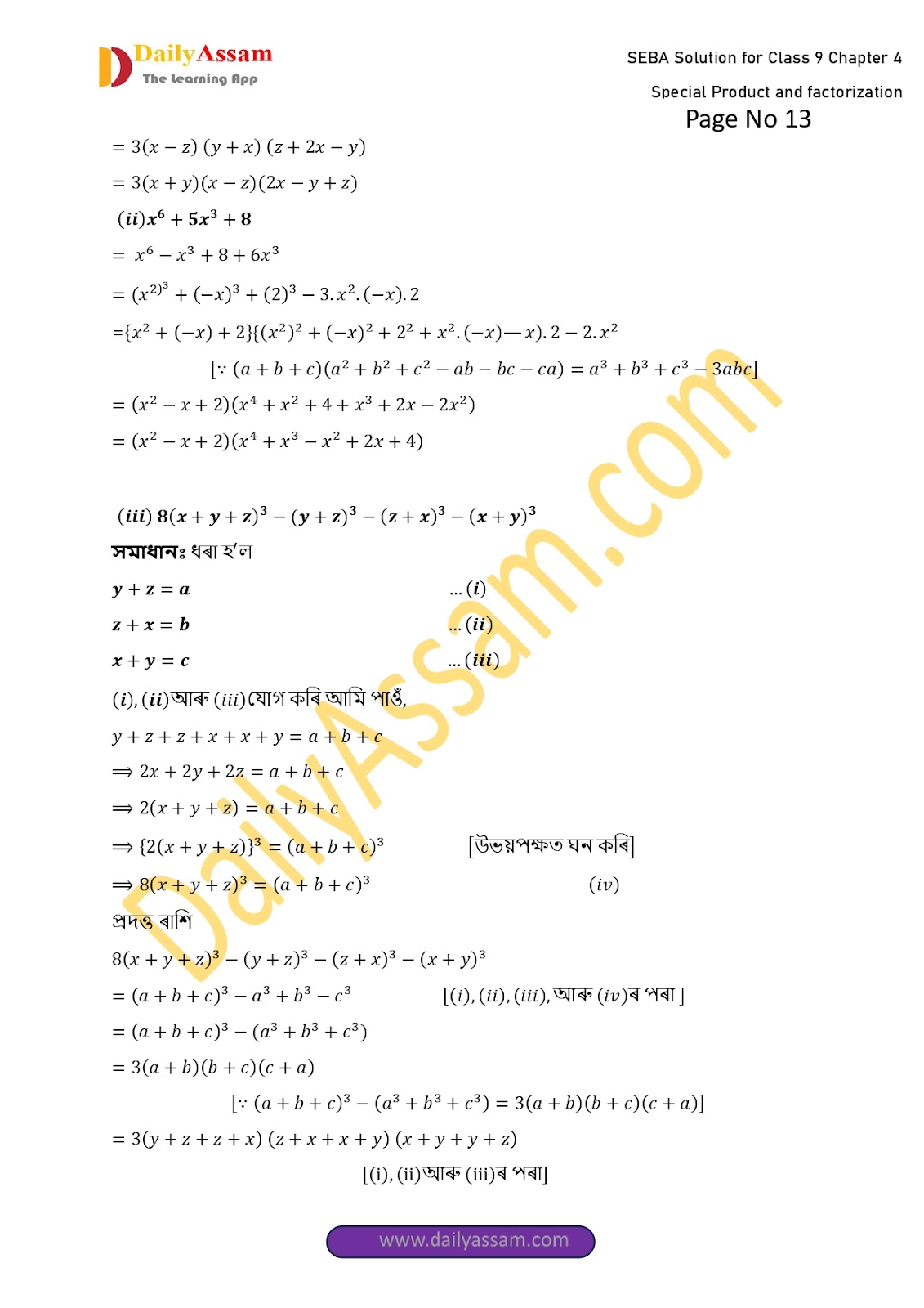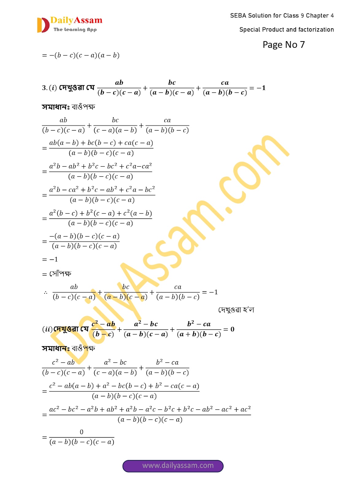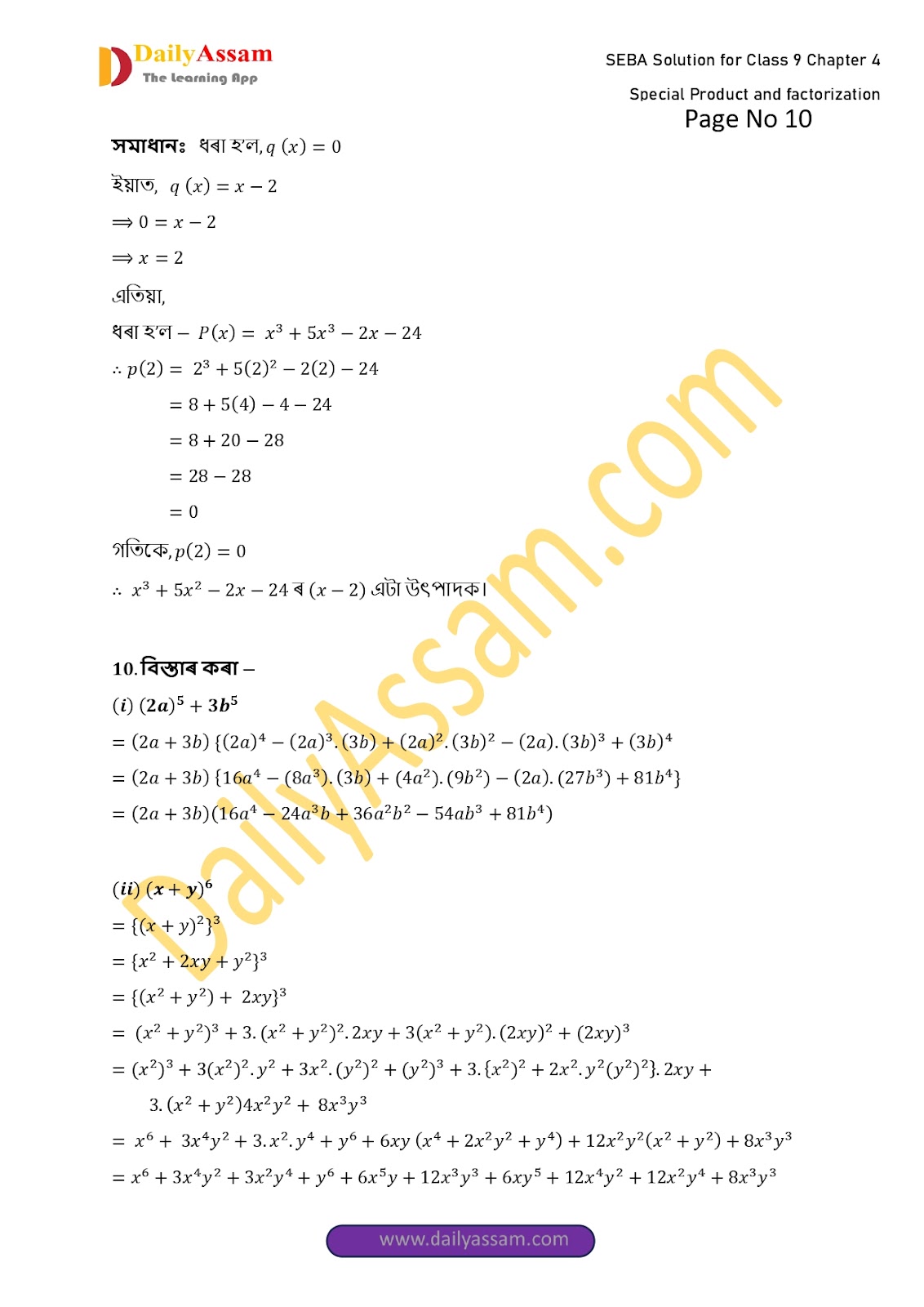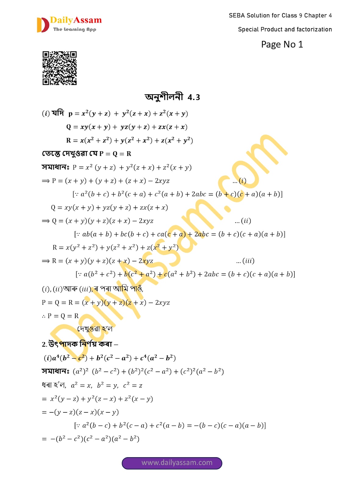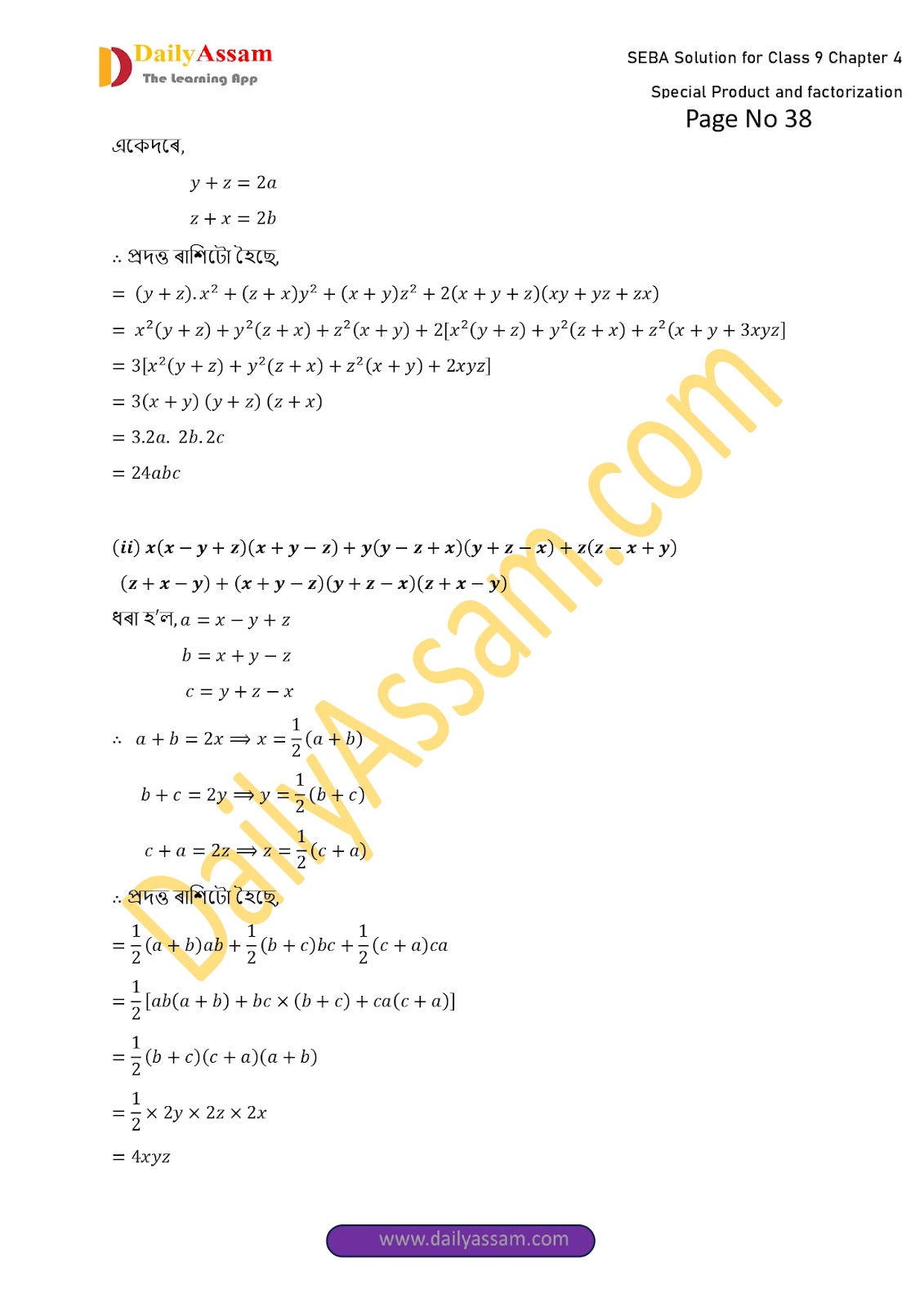 SEBA Class 9 Advanced Mathematics Chapter 4 Solution | Assam Board Class 9 Advanced Mathematics Chapter 4 বিশেষ গুণফল আৰু উৎপাদক বিশ্লেষণ (Special Product and Factorization) Answer | 2025 -2026