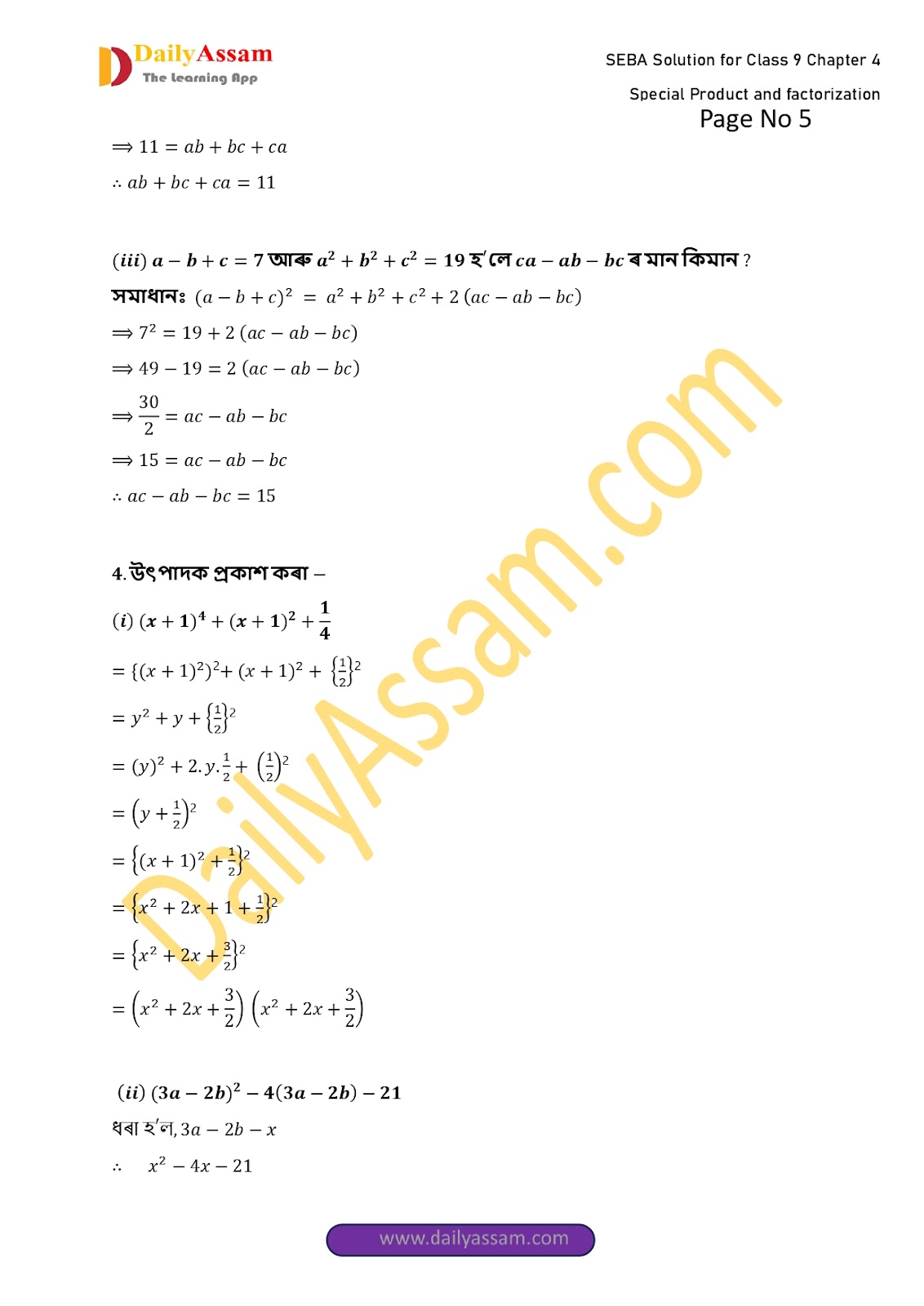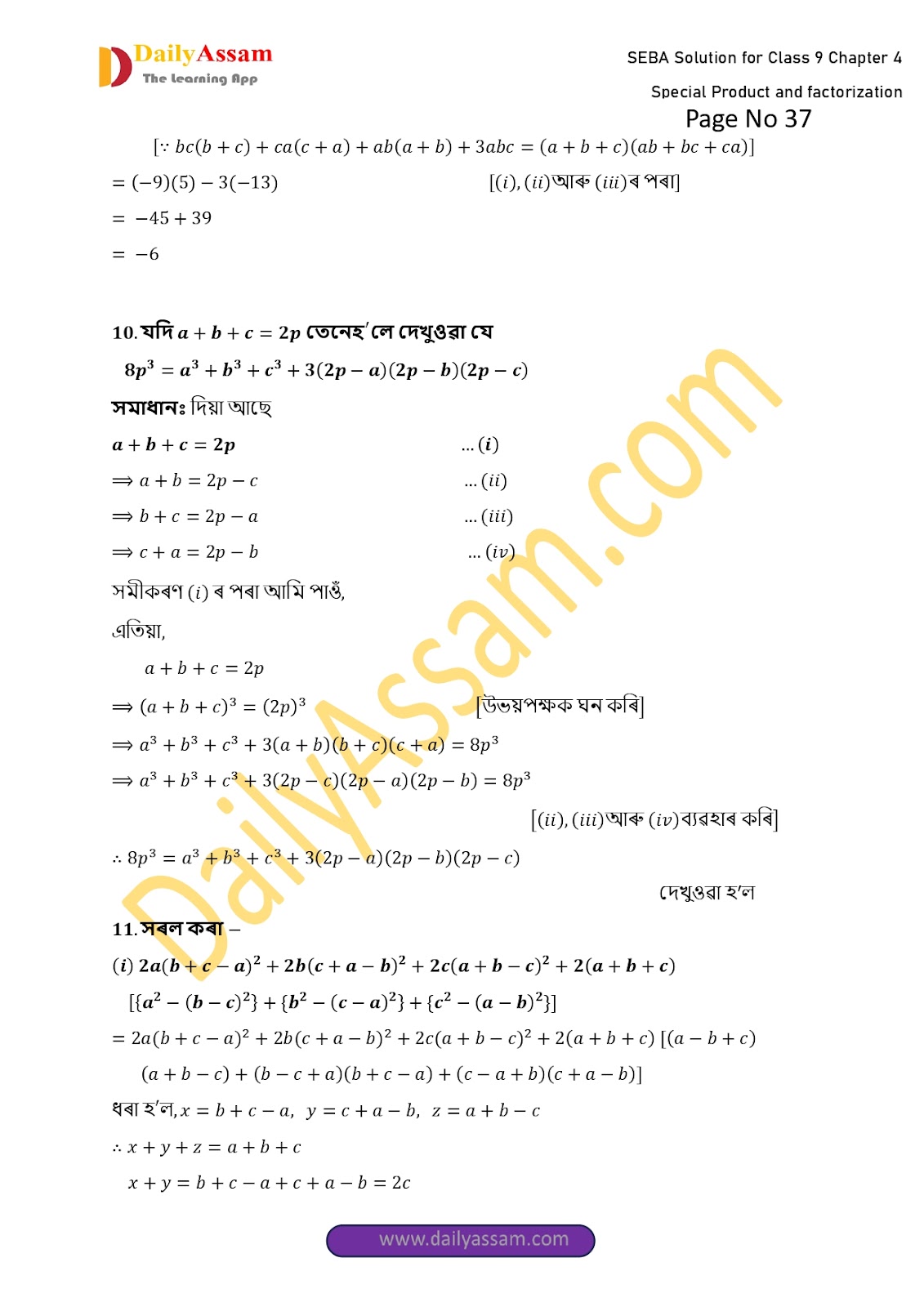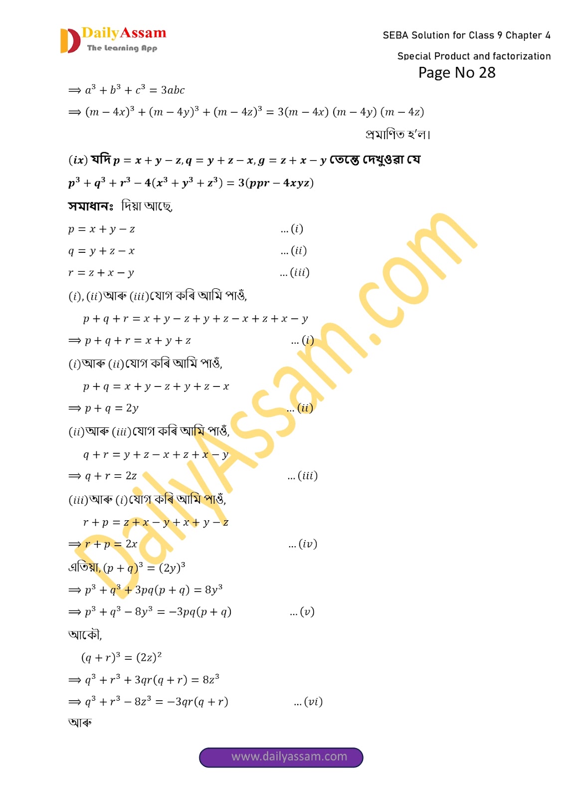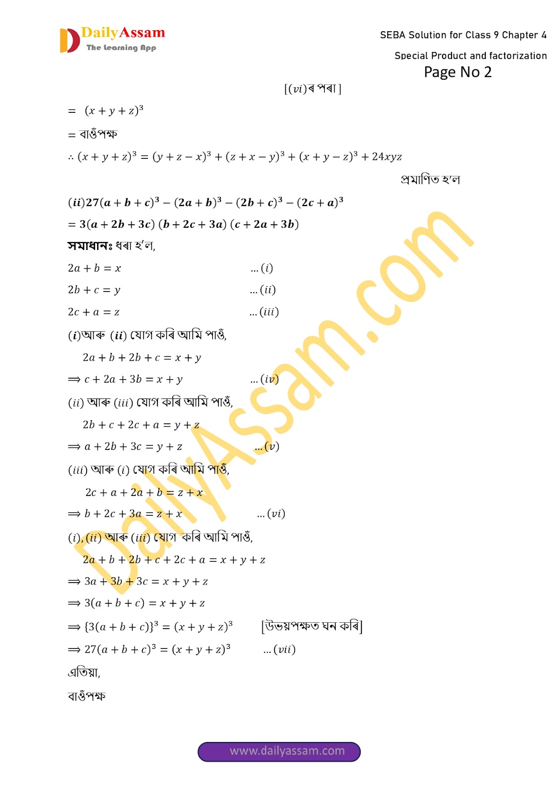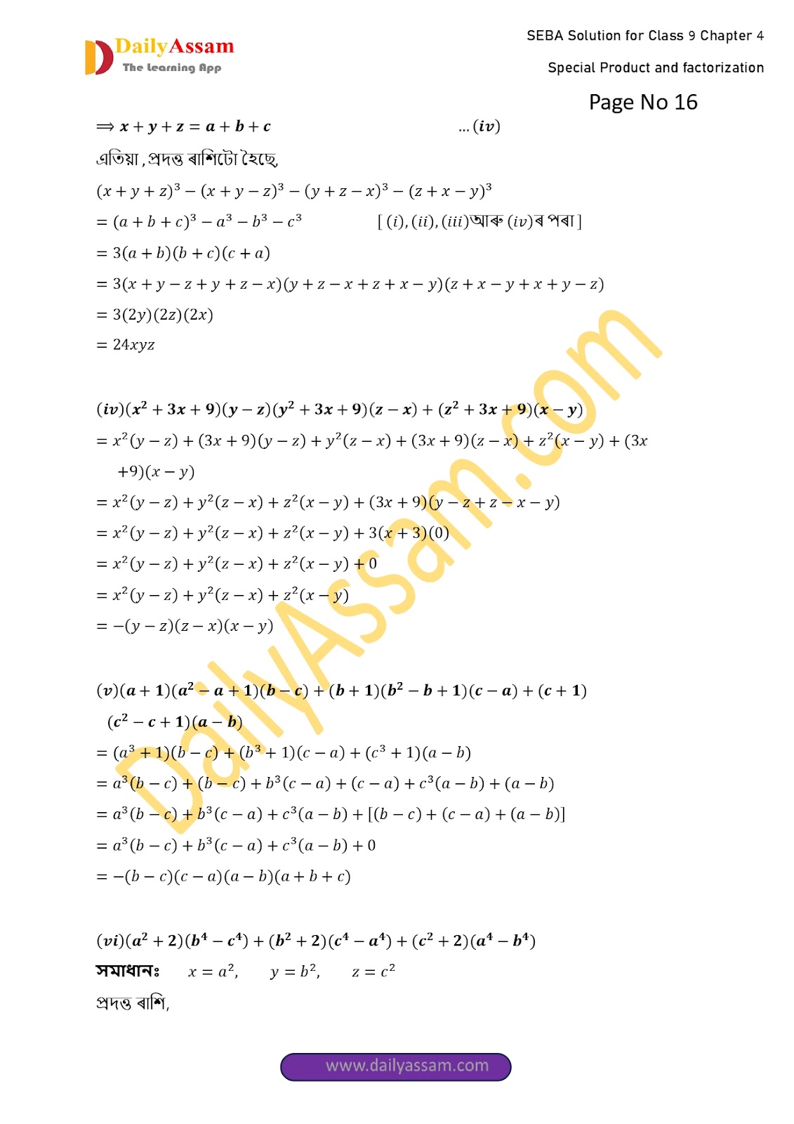 SEBA Class 9 Advanced Mathematics Chapter 4 Solution | Assam Board Class 9 Advanced Mathematics Chapter 4 বিশেষ গুণফল আৰু উৎপাদক বিশ্লেষণ (Special Product and Factorization) Answer | 2025 -2026
