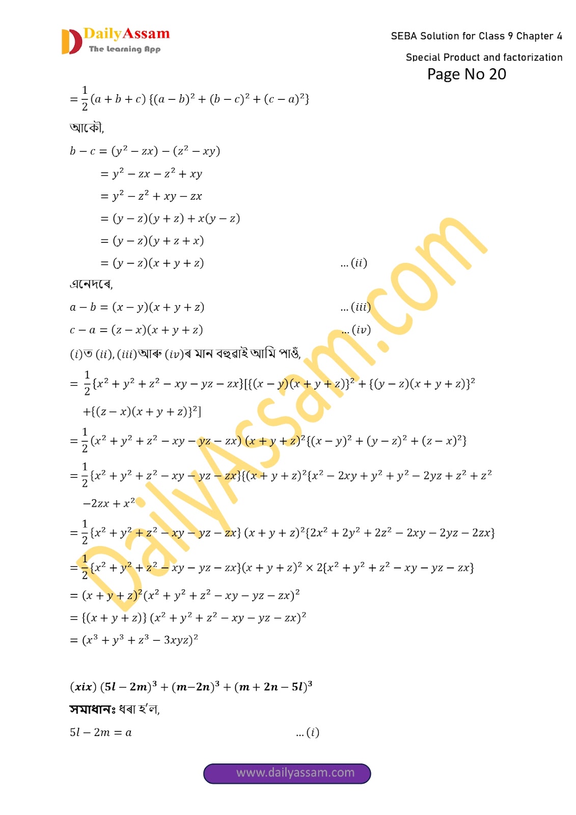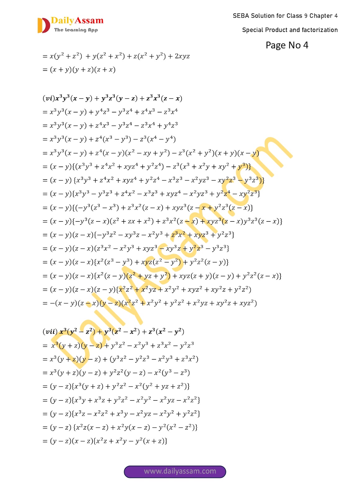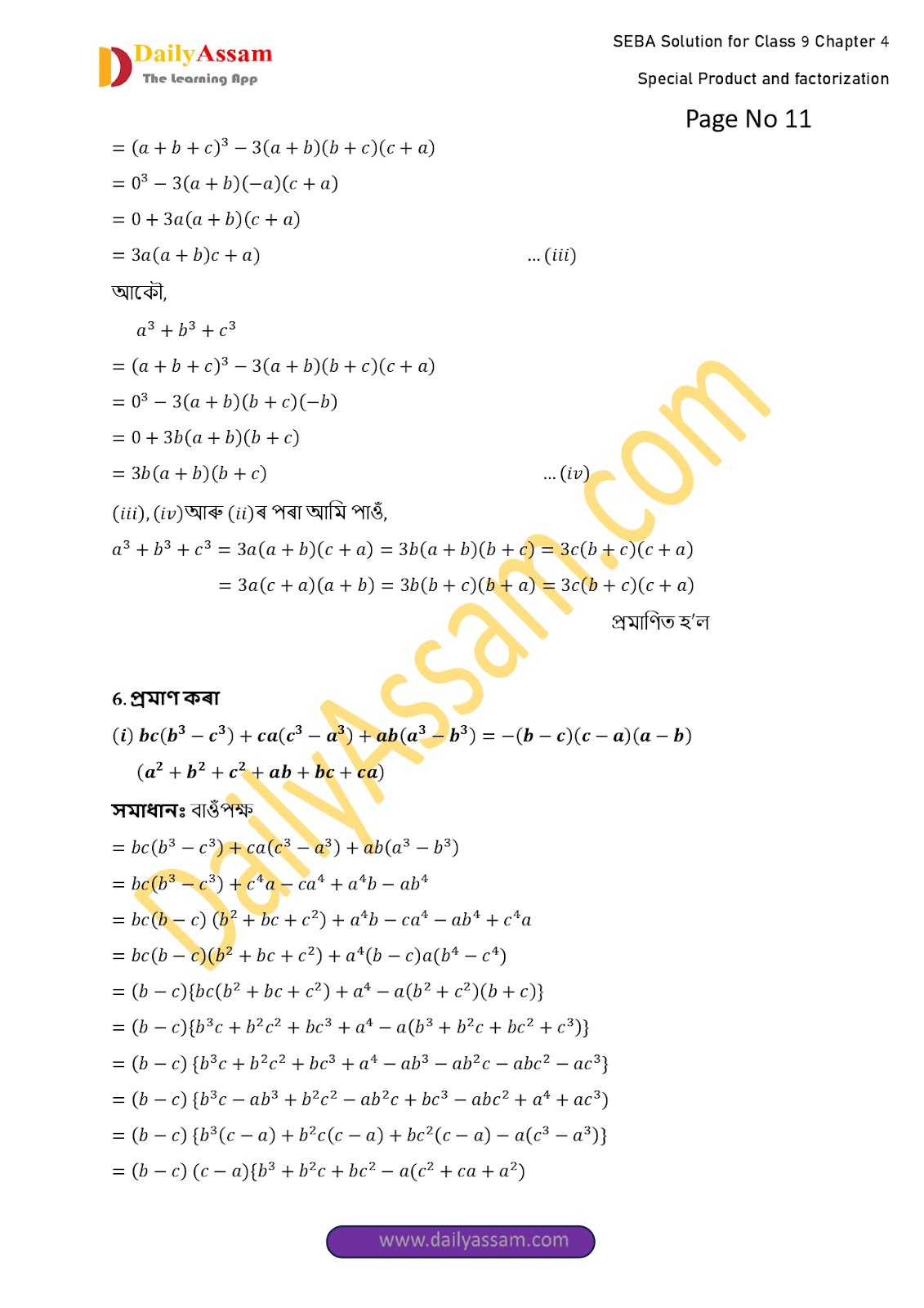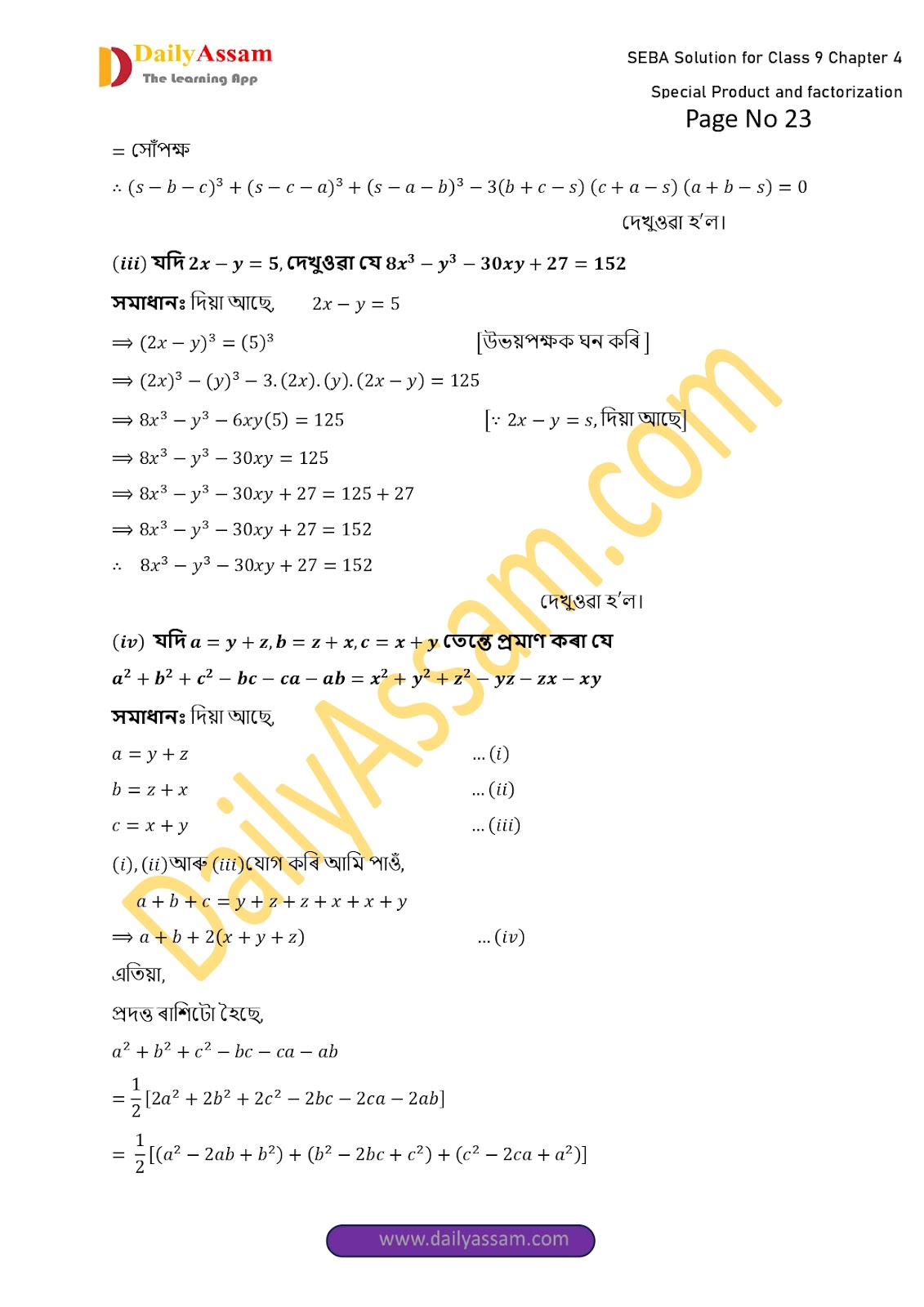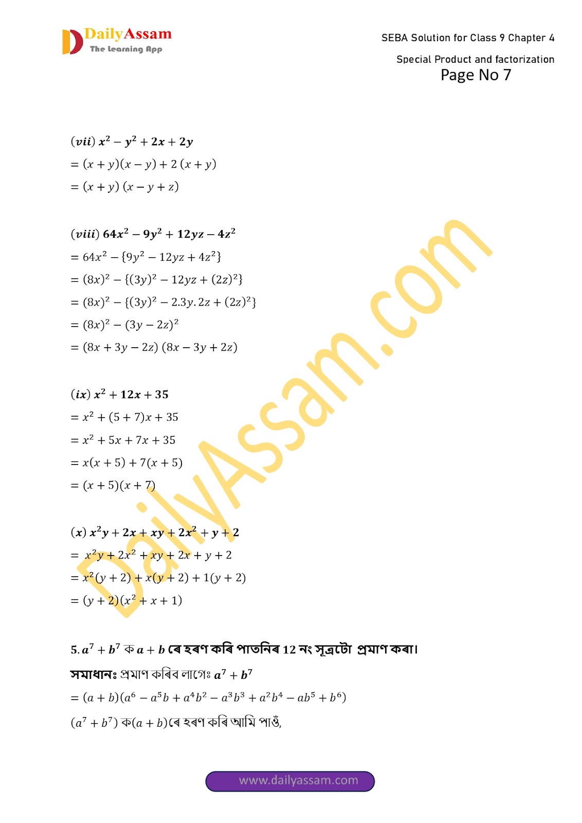 SEBA Class 9 Advanced Mathematics Chapter 4 Solution | Assam Board Class 9 Advanced Mathematics Chapter 4 বিশেষ গুণফল আৰু উৎপাদক বিশ্লেষণ (Special Product and Factorization) Answer | 2025 -2026