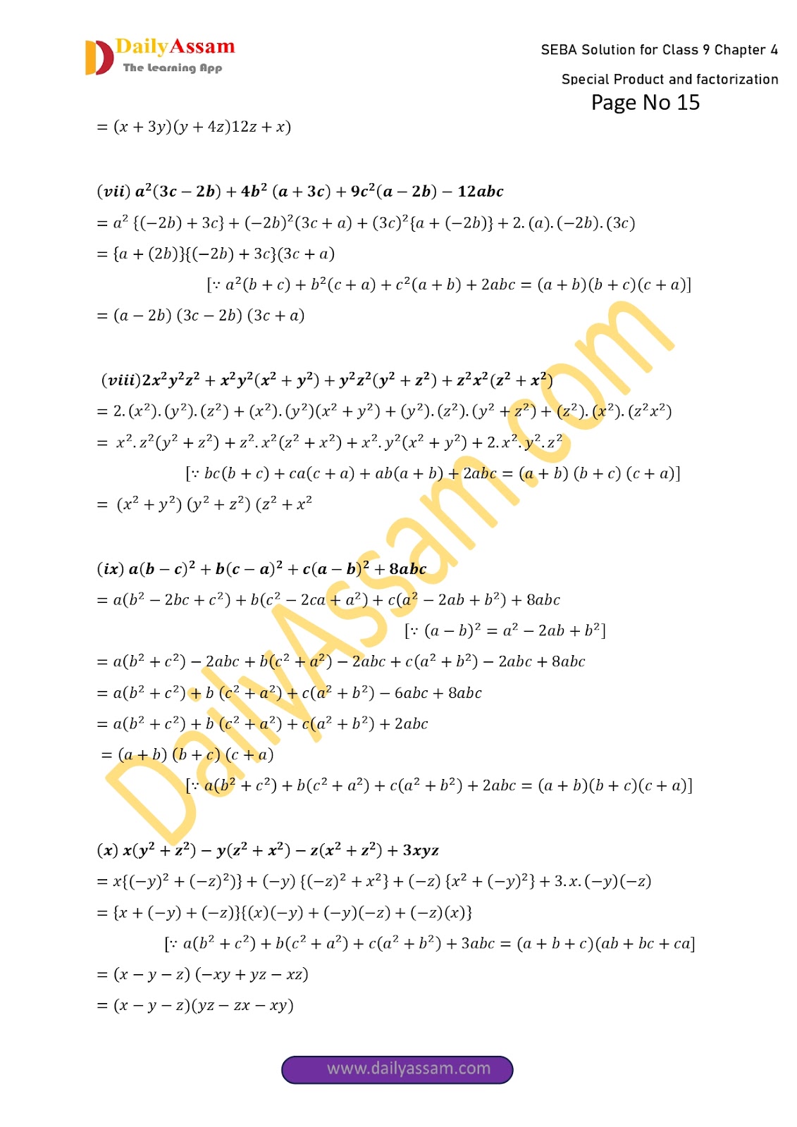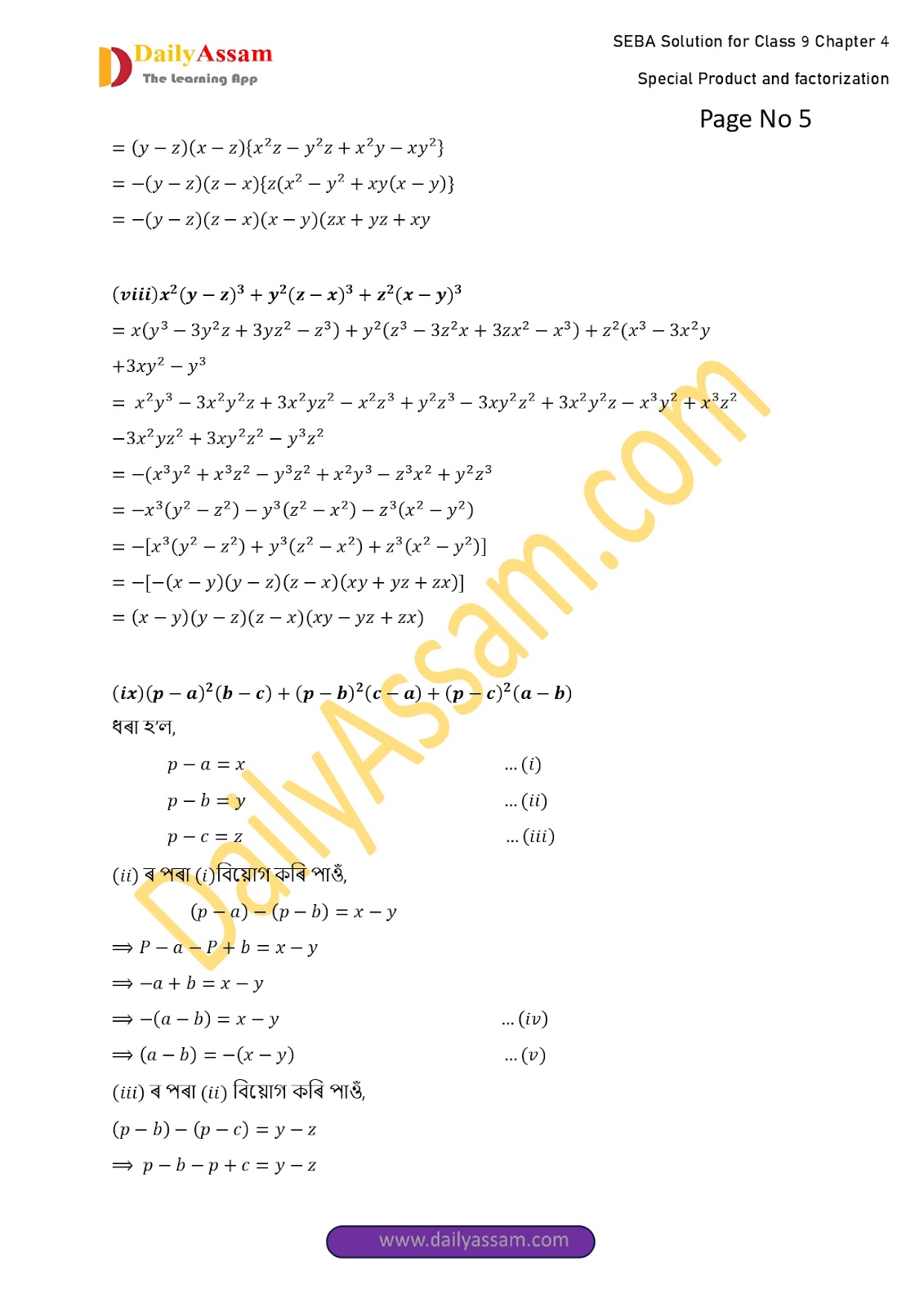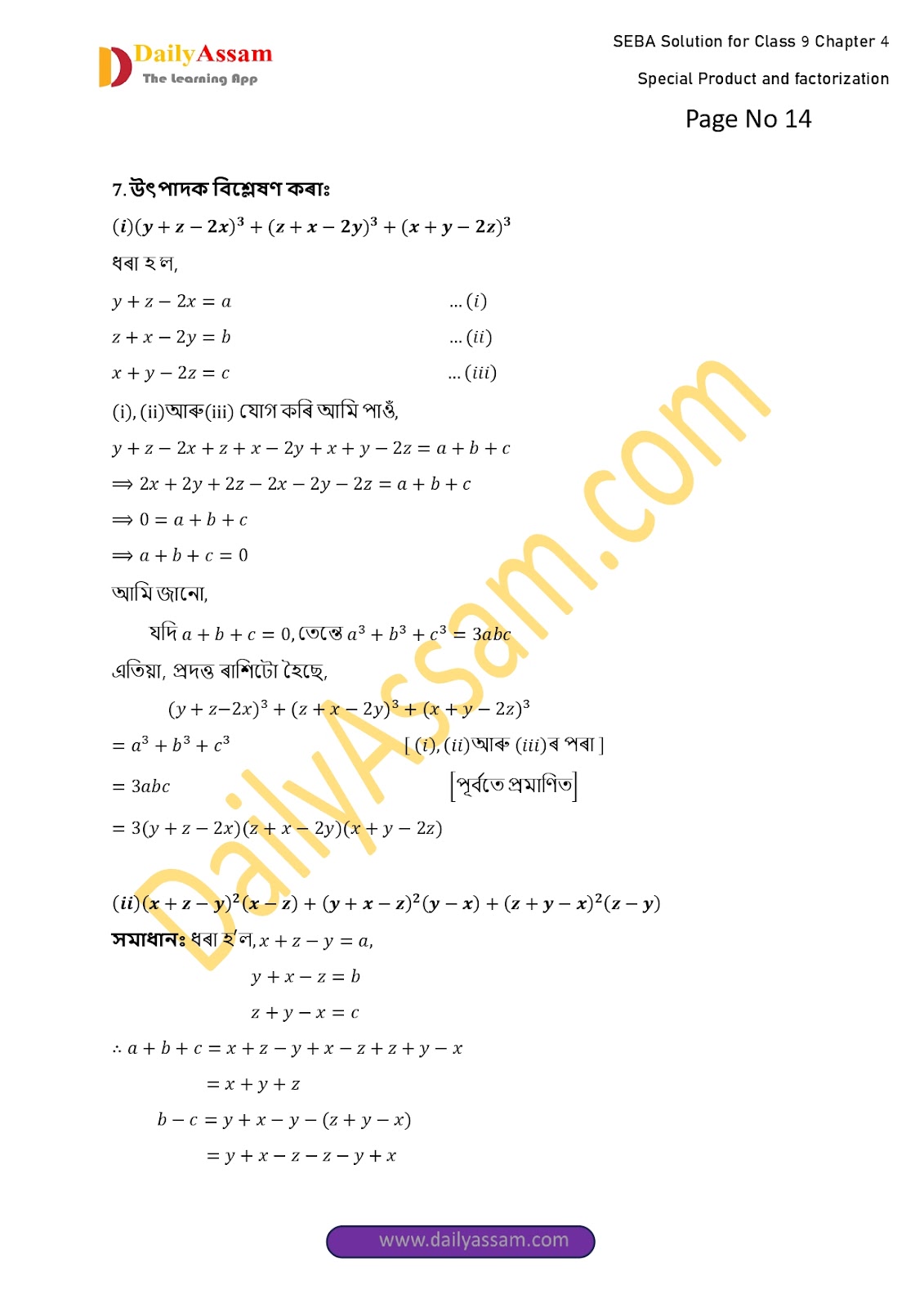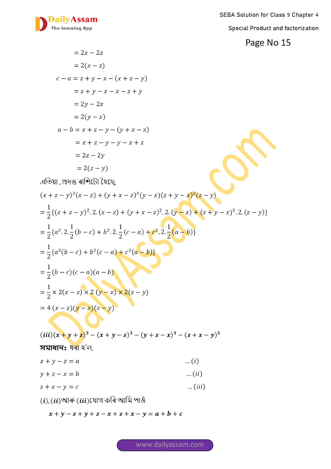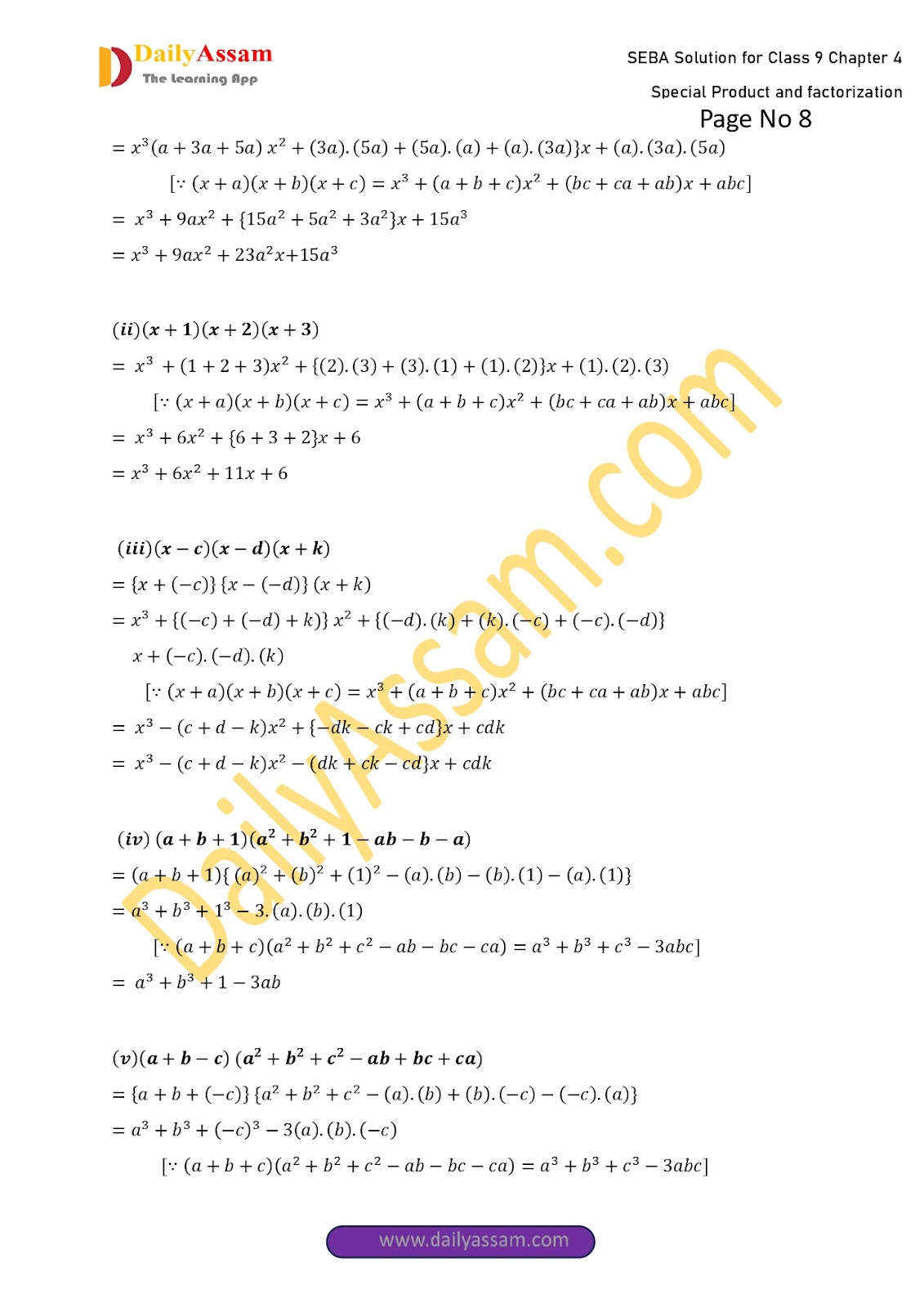 SEBA Class 9 Advanced Mathematics Chapter 4 Solution | Assam Board Class 9 Advanced Mathematics Chapter 4 বিশেষ গুণফল আৰু উৎপাদক বিশ্লেষণ (Special Product and Factorization) Answer | 2025 -2026