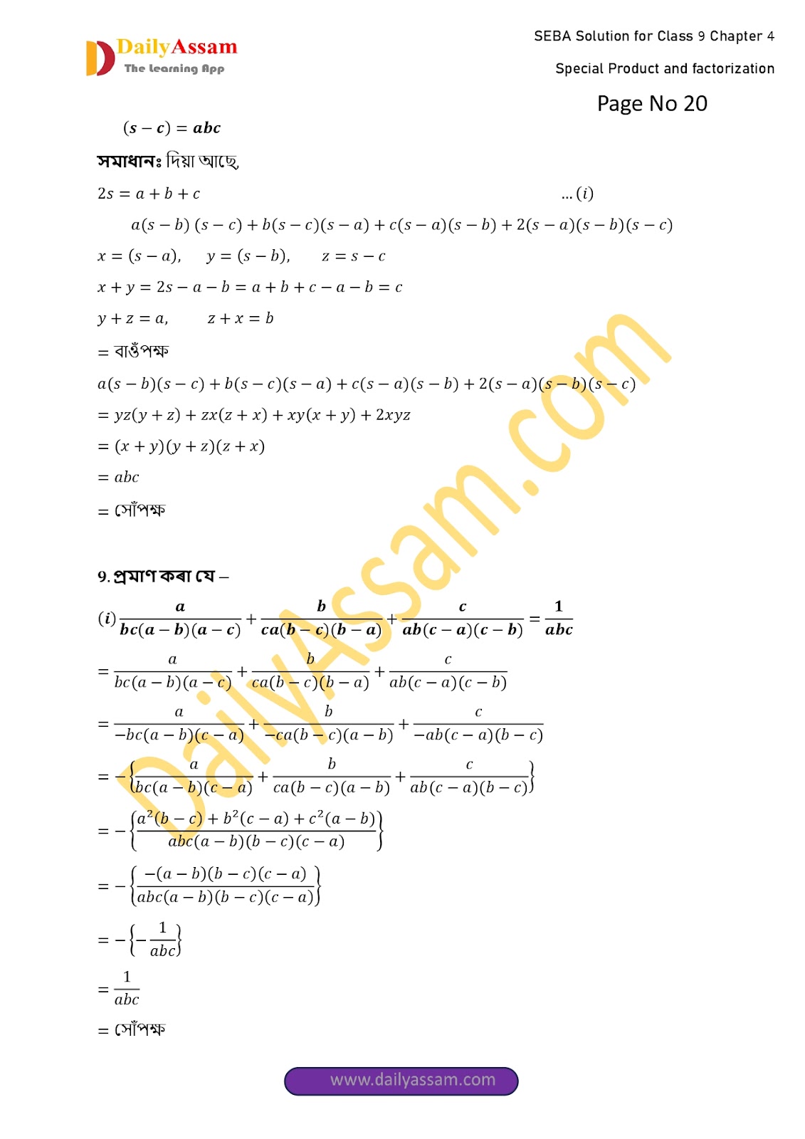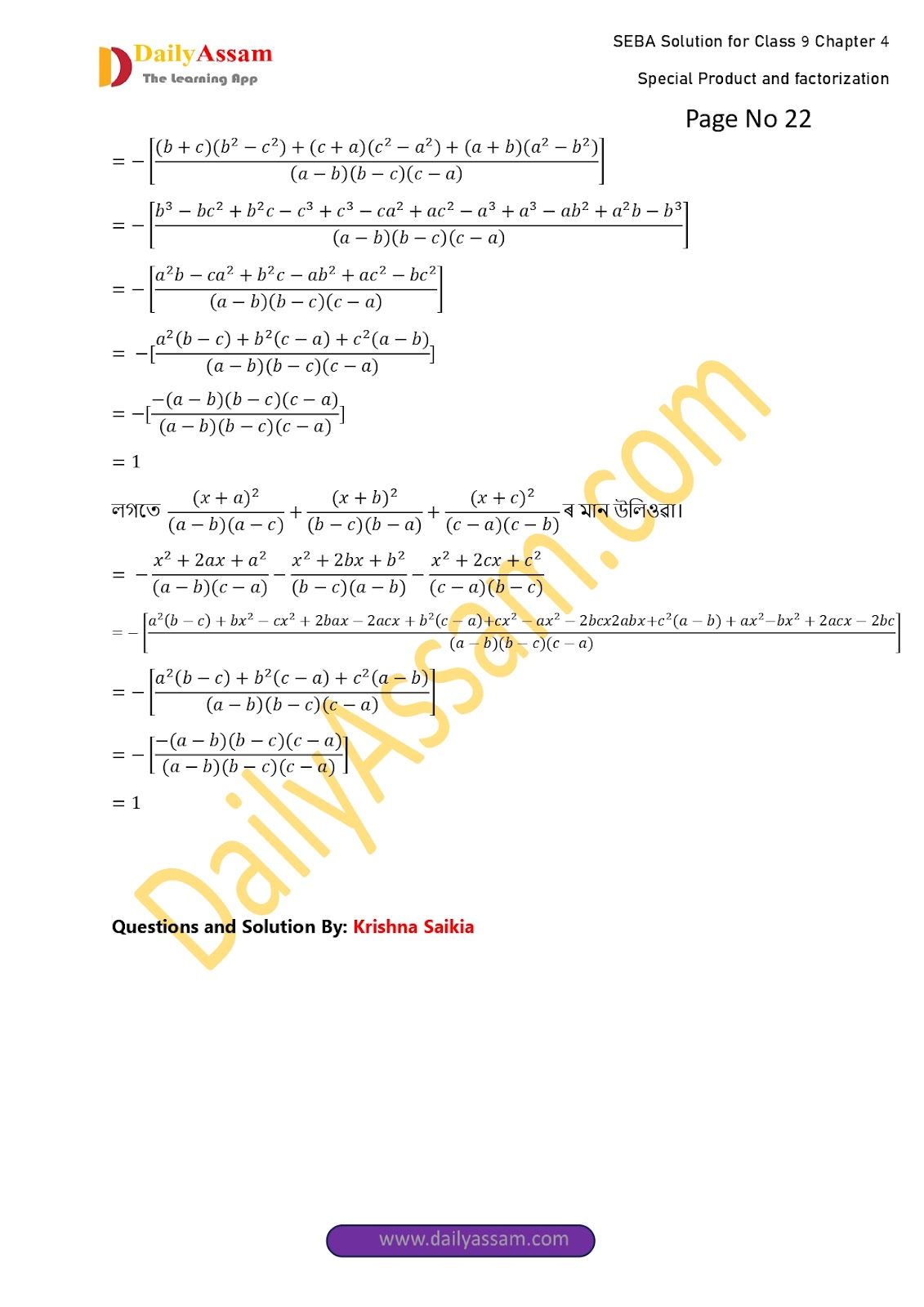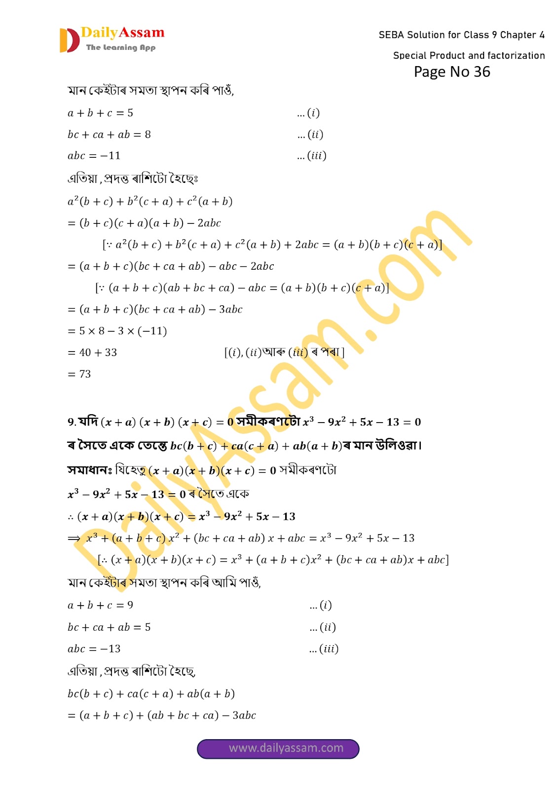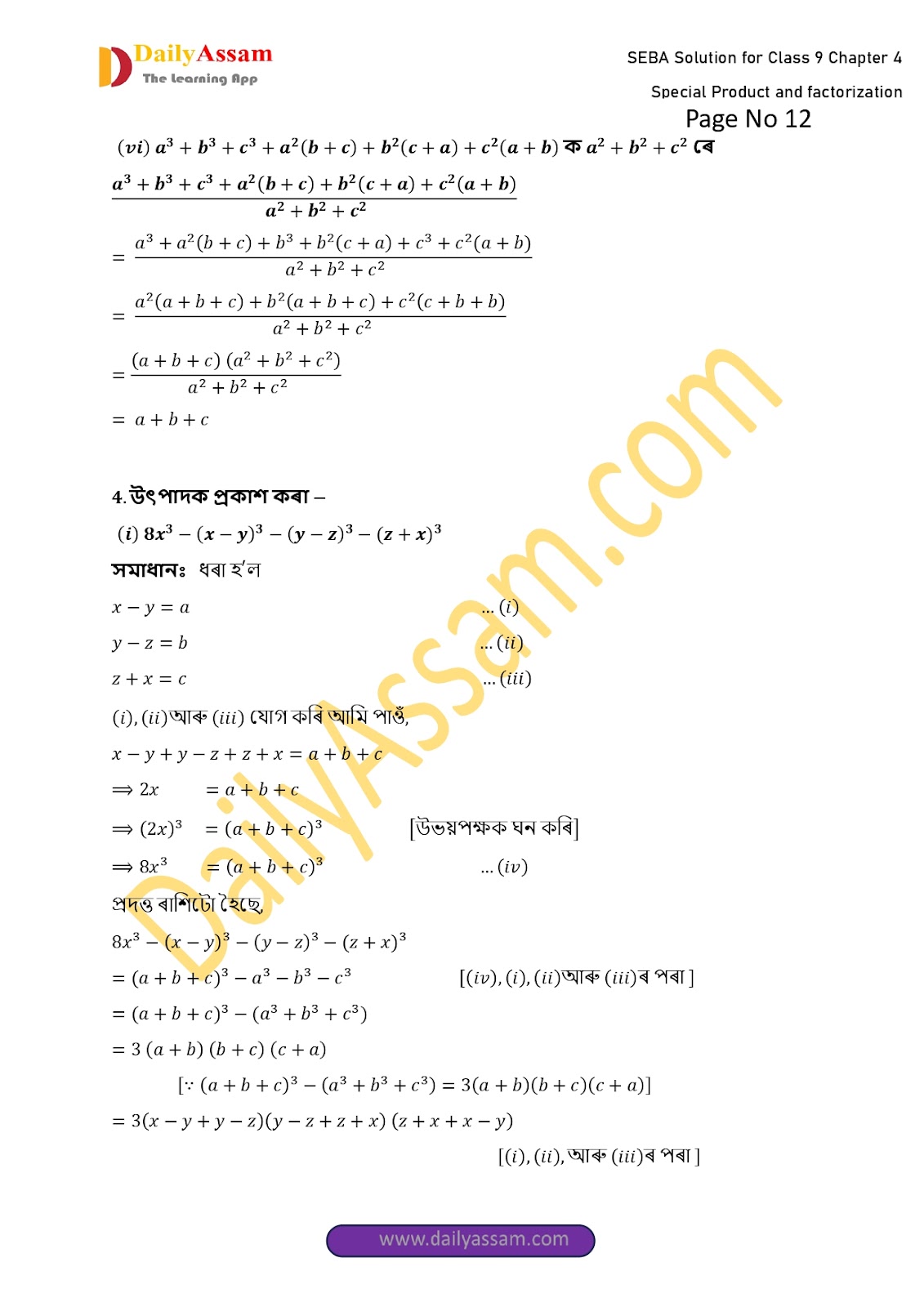 HomeClass 9 Advanced MathsSEBA Class 9 Advanced Mathematics Chapter 4 Solution | Assam Board Class 9 Advanced Mathematics Chapter 4 বিশেষ গুণফল আৰু উৎপাদক বিশ্লেষণ (Special Product and Factorization) Answer | 2025 -2026
