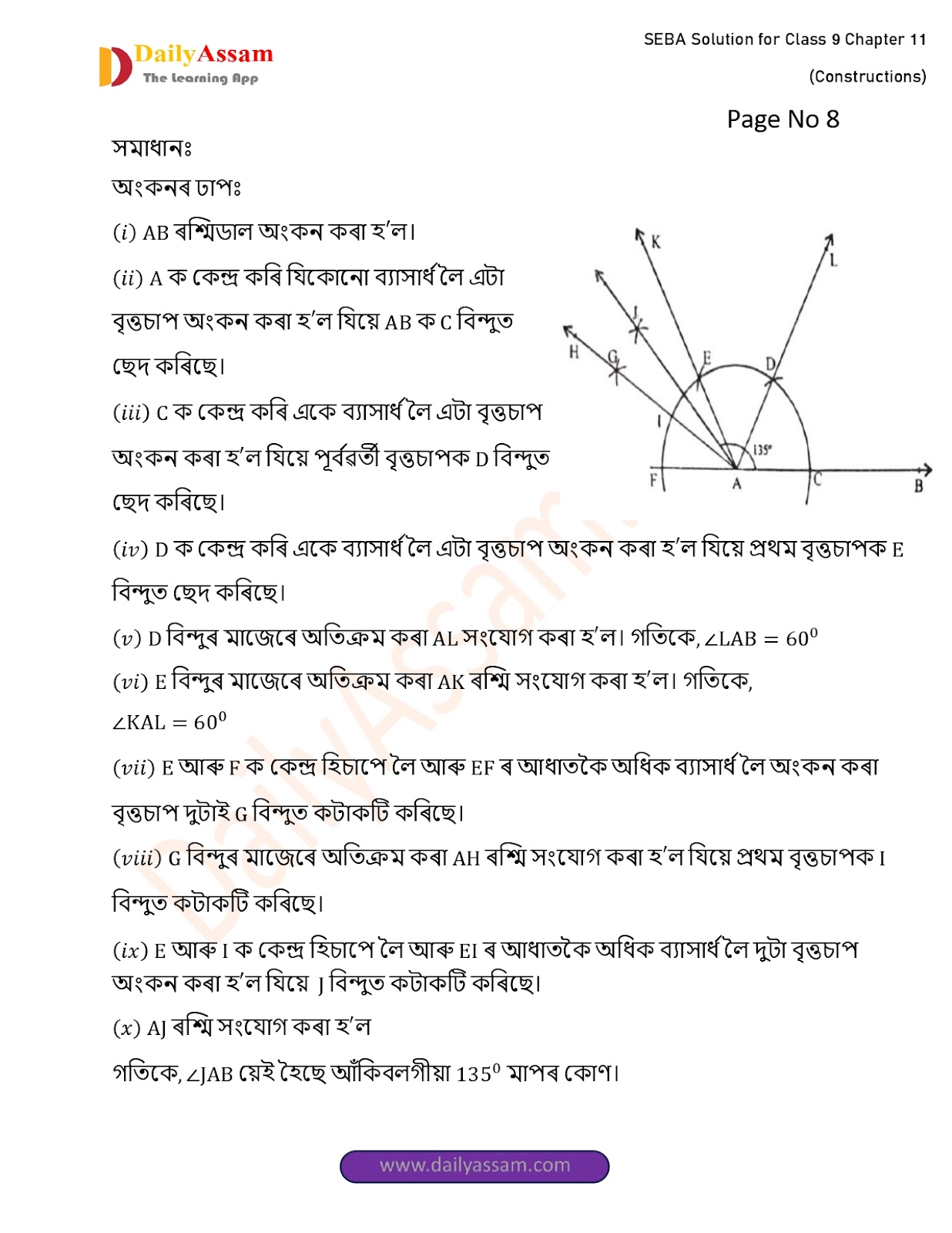 SEBA Class 9 Mathematics Chapter 11 Solution | Assam Board Class 9 Mathematics Chapter 11 অংকন (Constructions) Answer | 2025 -2026