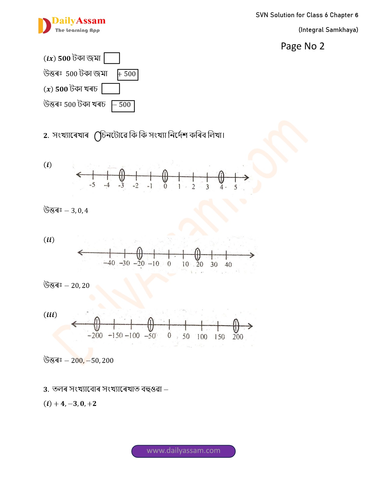 SVN Class 6 Mathematics Chapter 6 Solution | Sankardev Sishu Niketan Class 6 Mathematics Chapter 6 অখণ্ড সংখ্যা (Integer numbers) Answer | 2025 - 2026