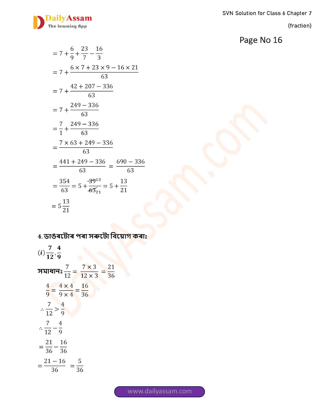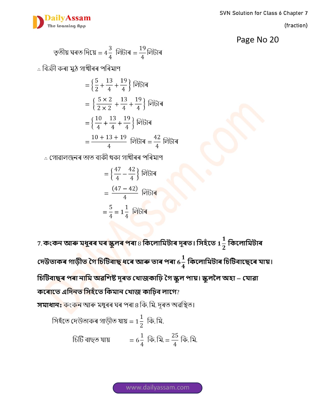 SVN Class 6 Mathematics Chapter 7 Solution | Sankardev Sishu Niketan Class 6 Mathematics Chapter 7 ভগ্নাংশ (Fractions) Answer | 2025 - 2026