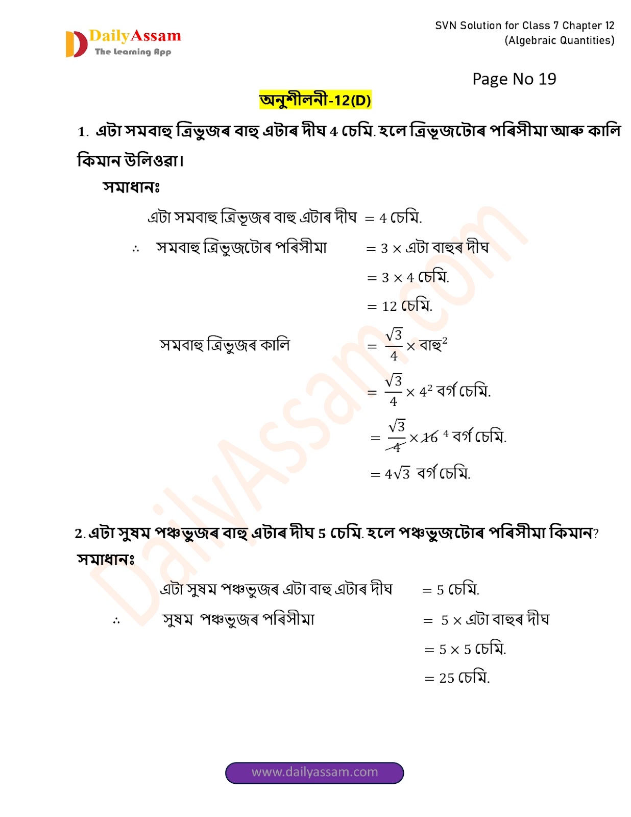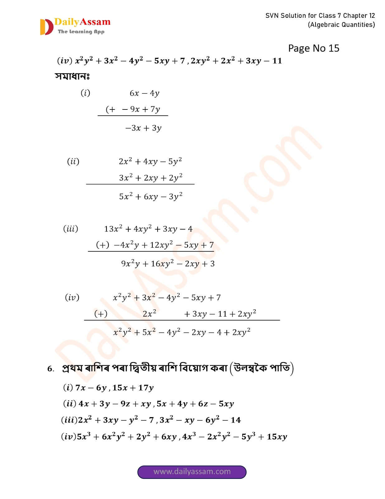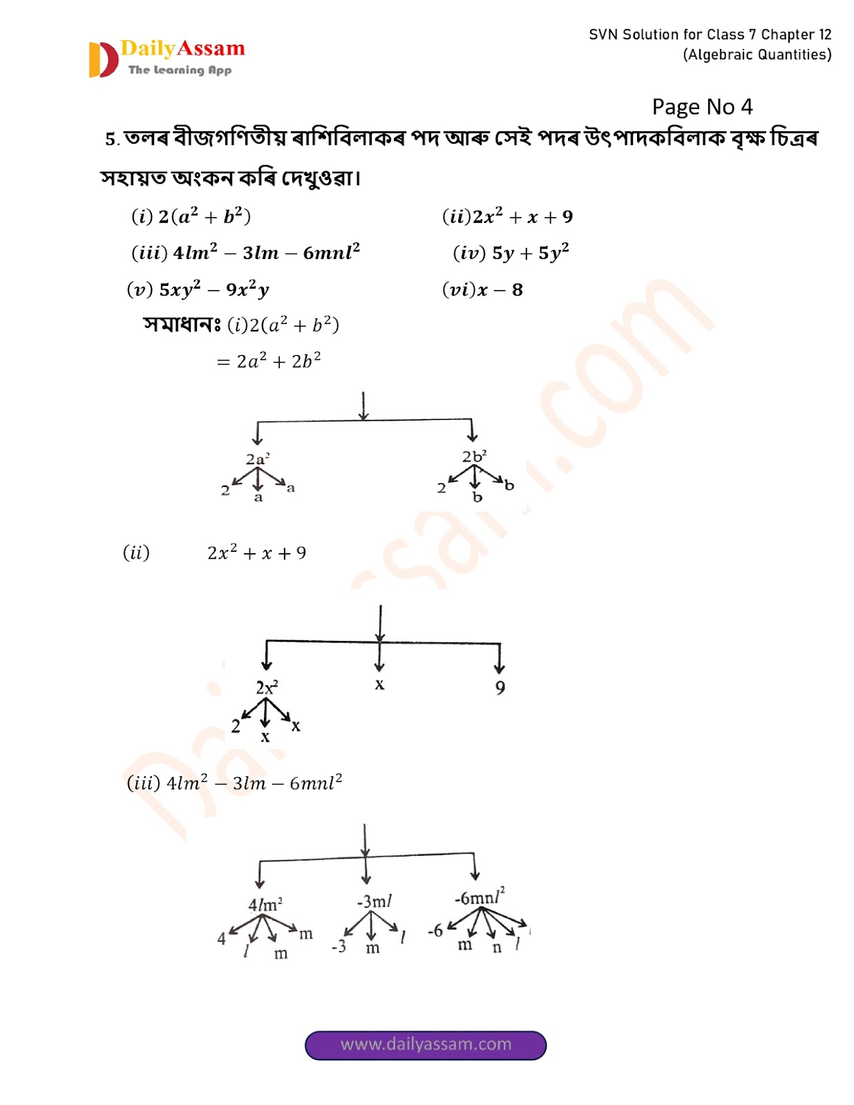 SVN Class 7 Mathematics Chapter 12 Solution | Sankardev Sishu Niketan Class 7 Mathematics Chapter 12 বীজগণিতীয় ৰাশি (Algebraic expression) Answer | 2025 - 2026