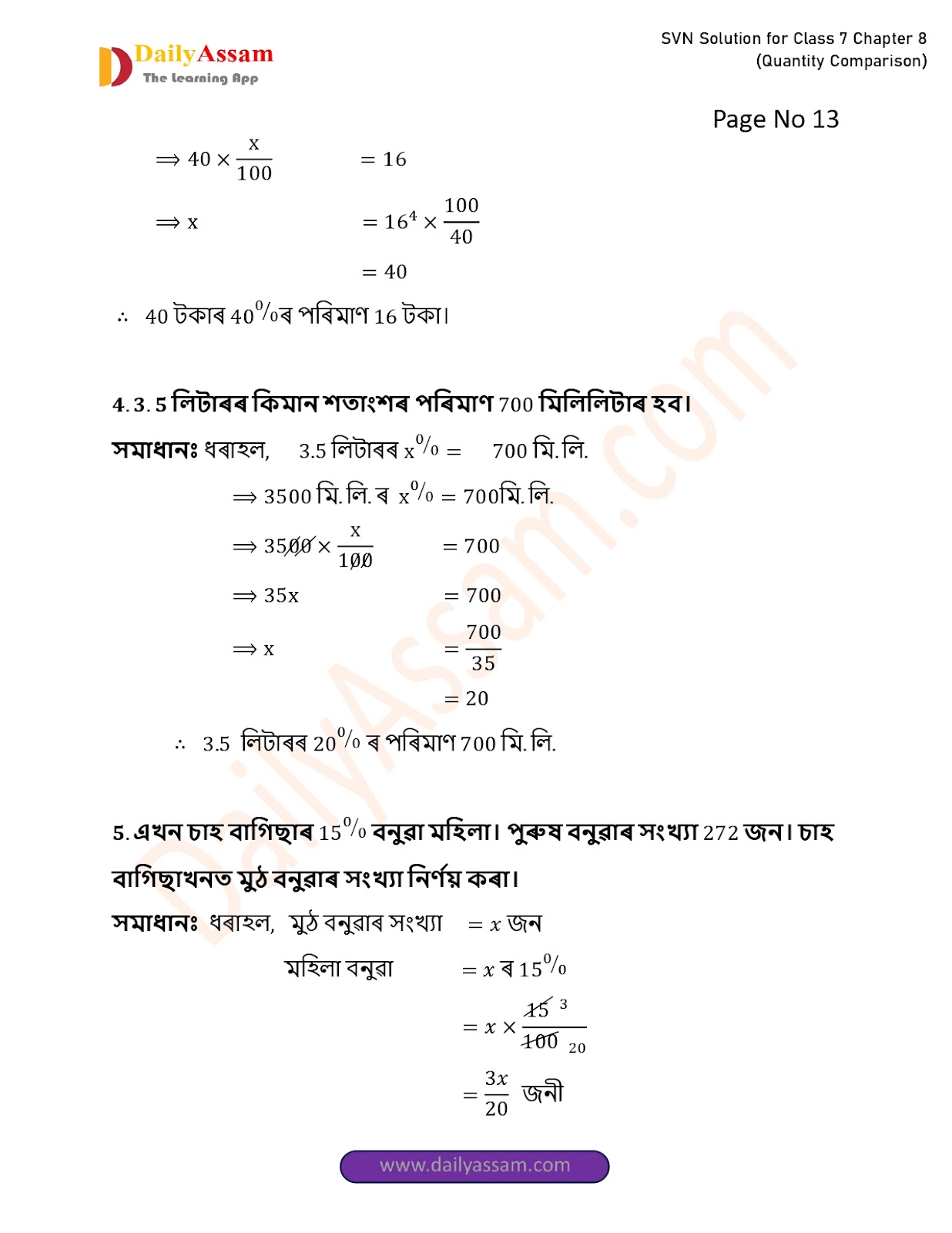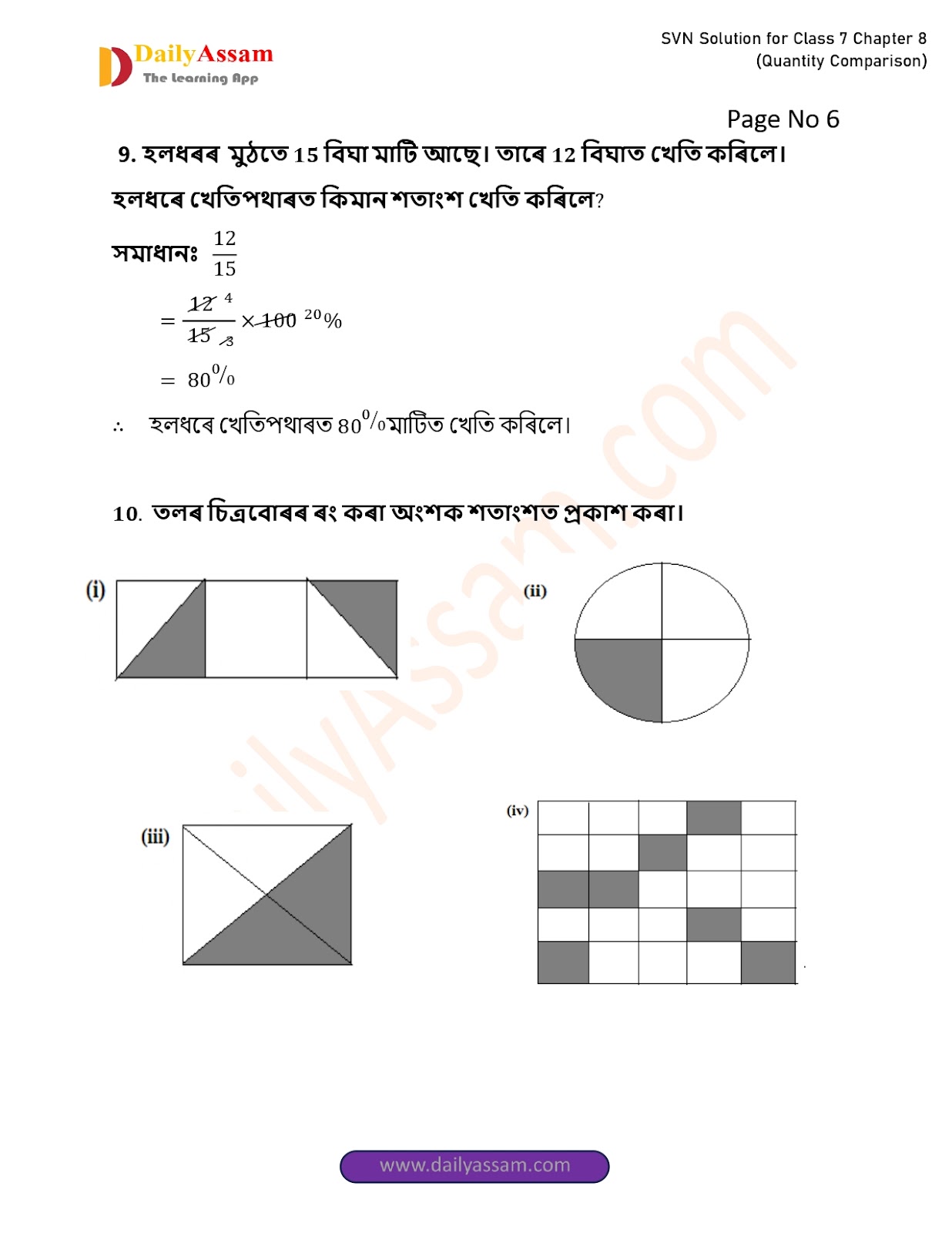 SVN Class 7 Mathematics Chapter 8 Solution | Sankardev Sishu Niketan Class 7 Mathematics Chapter 8 পৰিমাণৰ তুলনা (Comparison of quantities) Answer | 2025 - 2026