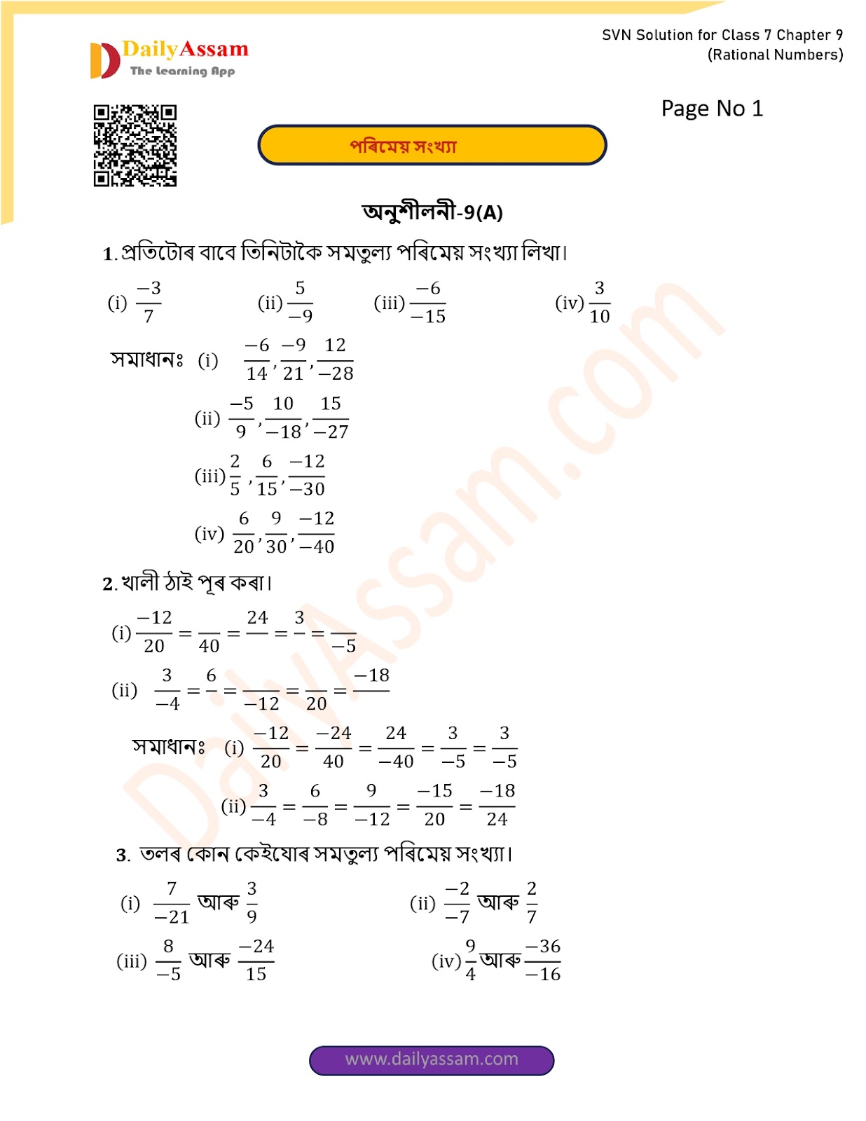 HomeClass 7 Maths Sankardev 144SVN Class 7 Mathematics Chapter 9 Solution | Sankardev Sishu Niketan Class 7 Mathematics Chapter 9 পৰিমেয় সংখ্য়া (Decimal number) Answer | 2025 - 2026