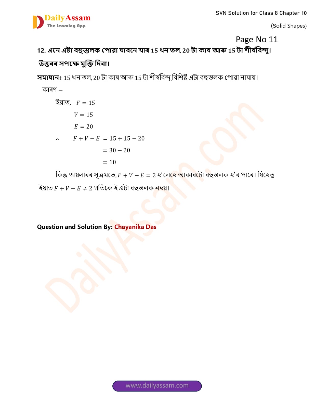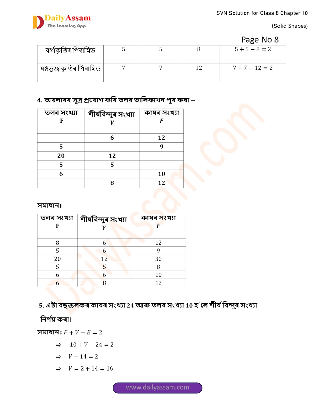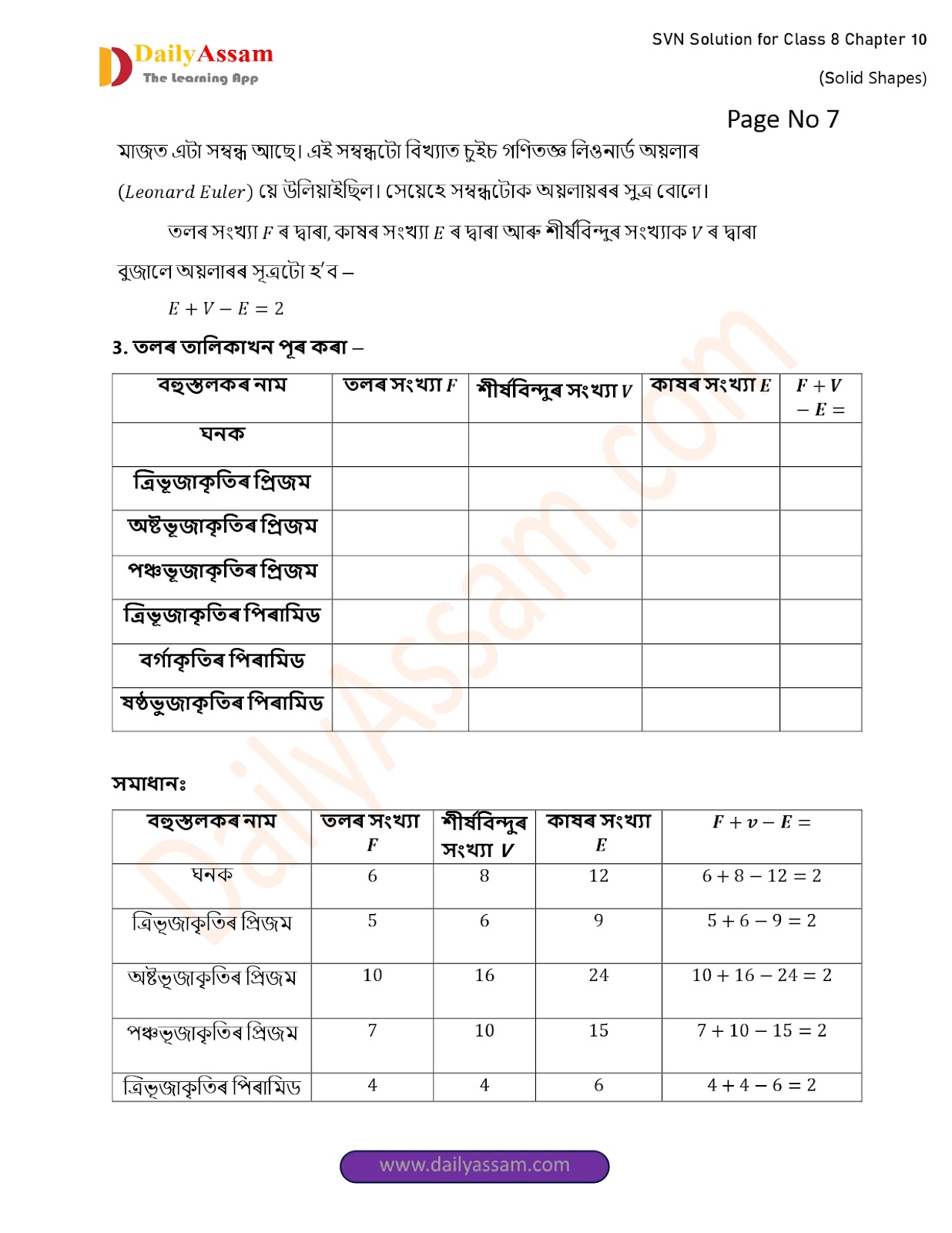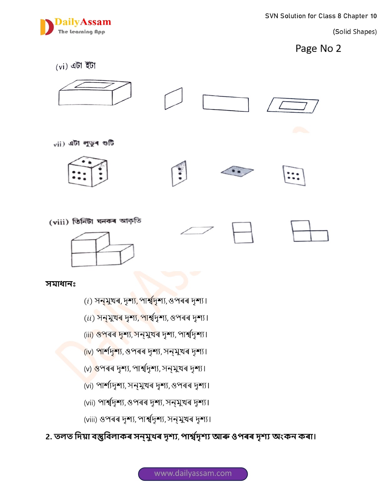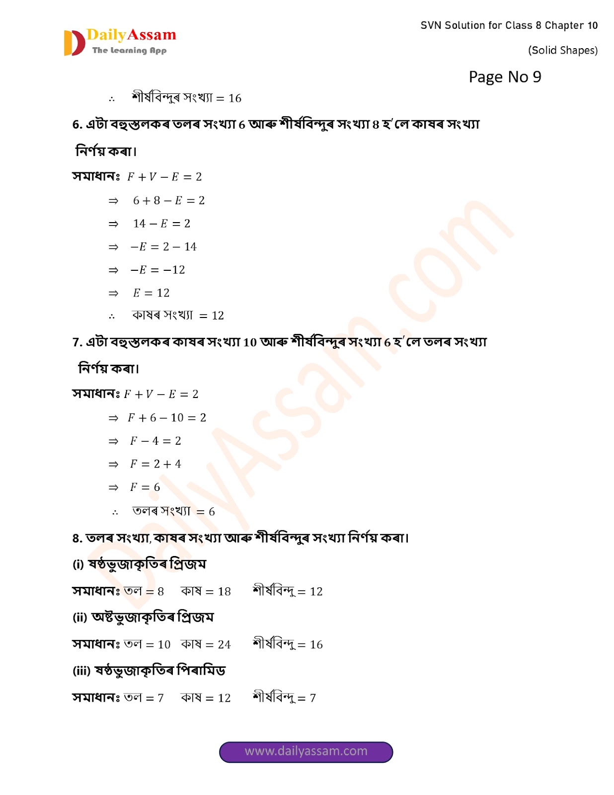 SVN Class 8 Mathematics Chapter 10 Solution | Sankardev Sishu Niketan Class 8 Mathematics Chapter 10 গোটা আকৃতি (The whole shape) Answer | 2025 - 2026