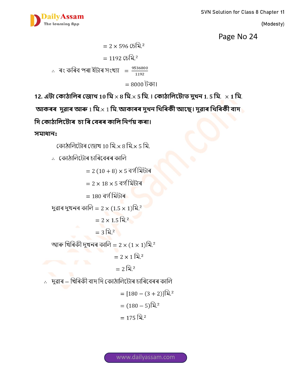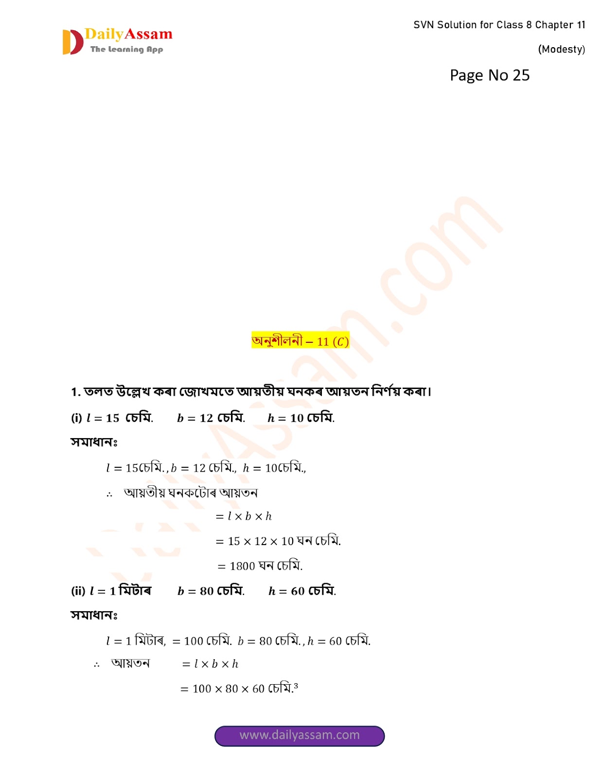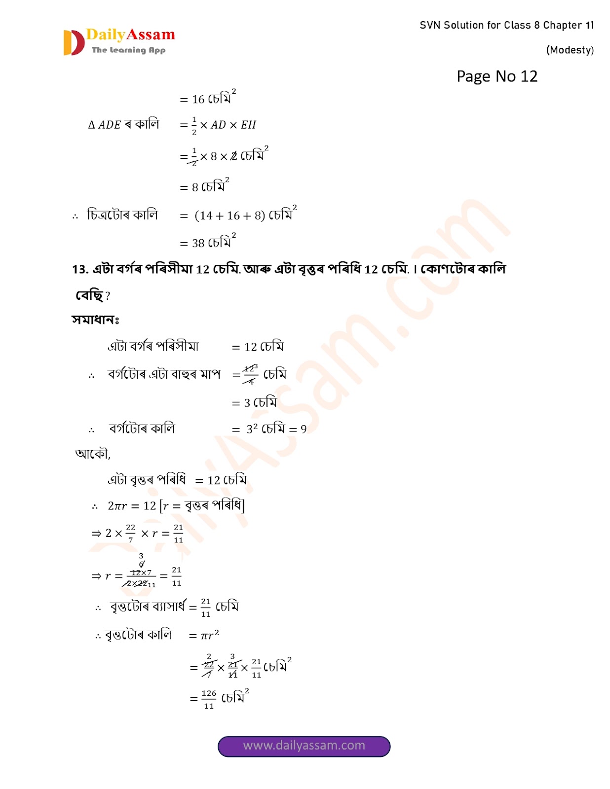 SVN Class 8 Mathematics Chapter 11 Solution | Sankardev Sishu Niketan Class 8 Mathematics Chapter 11 পৰিমিতি (Perimeter) Answer | 2025 - 2026