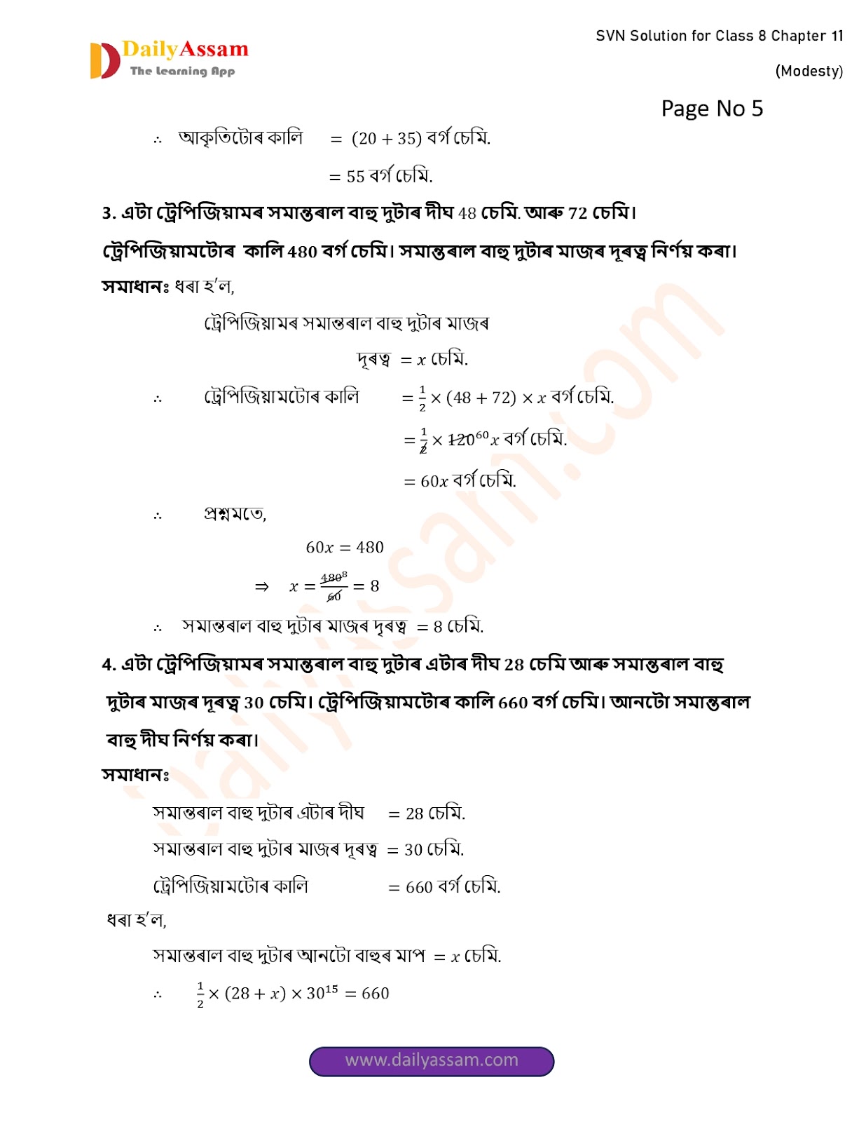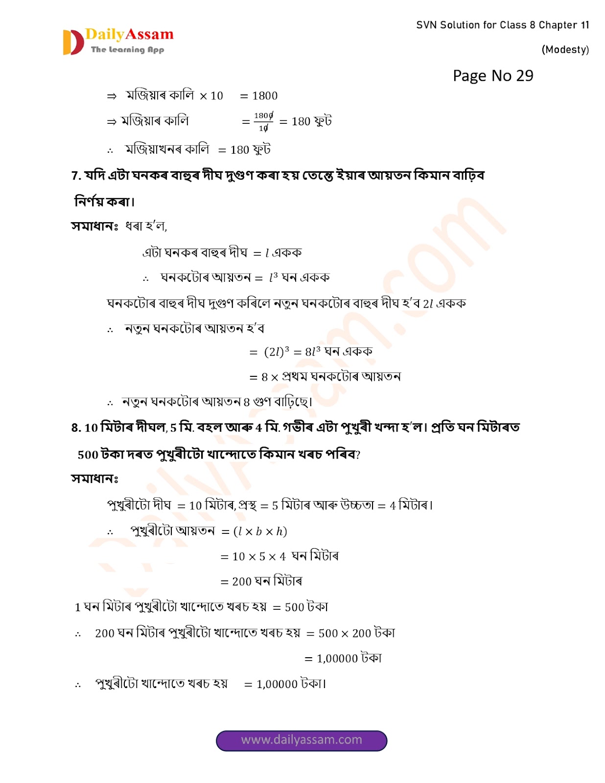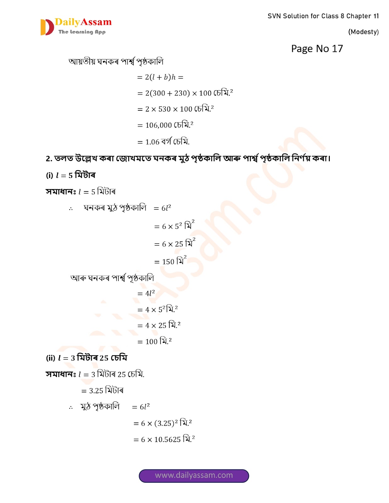 SVN Class 8 Mathematics Chapter 11 Solution | Sankardev Sishu Niketan Class 8 Mathematics Chapter 11 পৰিমিতি (Perimeter) Answer | 2025 - 2026