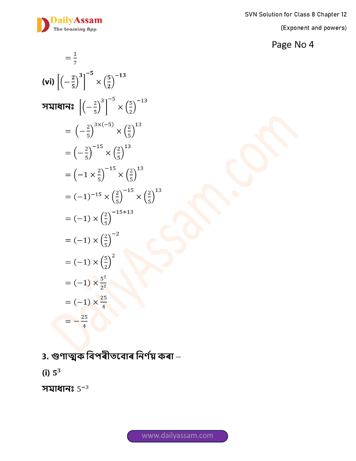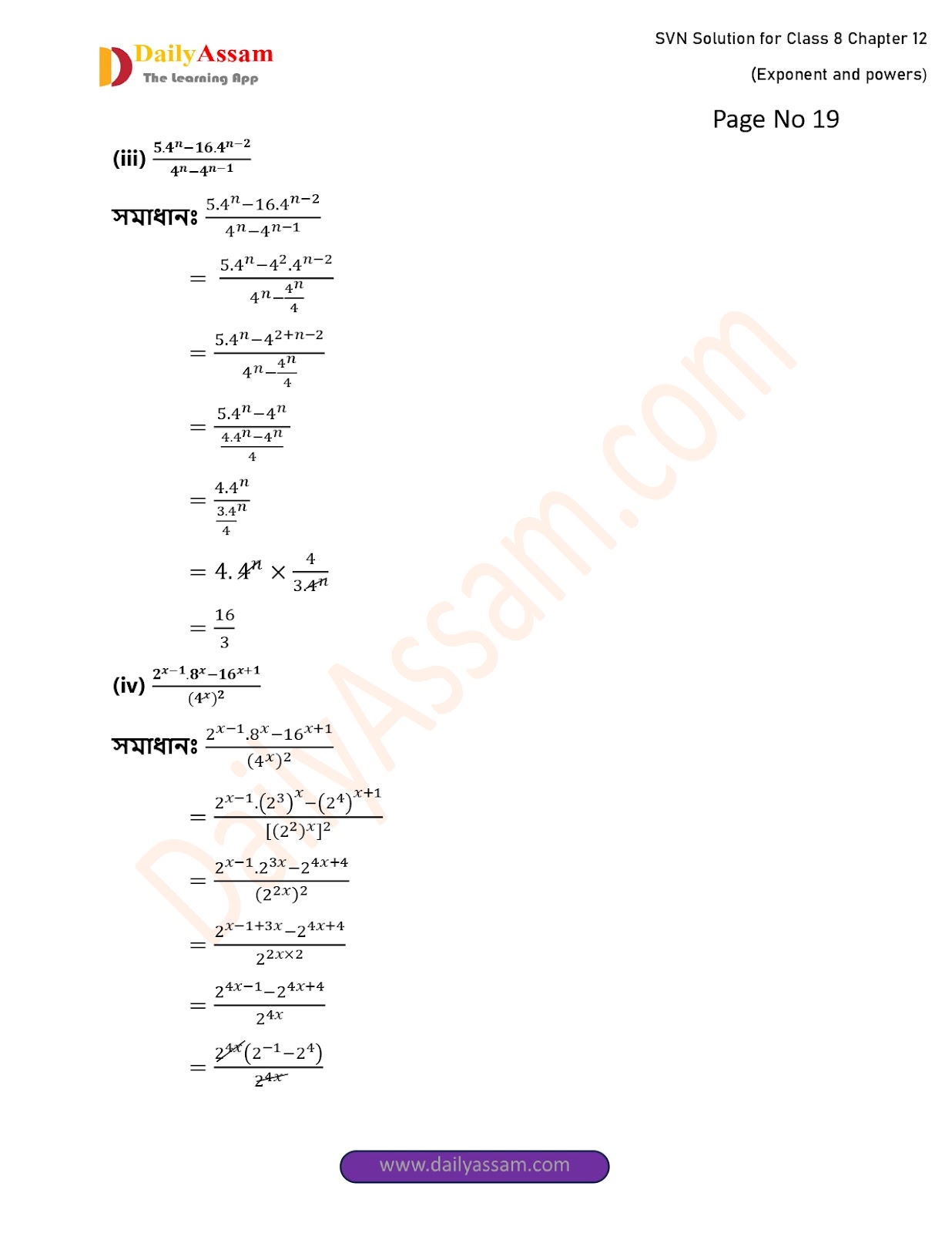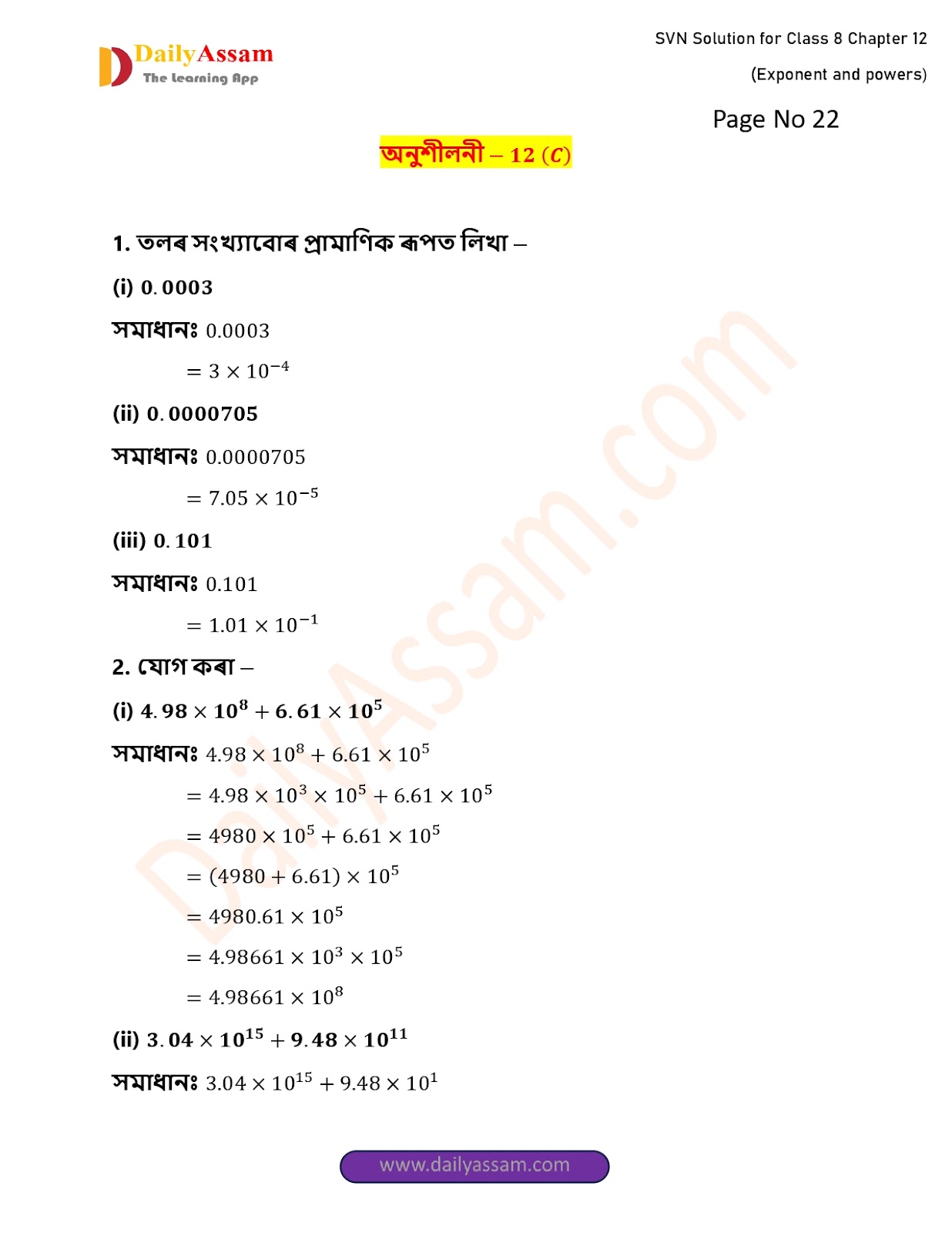SVN Class 8 Mathematics Chapter 12 Solution | Sankardev Sishu Niketan Class 8 Mathematics Chapter 12 সূচক আৰু ঘাত (Exponents and Exponents) Answer | 2025 - 2026