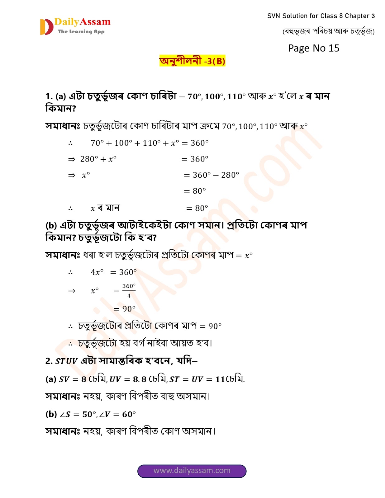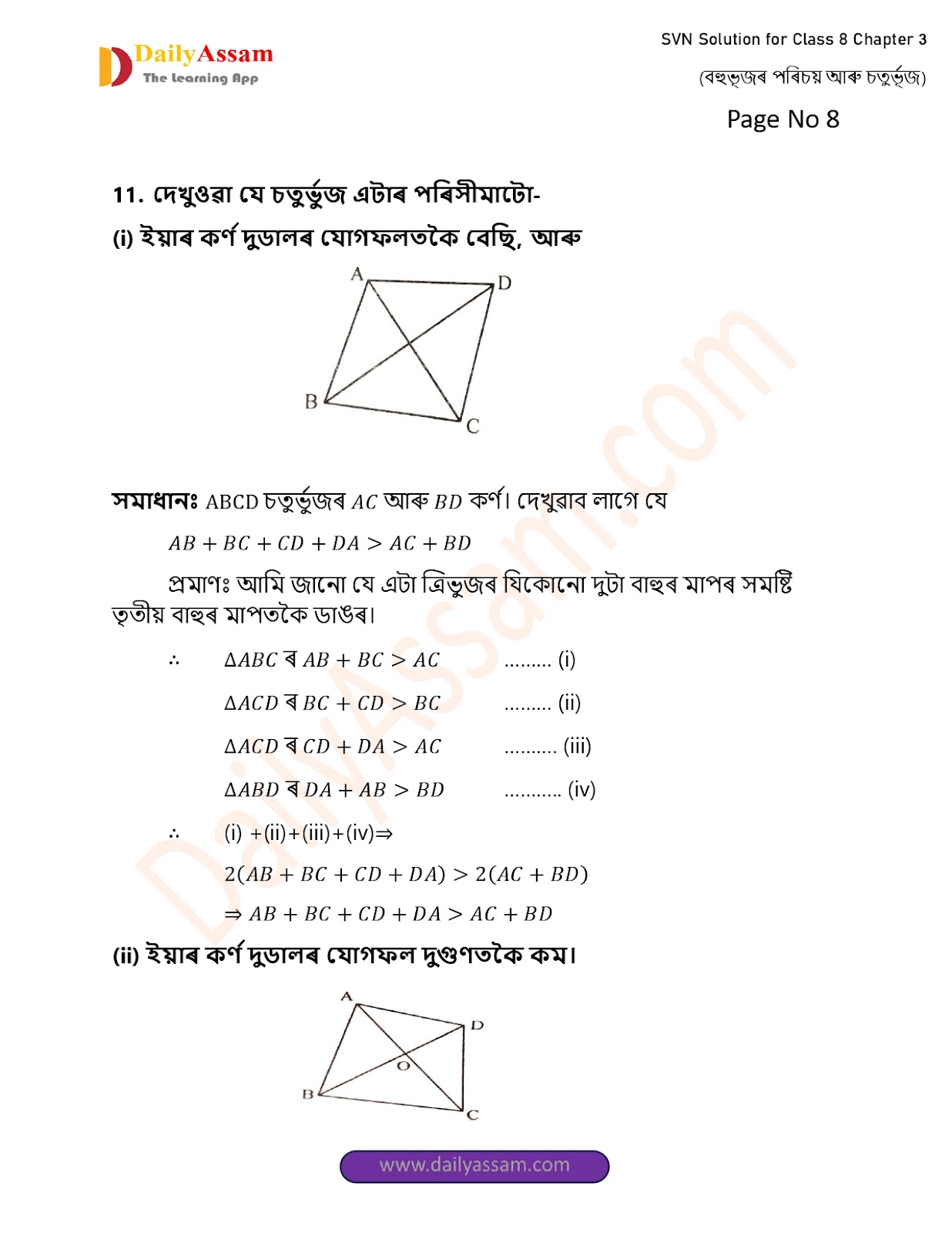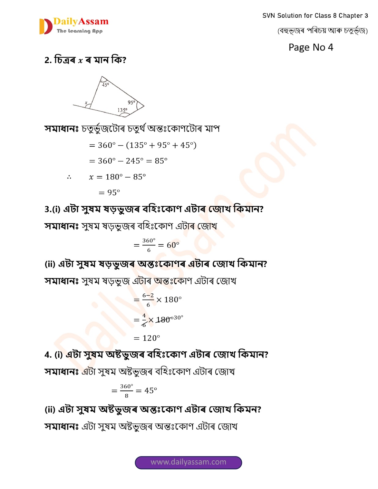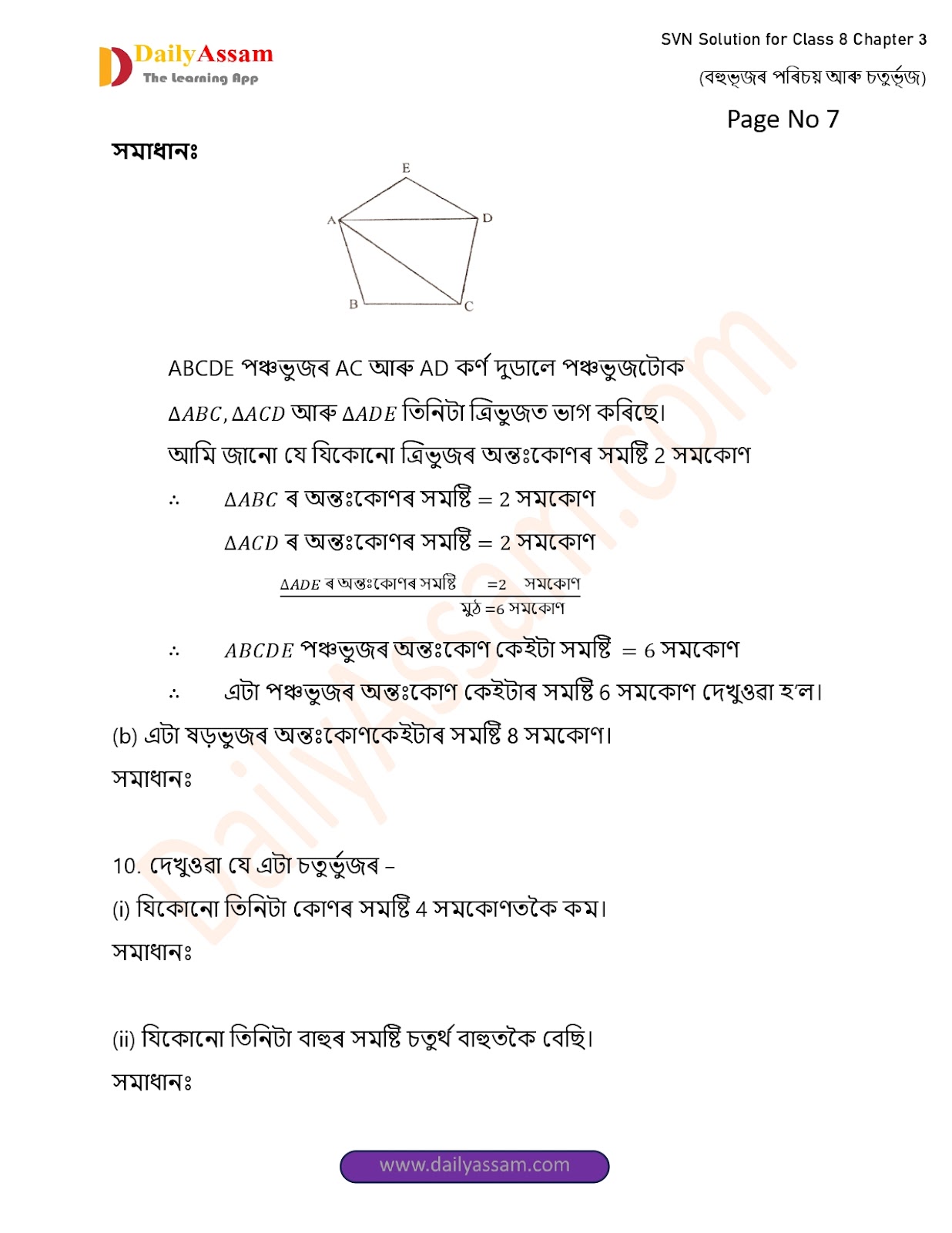SVN Class 8 Mathematics Chapter 3 Solution | Sankardev Sishu Niketan Class 8 Mathematics Chapter 3 বহুভুজৰ পৰিচয় আৰু চতুৰ্ভুজ (Introduction to Polygons and Quadrilaterals) Answer | 2025 - 2026