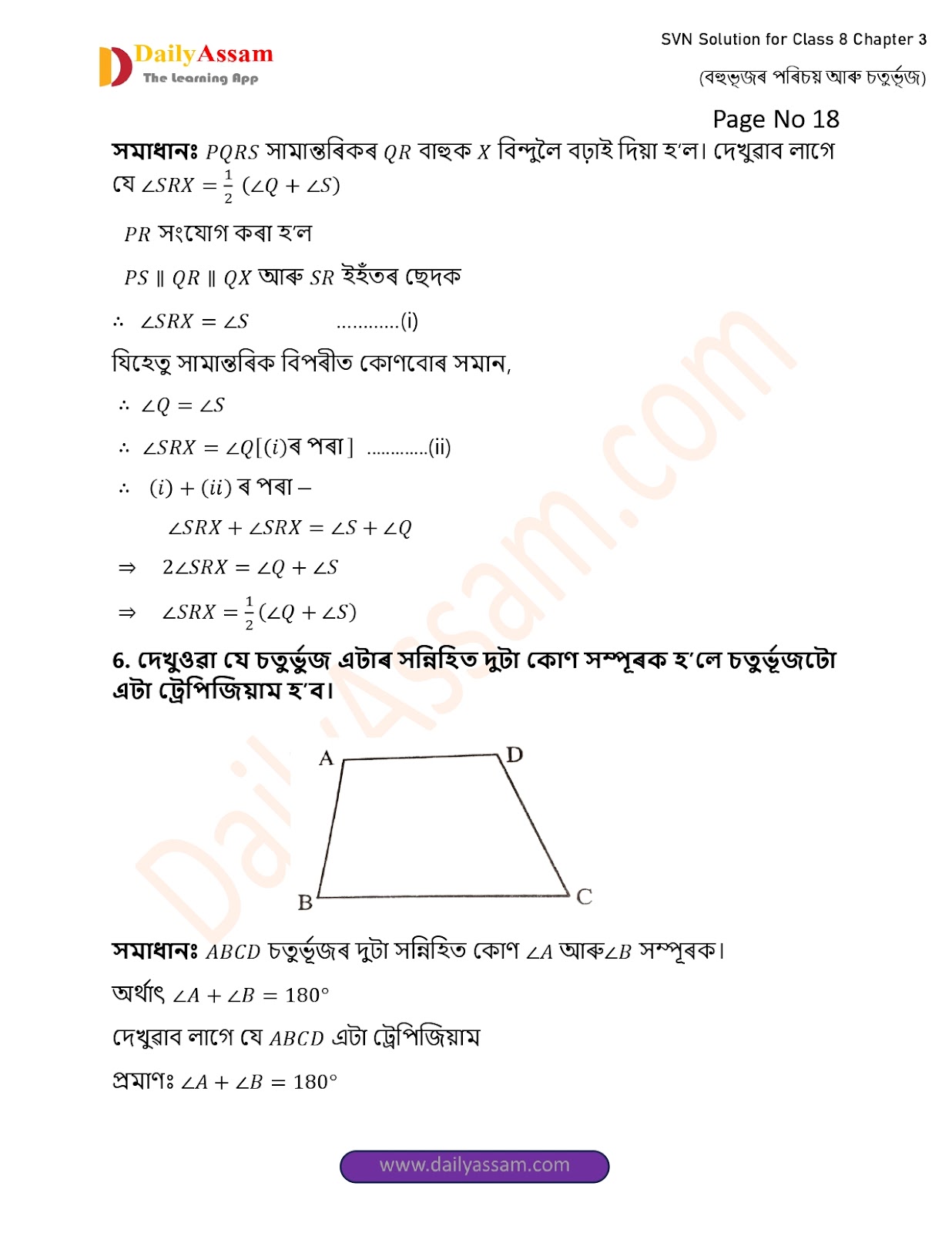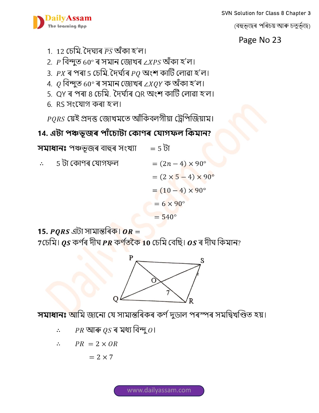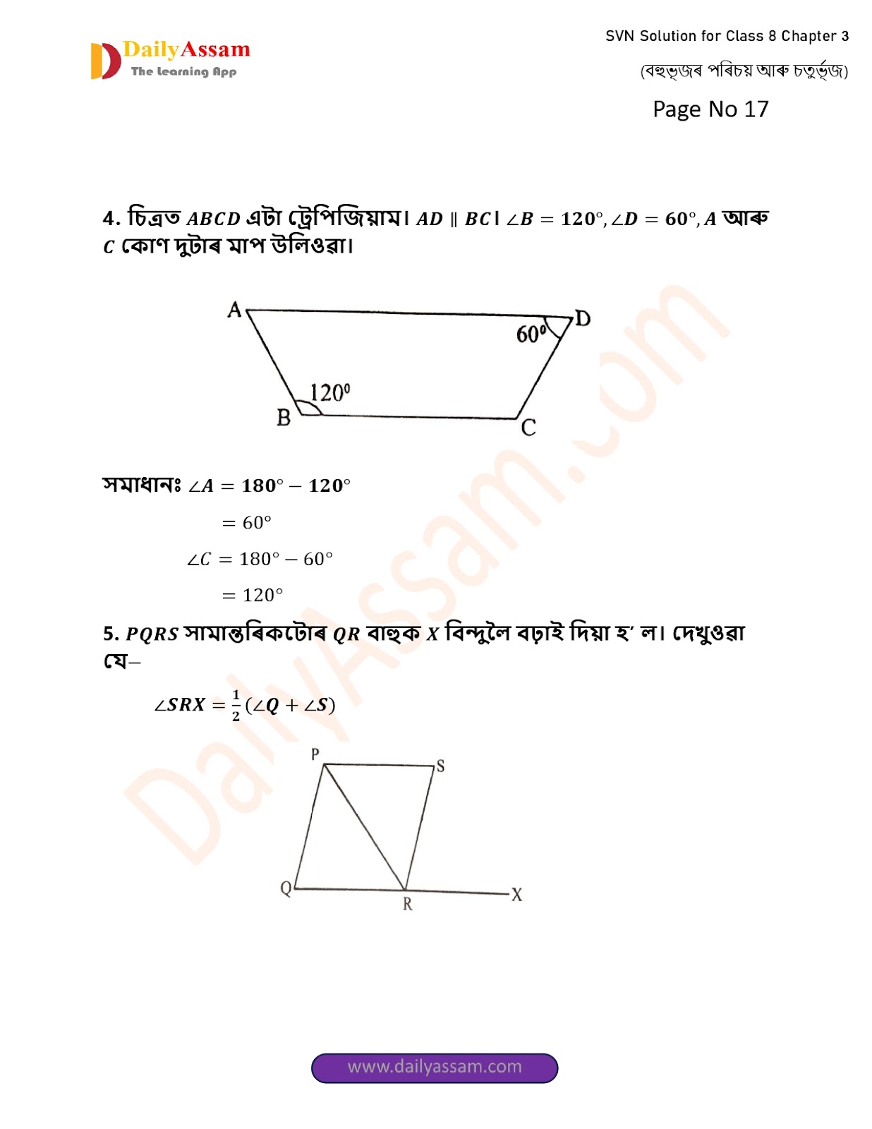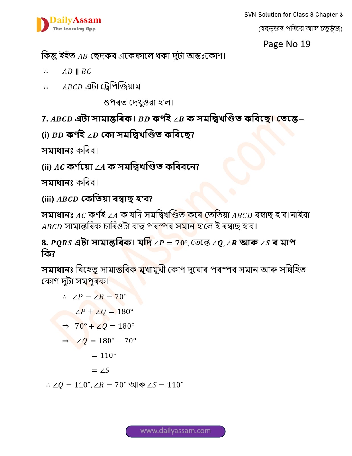 SVN Class 8 Mathematics Chapter 3 Solution | Sankardev Sishu Niketan Class 8 Mathematics Chapter 3 বহুভুজৰ পৰিচয় আৰু চতুৰ্ভুজ (Introduction to Polygons and Quadrilaterals) Answer | 2025 - 2026