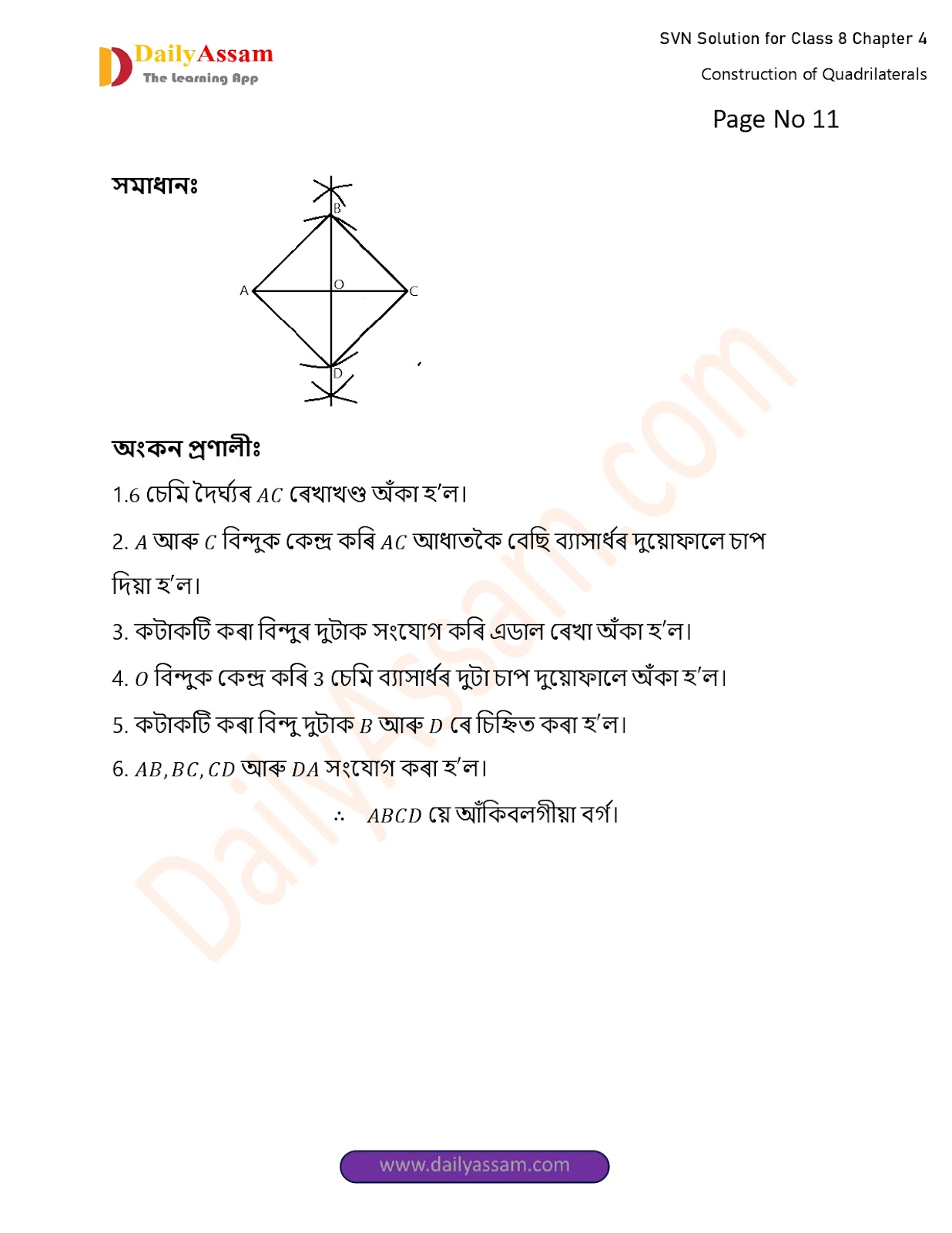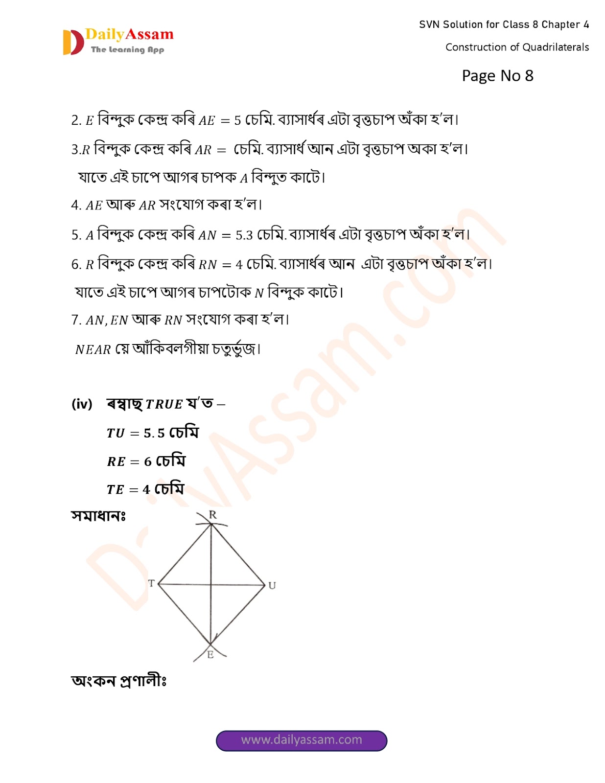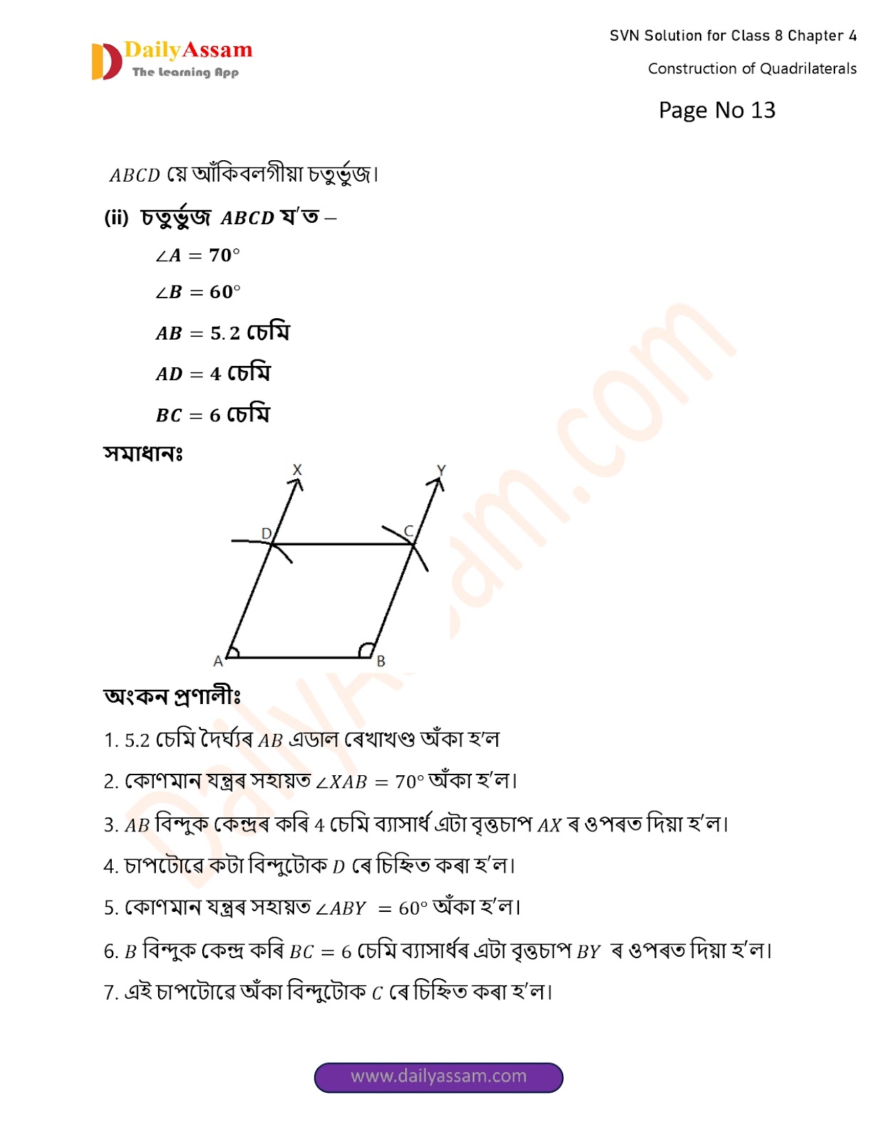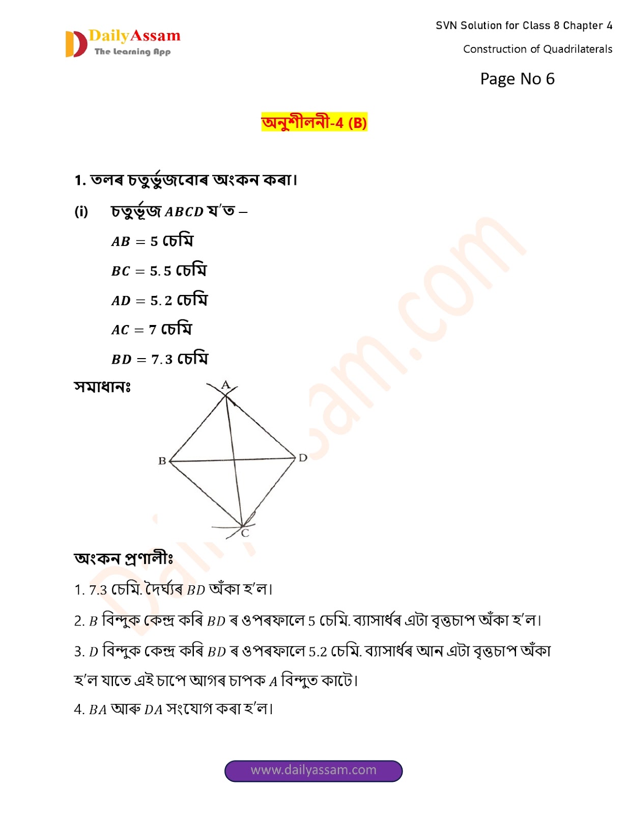 SVN Class 8 Mathematics Chapter 4 Solution | Sankardev Sishu Niketan Class 8 Mathematics Chapter 4 চতুৰ্ভুজ অংকন (Drawing quadrilaterals) Answer | 2025 - 2026