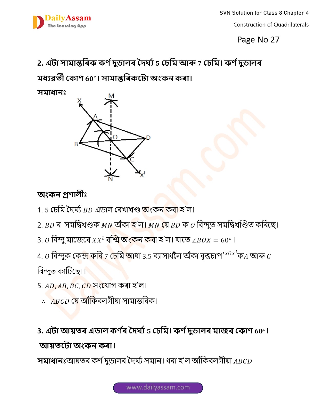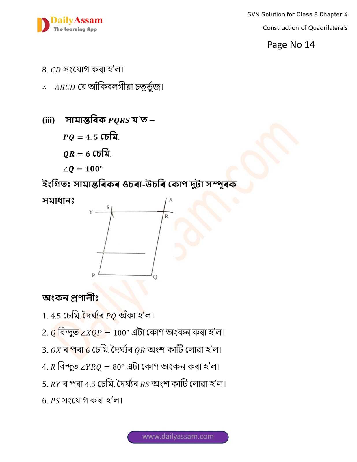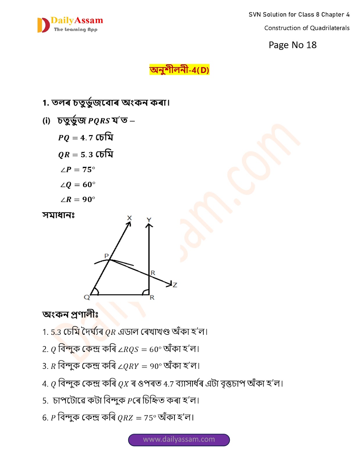 SVN Class 8 Mathematics Chapter 4 Solution | Sankardev Sishu Niketan Class 8 Mathematics Chapter 4 চতুৰ্ভুজ অংকন (Drawing quadrilaterals) Answer | 2025 - 2026