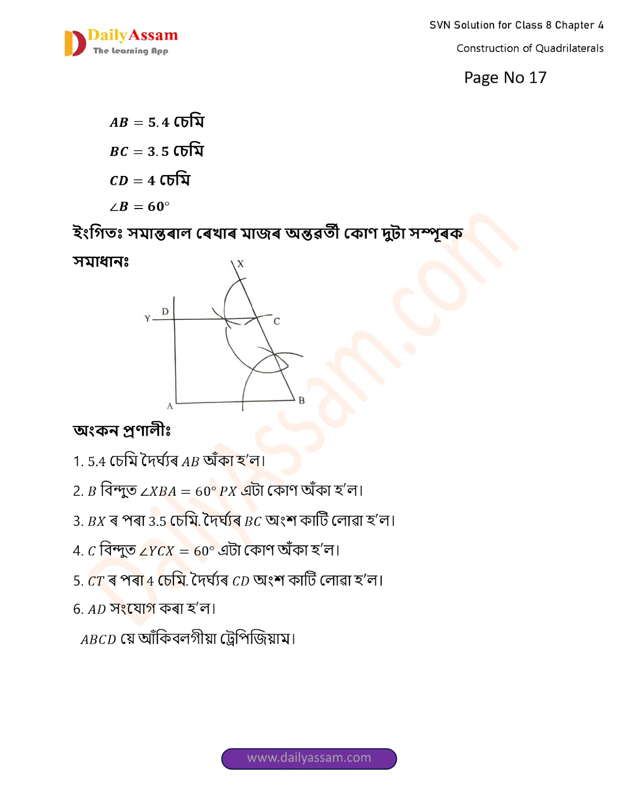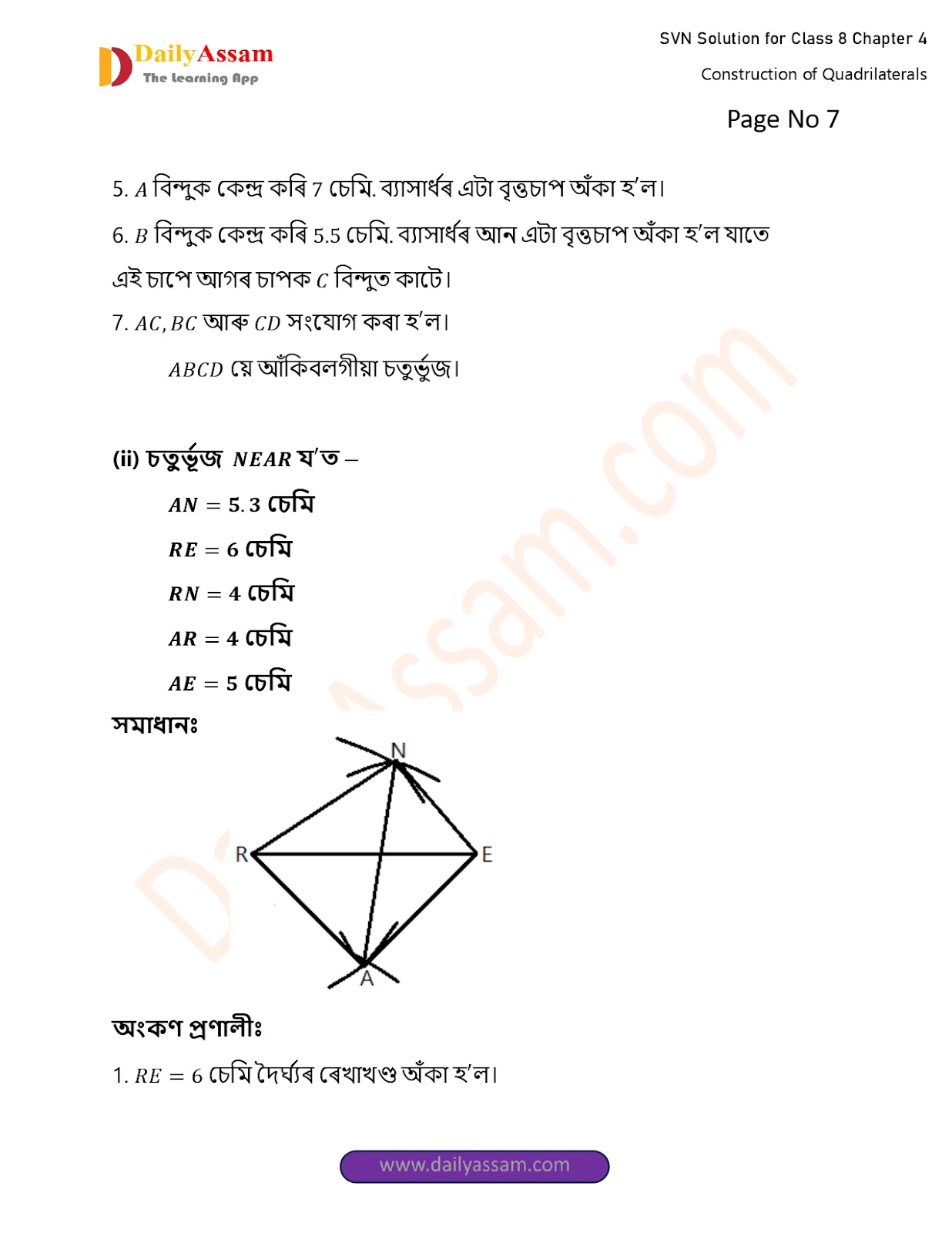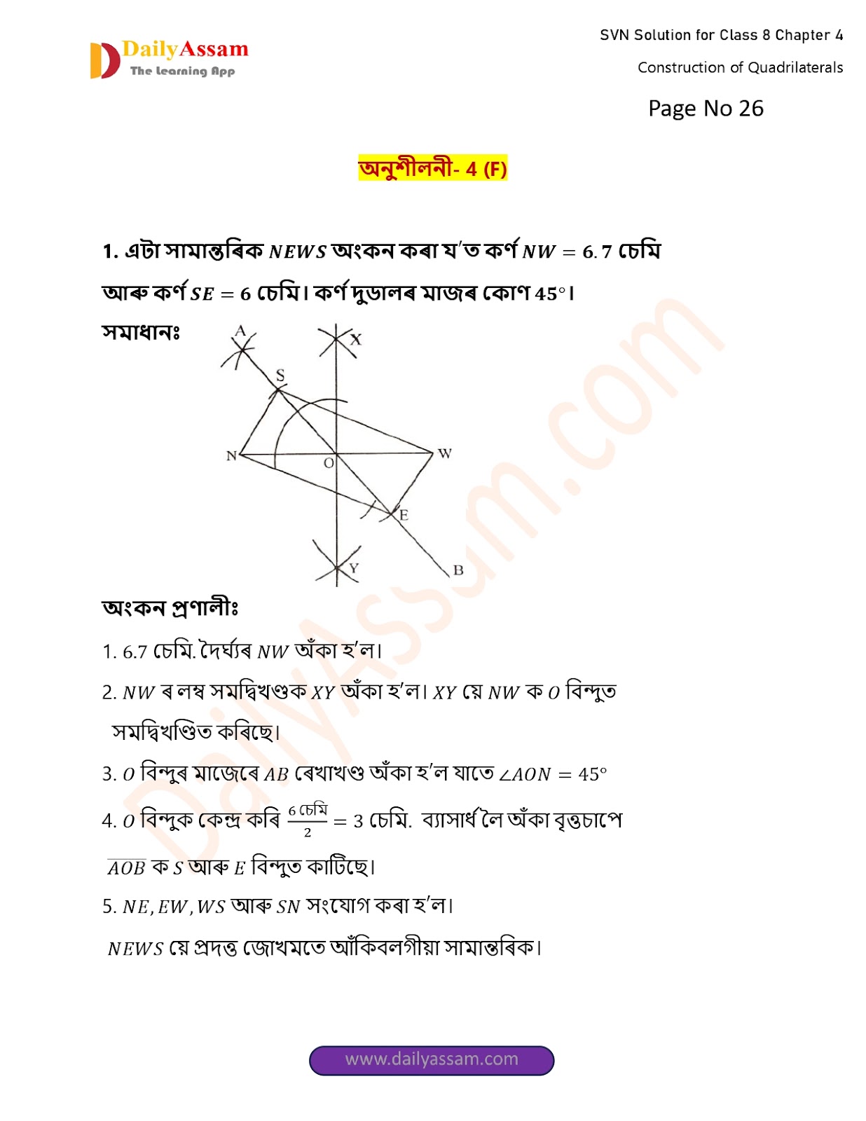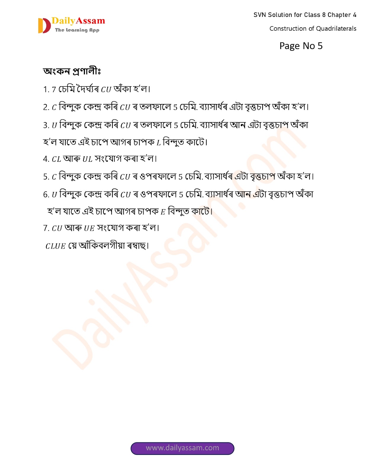 SVN Class 8 Mathematics Chapter 4 Solution | Sankardev Sishu Niketan Class 8 Mathematics Chapter 4 চতুৰ্ভুজ অংকন (Drawing quadrilaterals) Answer | 2025 - 2026