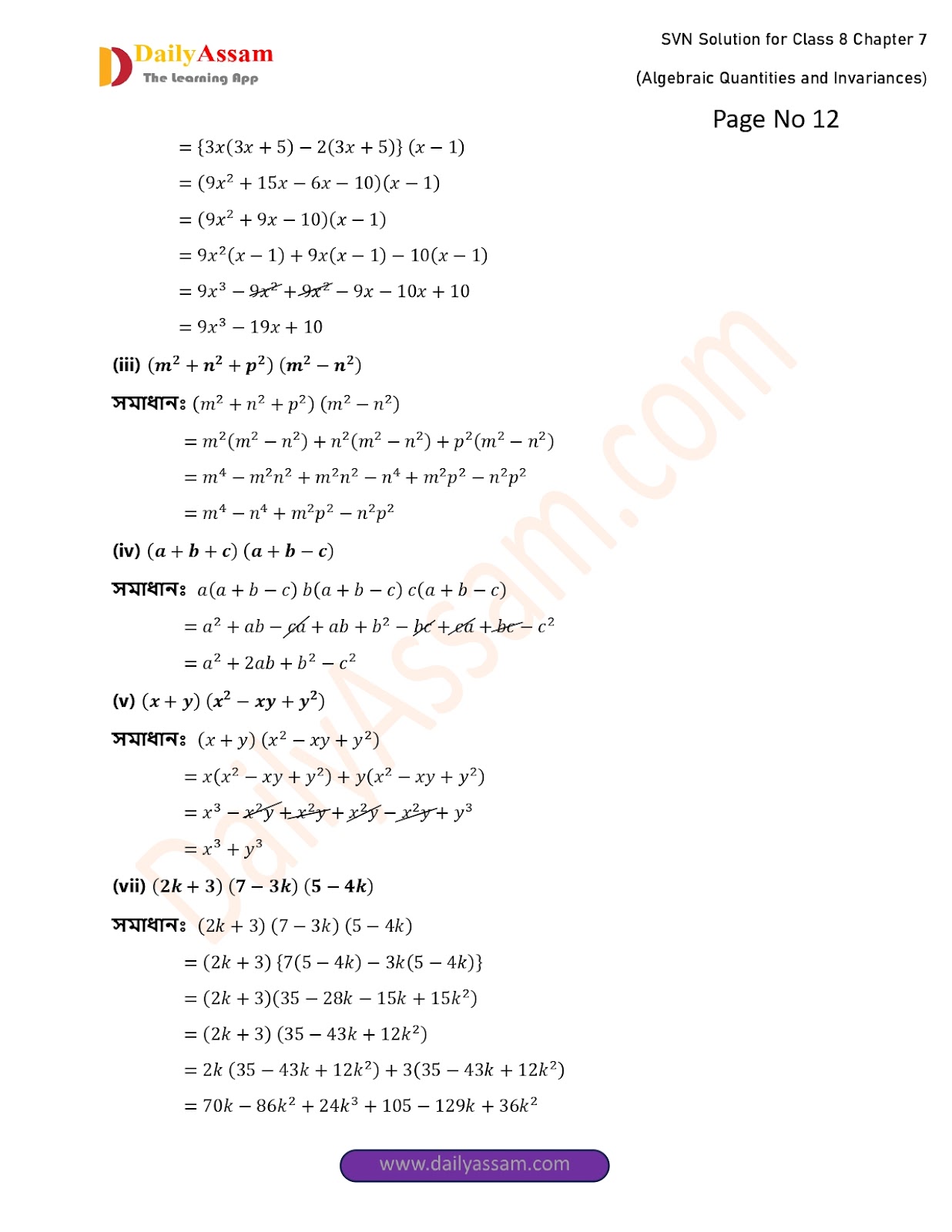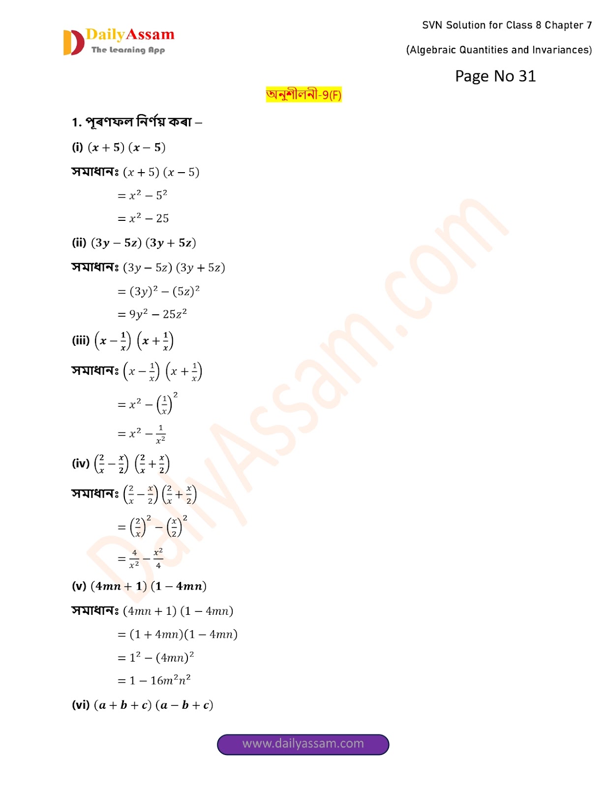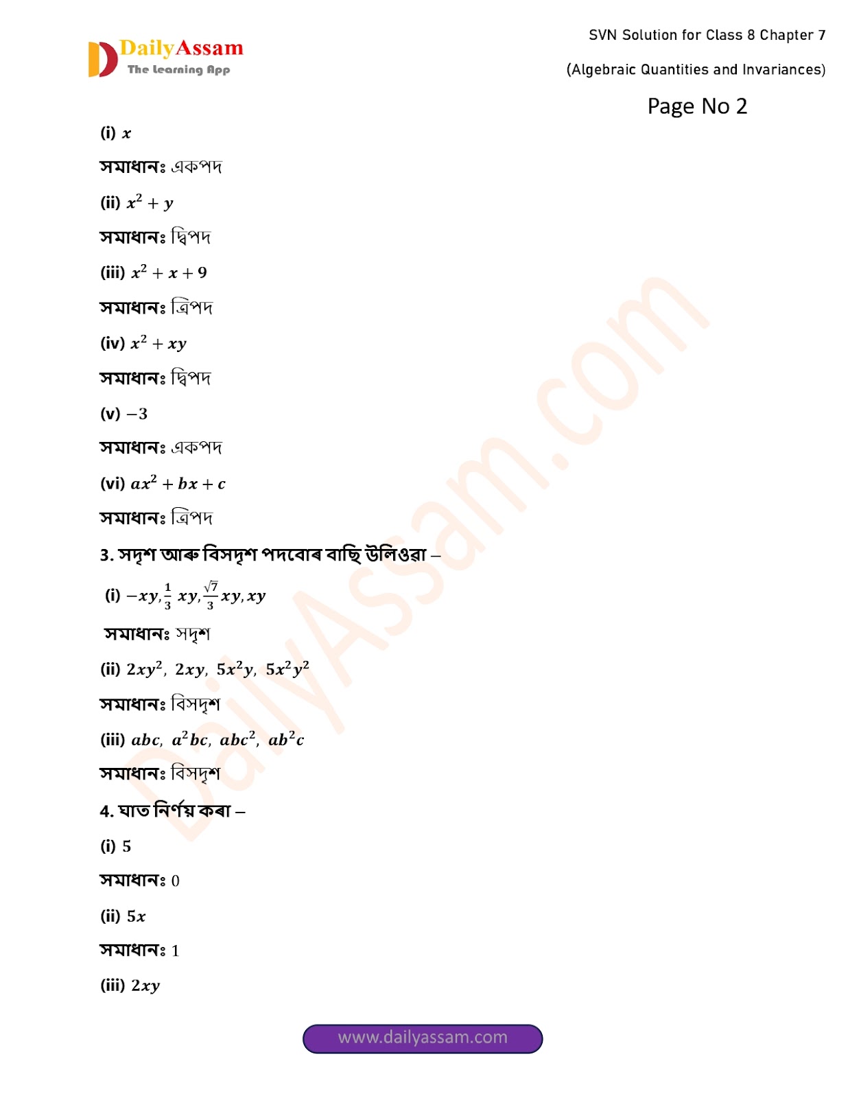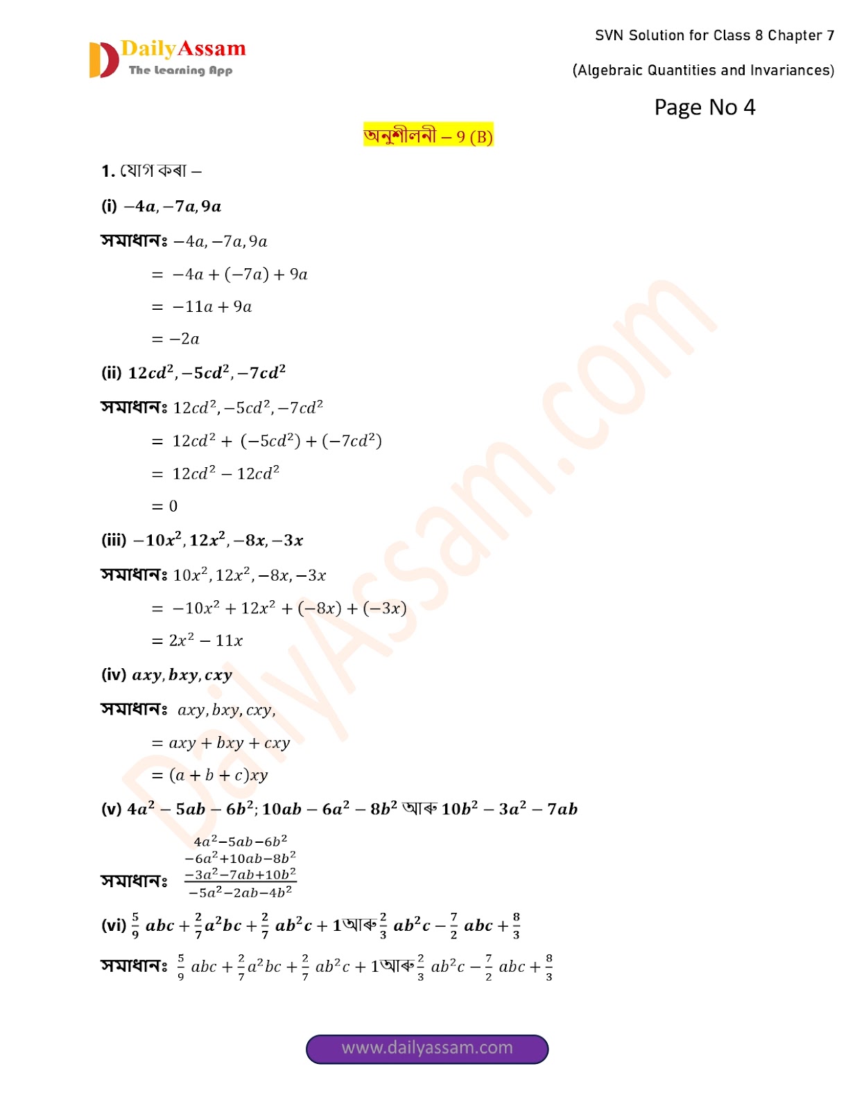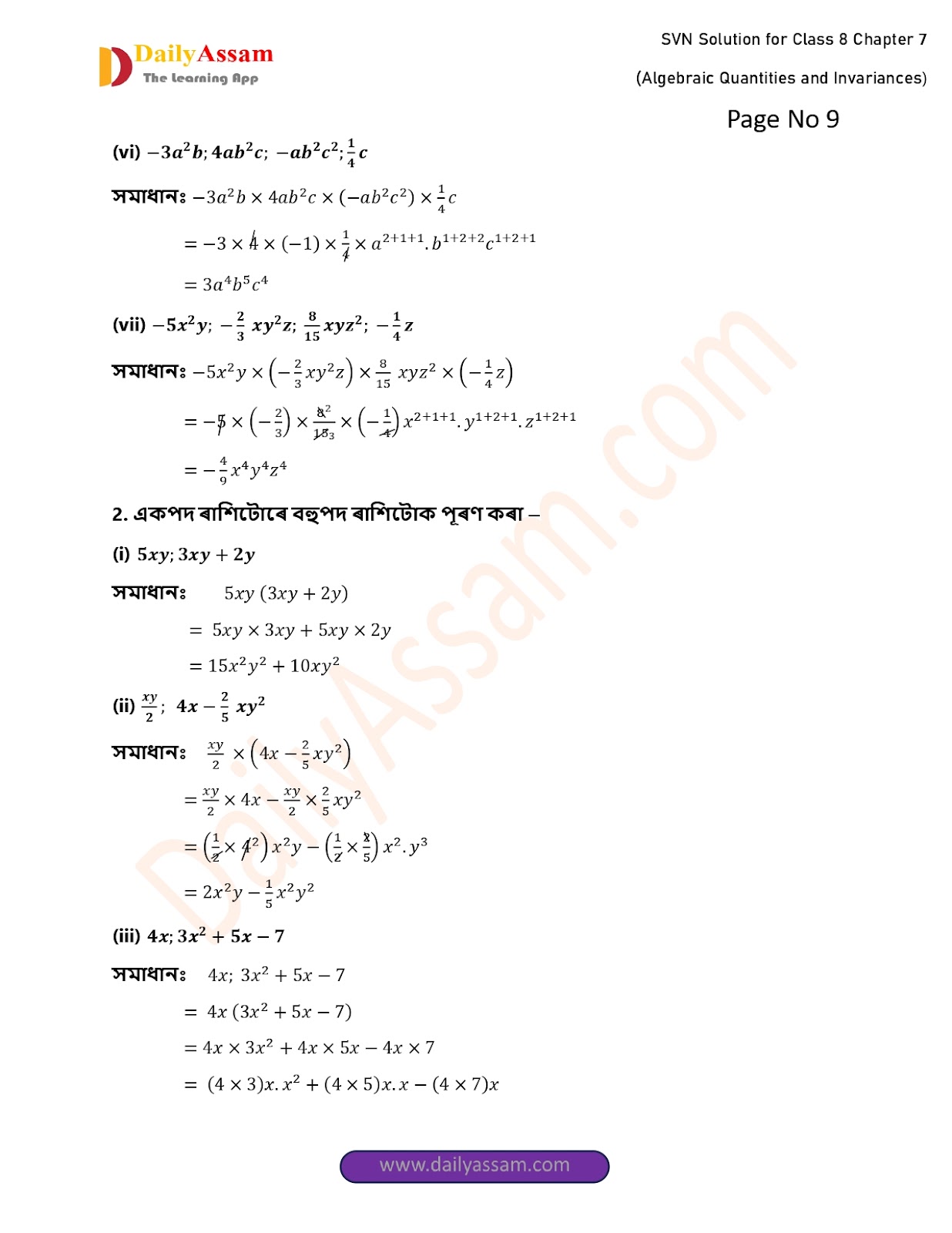 SVN Class 8 Mathematics Chapter 9 Solution | Sankardev Sishu Niketan Class 8 Mathematics Chapter 9 বীজগণিতীয় ৰাশি আৰু অভেদসমূহ (Algebraic quantities and differences) Answer | 2025 - 2026