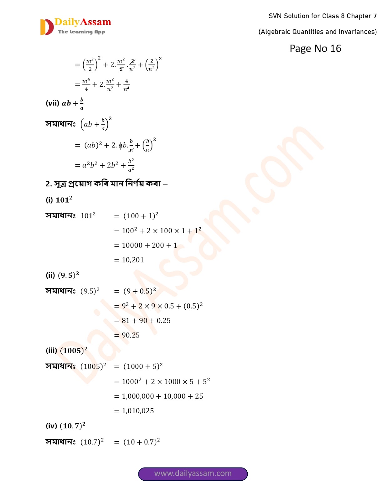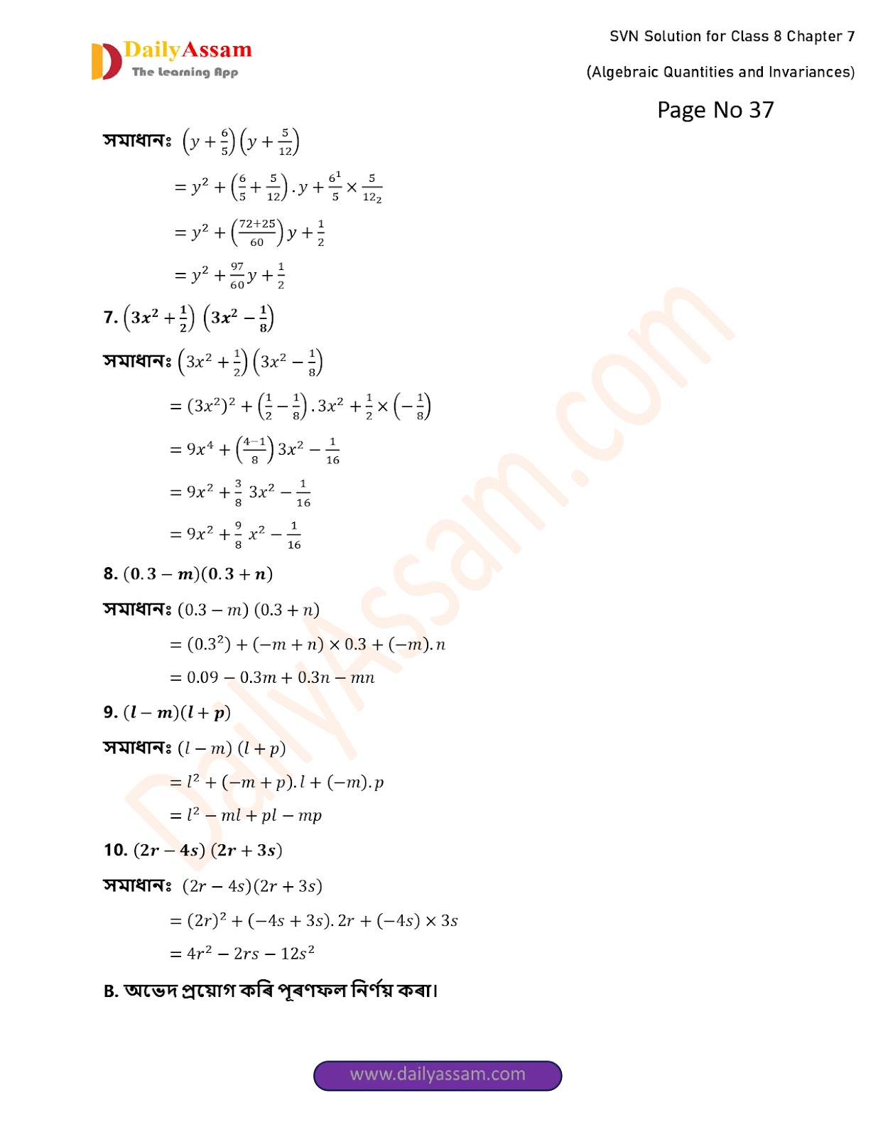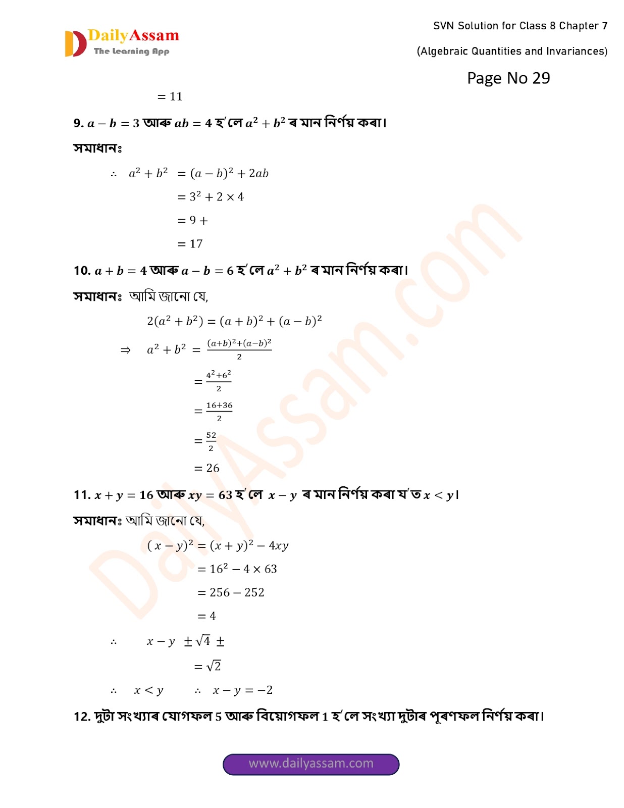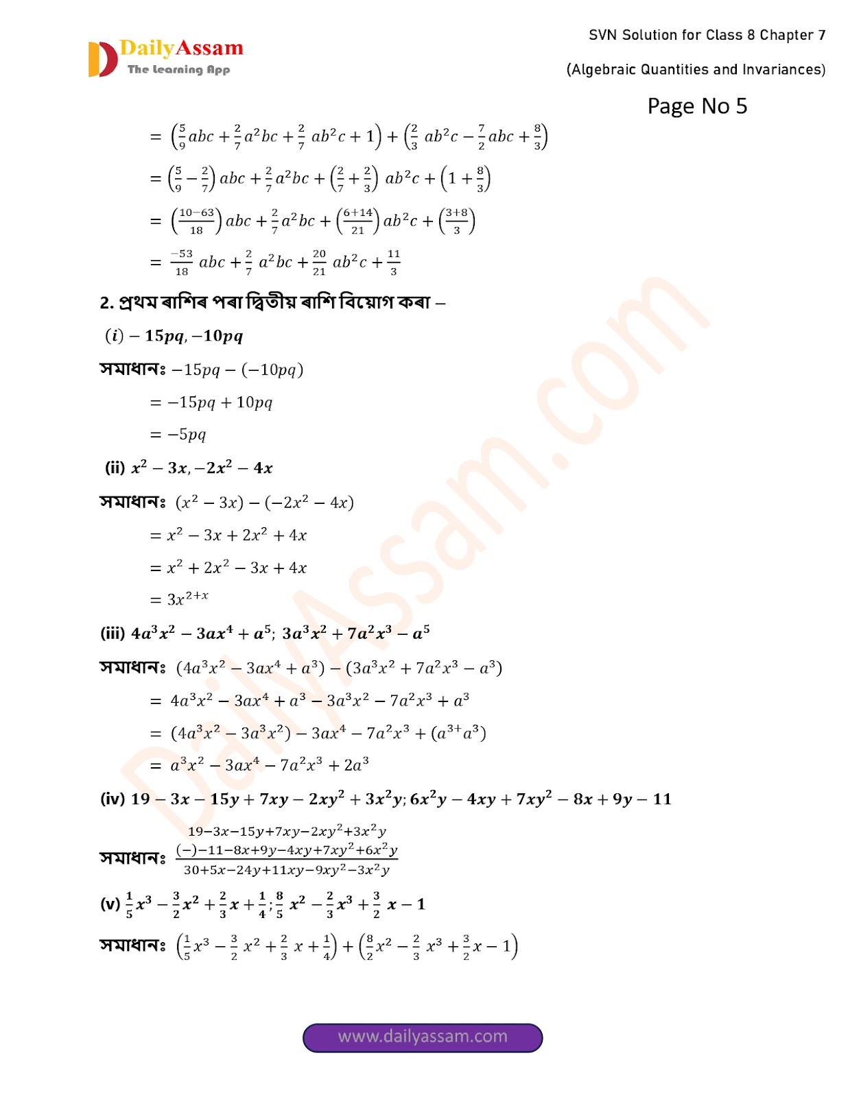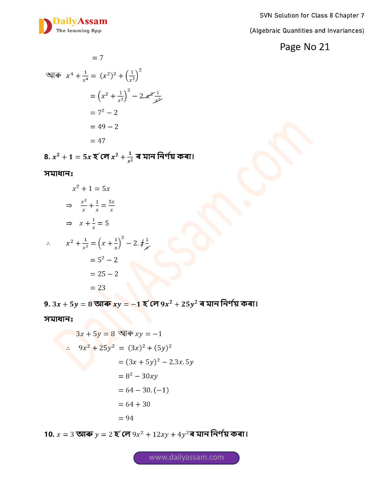 SVN Class 8 Mathematics Chapter 9 Solution | Sankardev Sishu Niketan Class 8 Mathematics Chapter 9 বীজগণিতীয় ৰাশি আৰু অভেদসমূহ (Algebraic quantities and differences) Answer | 2025 - 2026