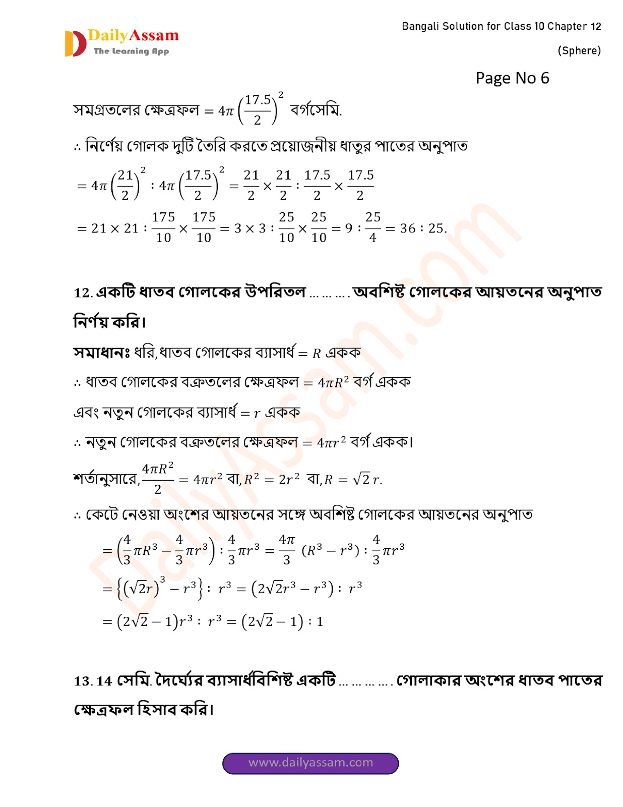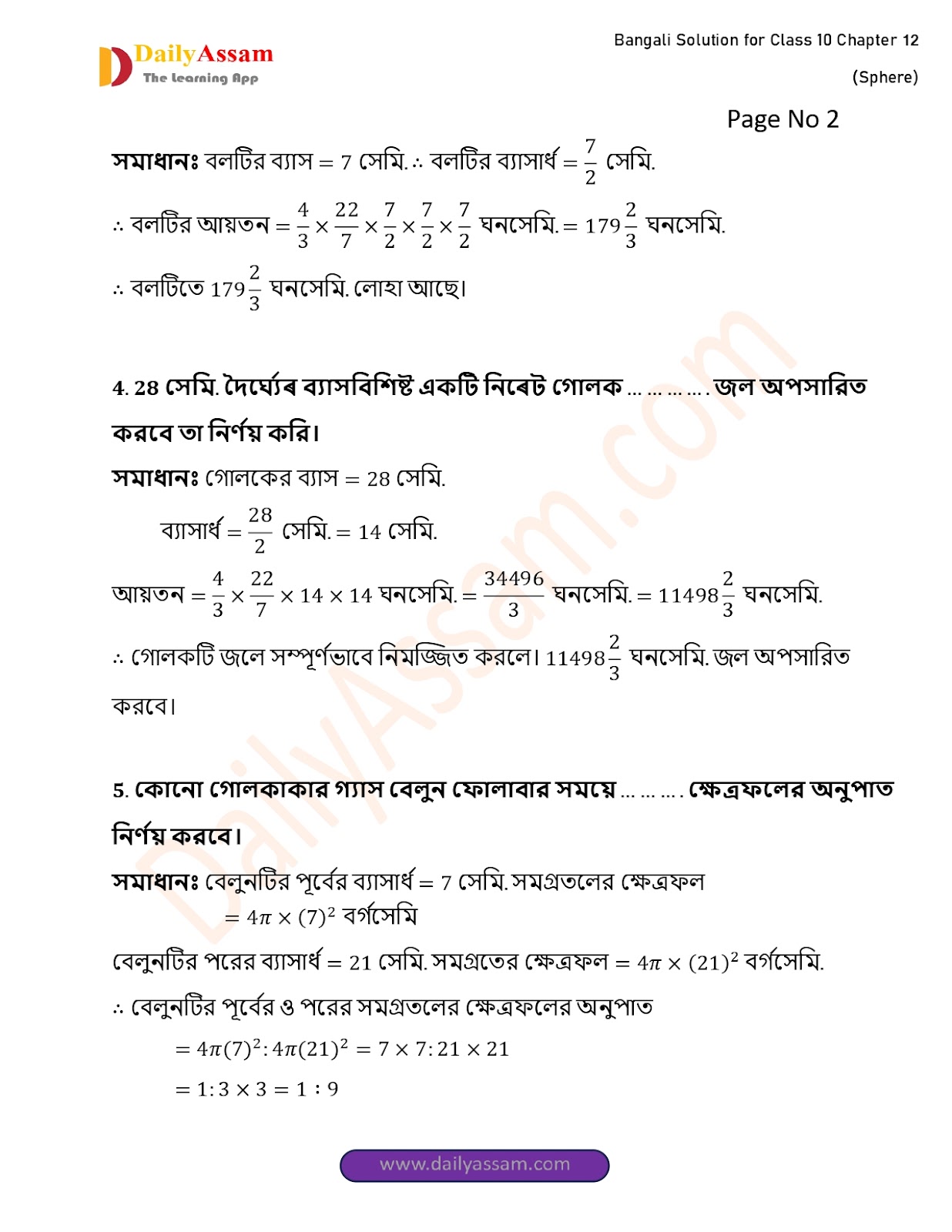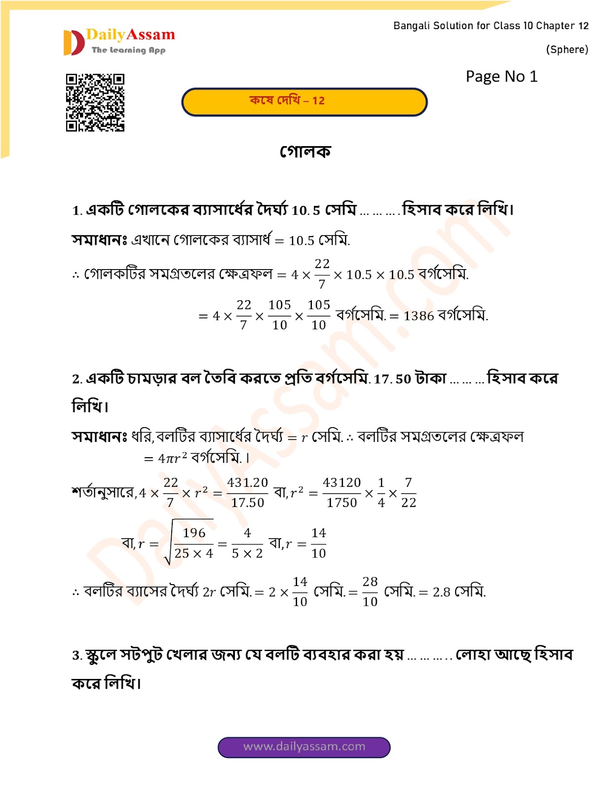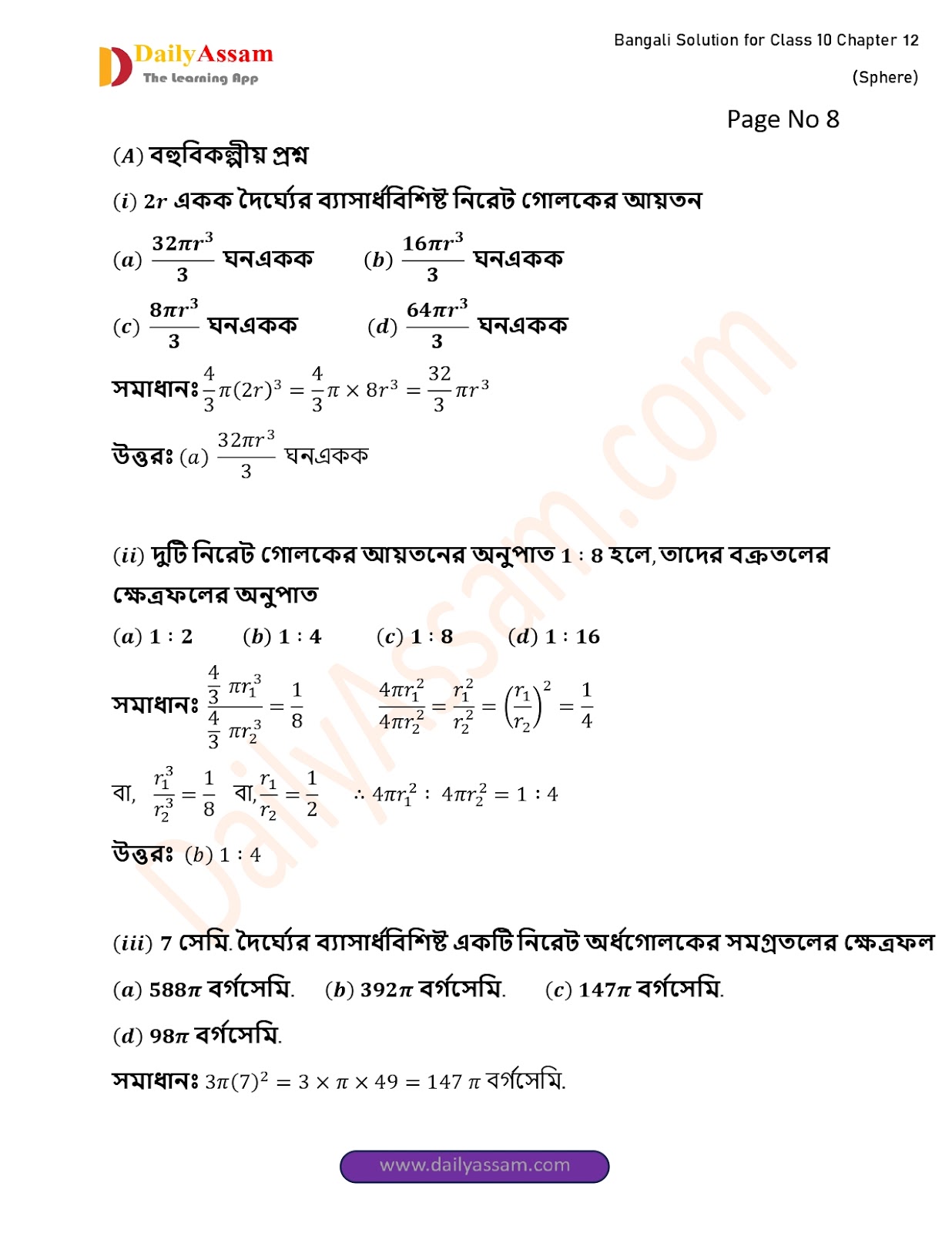 WBBSE Class 10 Mathematics Chapter 12 Solution | West Bengal Class 10 Mathematics Chapter 12 গোলক (Sphere) Answer | 2025 - 2026