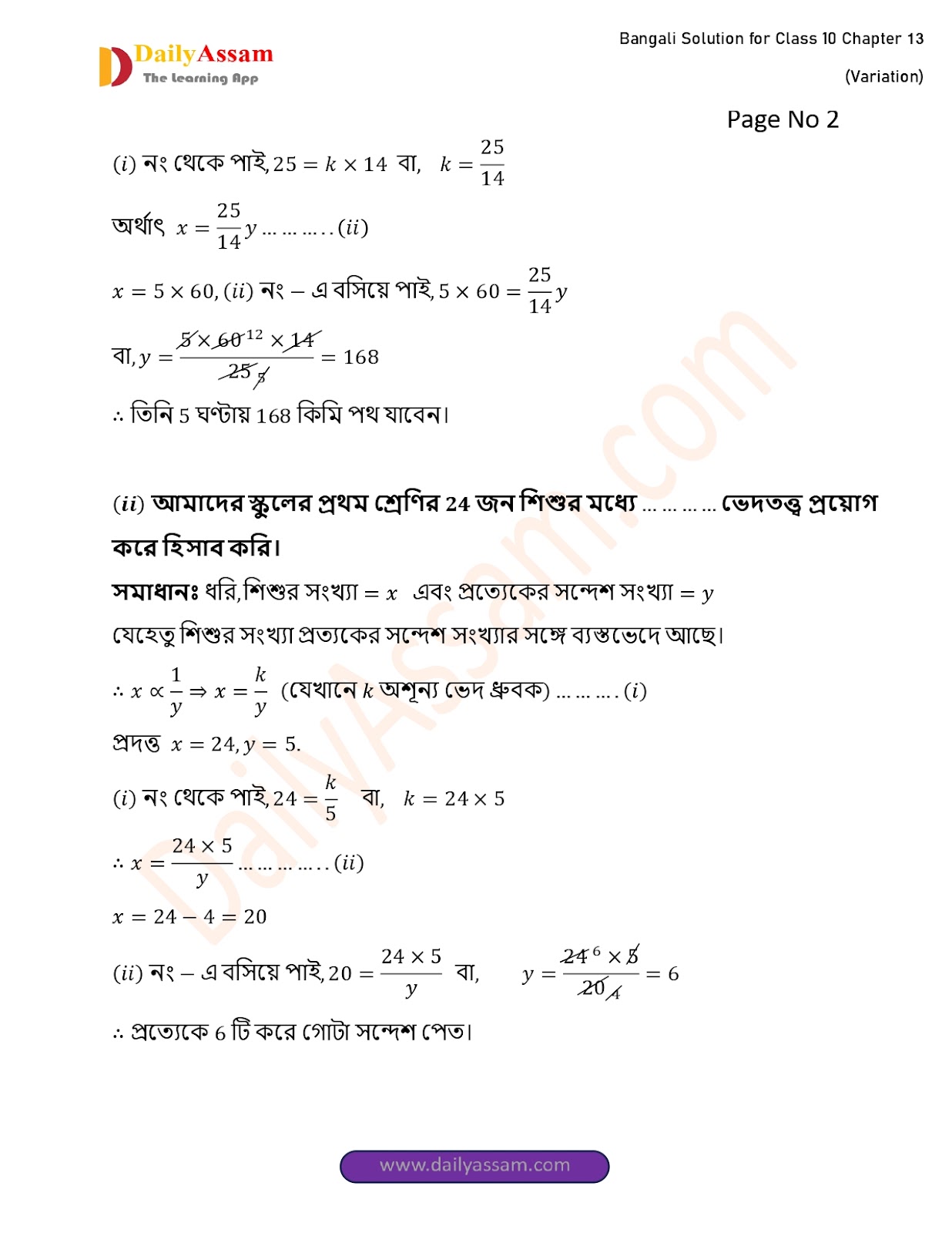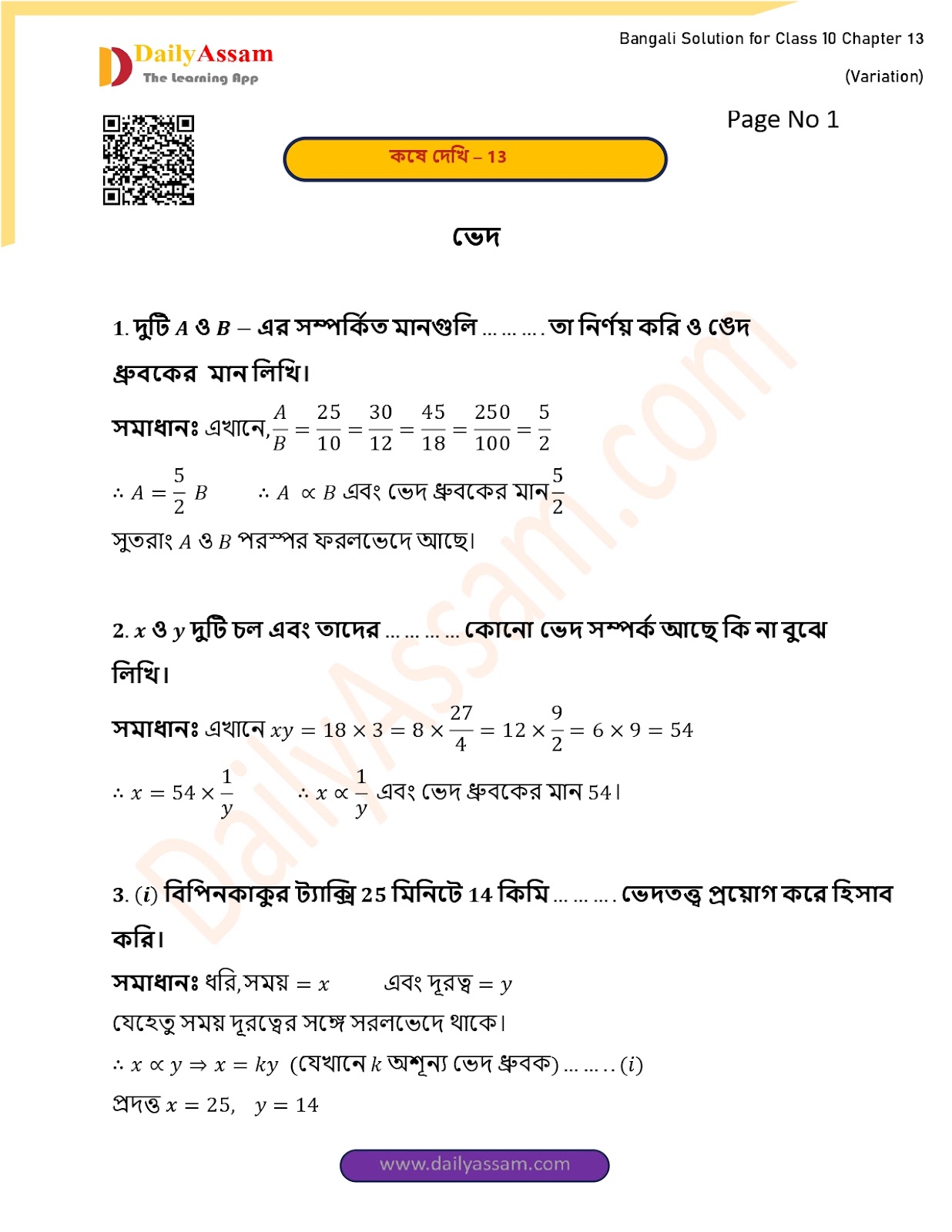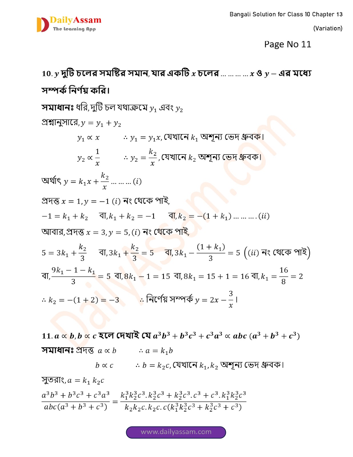 WBBSE Class 10 Mathematics Chapter 13 Solution | West Bengal Class 10 Mathematics Chapter 13 ভেদ (Variation) Answer | 2025 - 2026