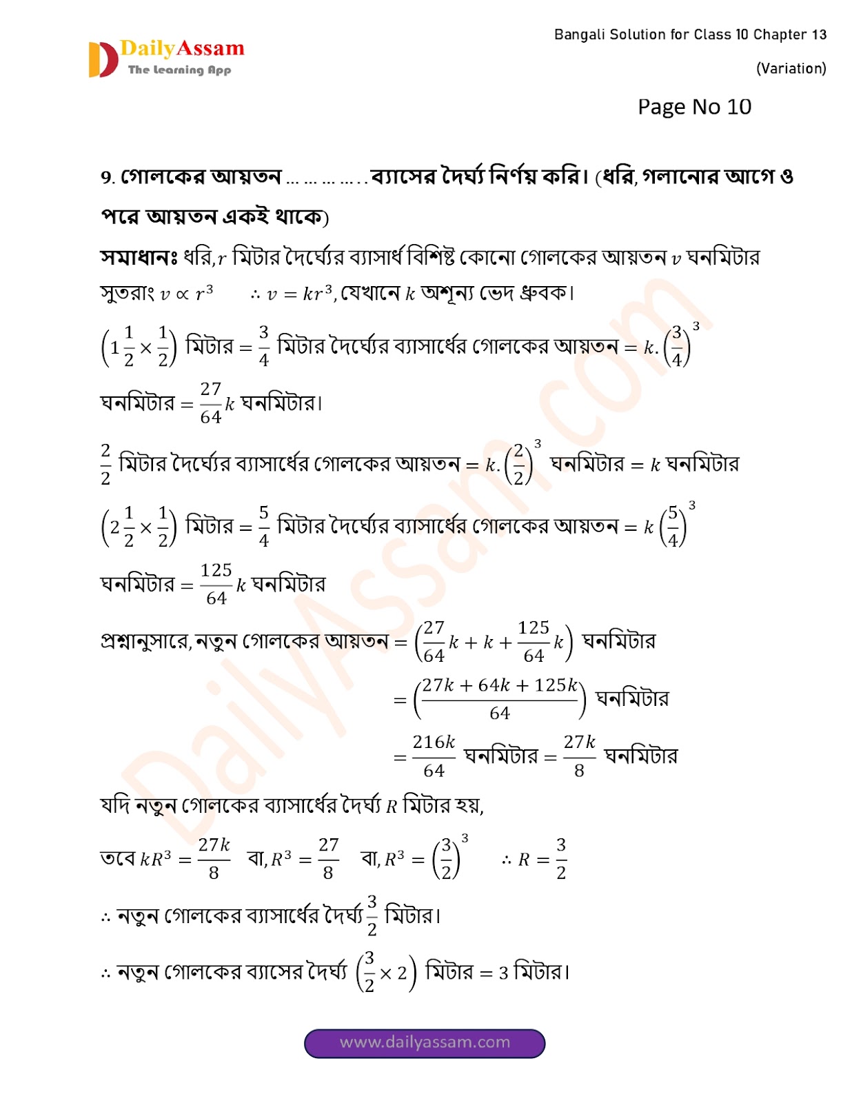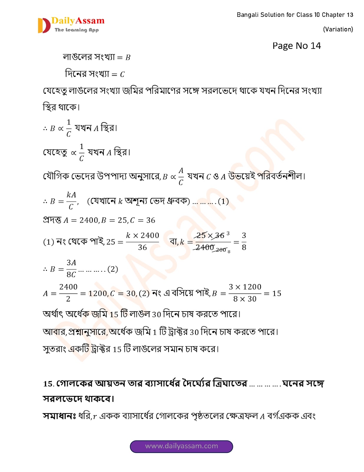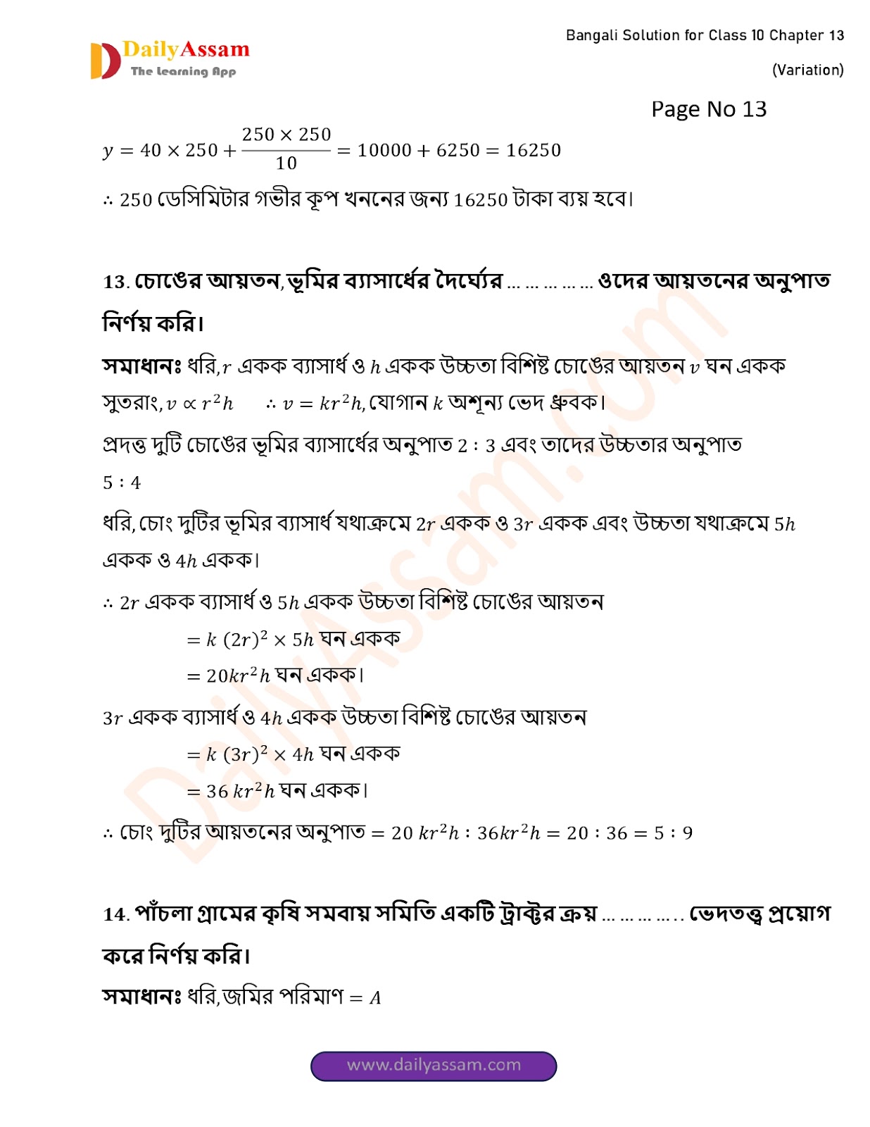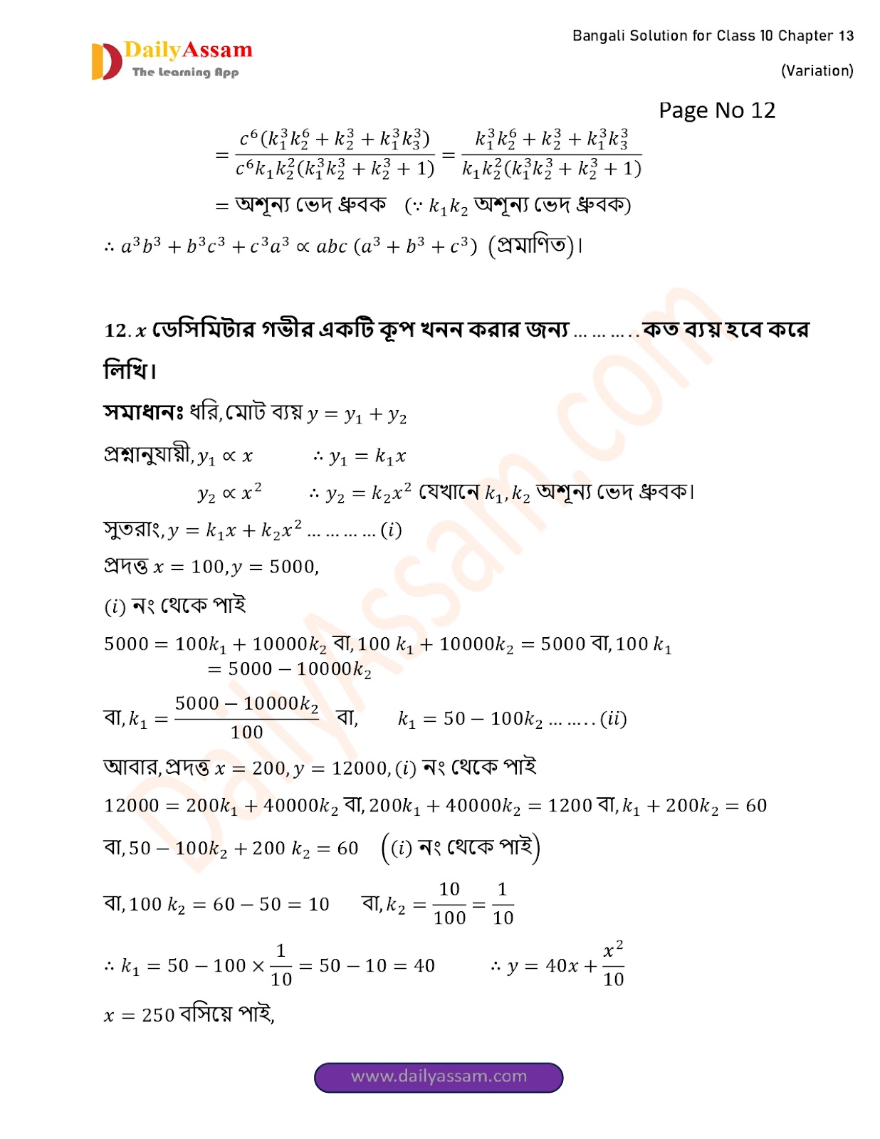 WBBSE Class 10 Mathematics Chapter 13 Solution | West Bengal Class 10 Mathematics Chapter 13 ভেদ (Variation) Answer | 2025 - 2026