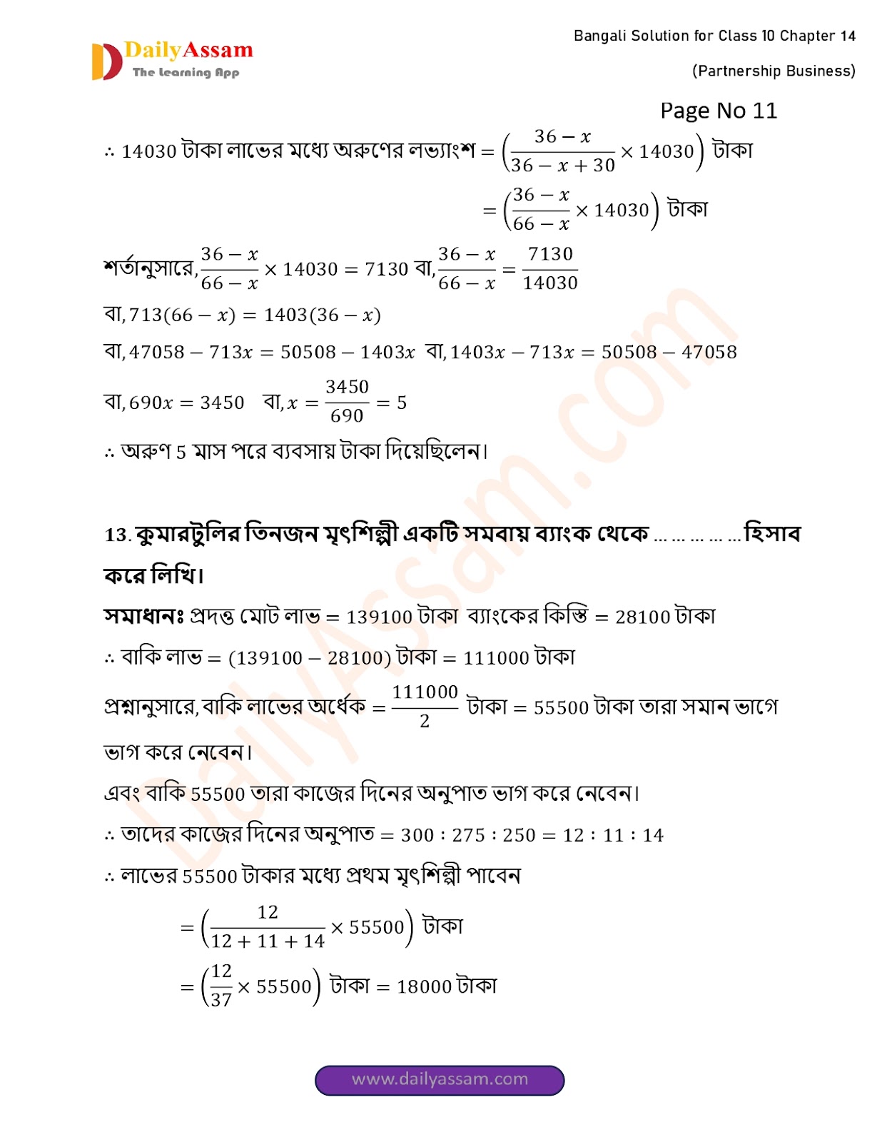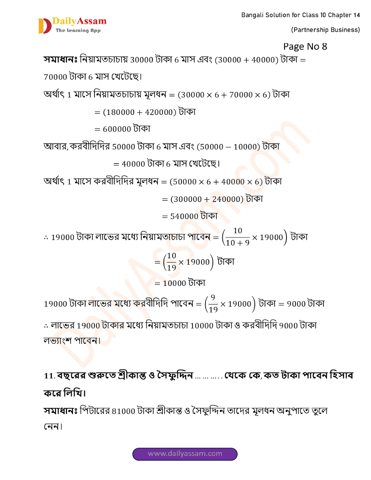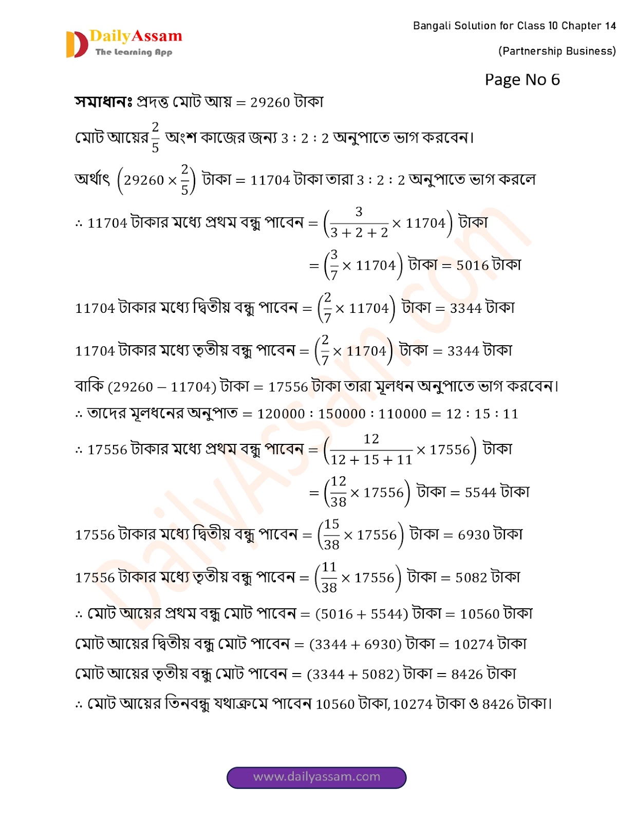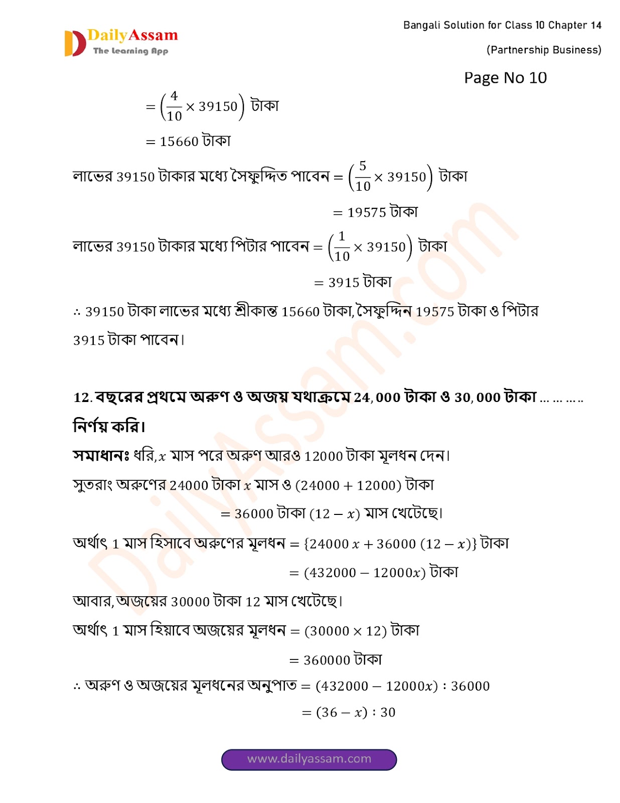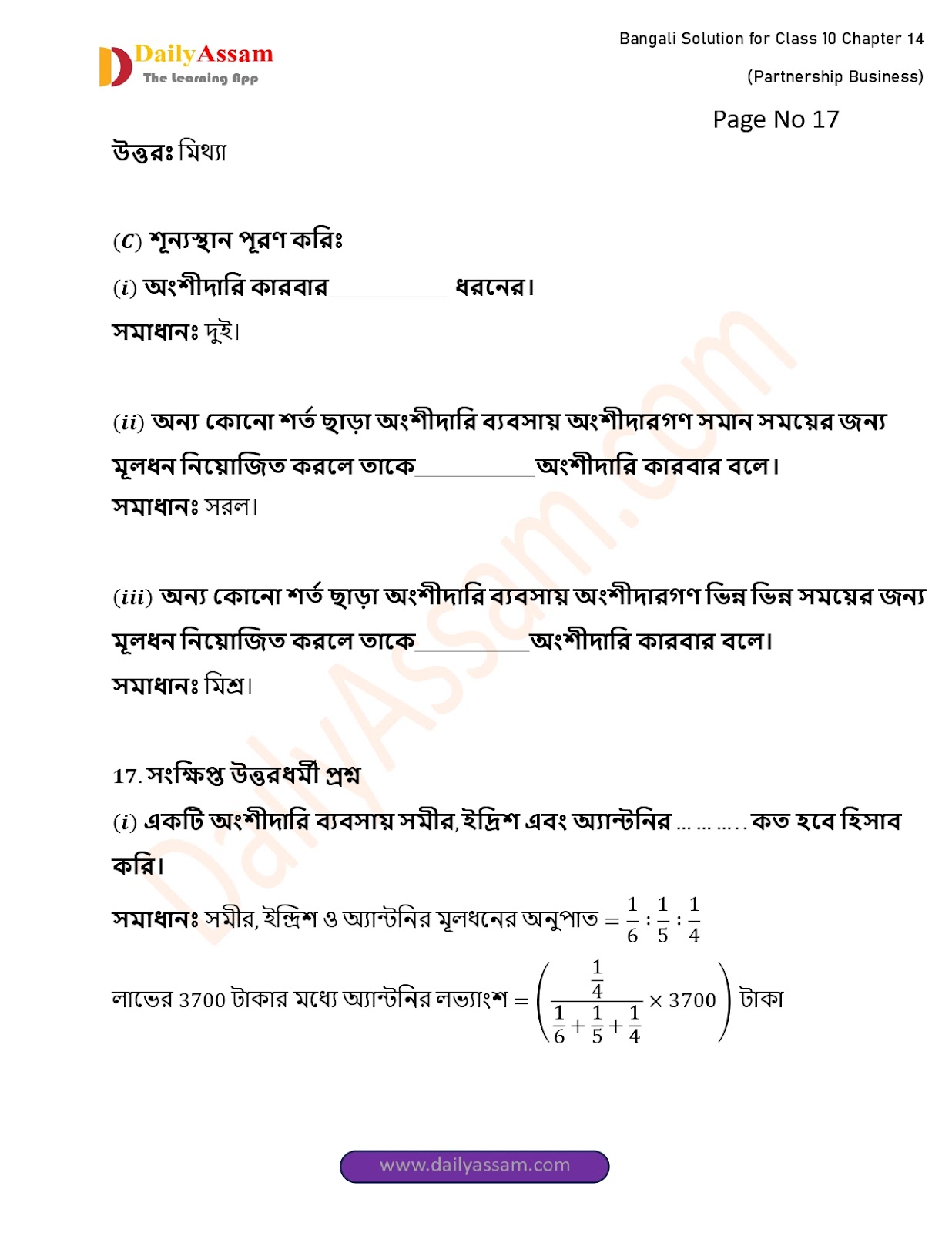 WBBSE Class 10 Mathematics Chapter 14 Solution | West Bengal Class 10 Mathematics Chapter 14 অংশীদারি কারবার (Partnership Business) Answer | 2025 - 2026