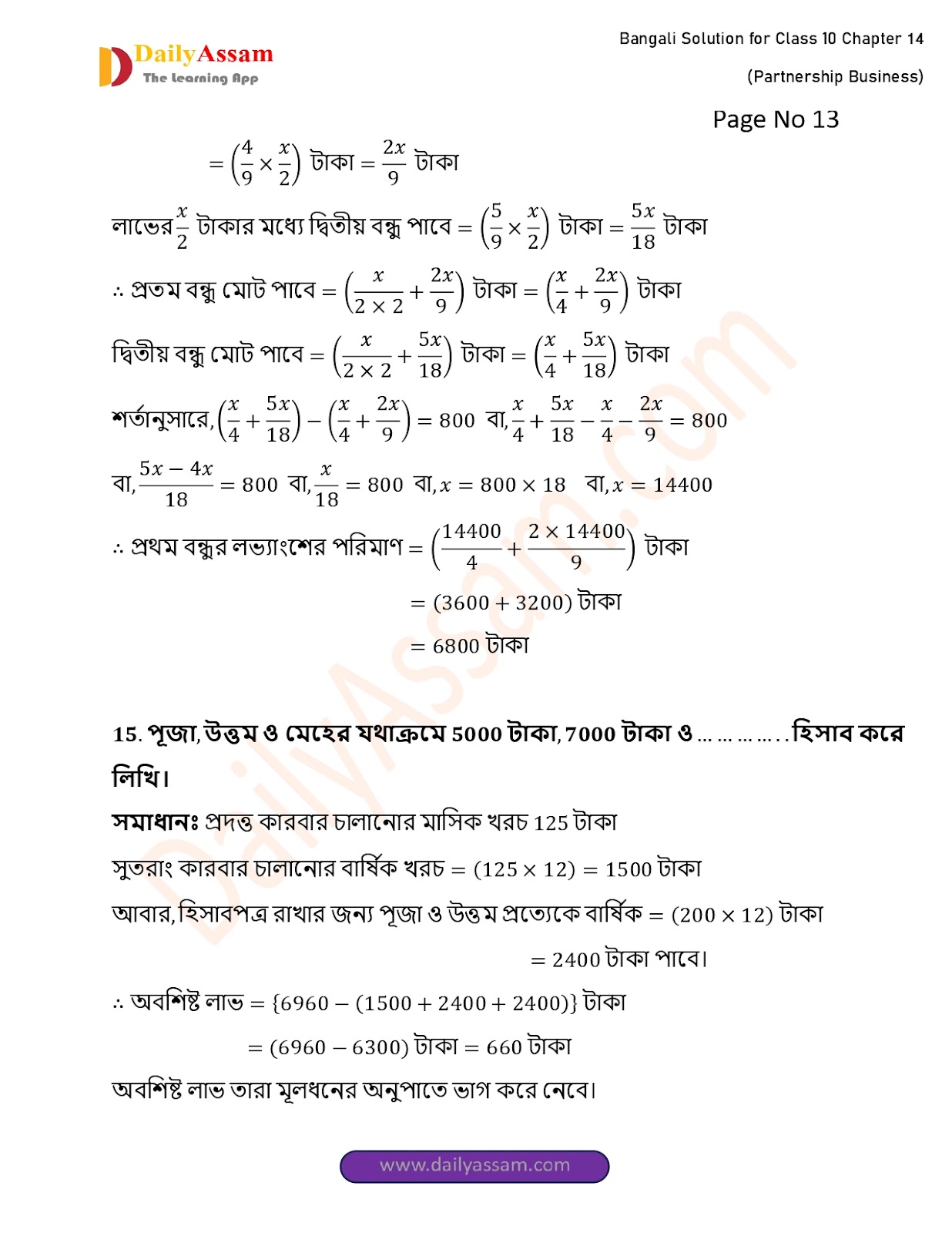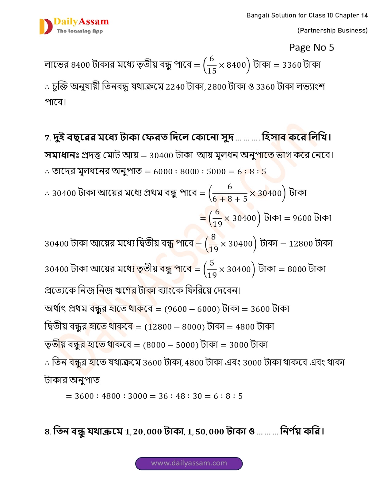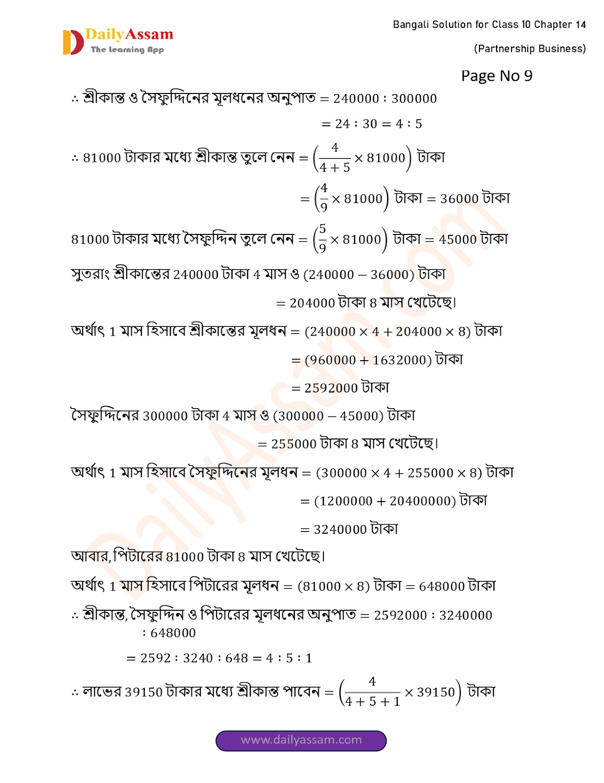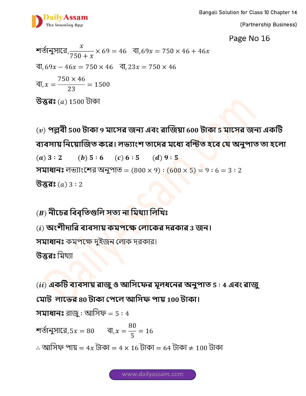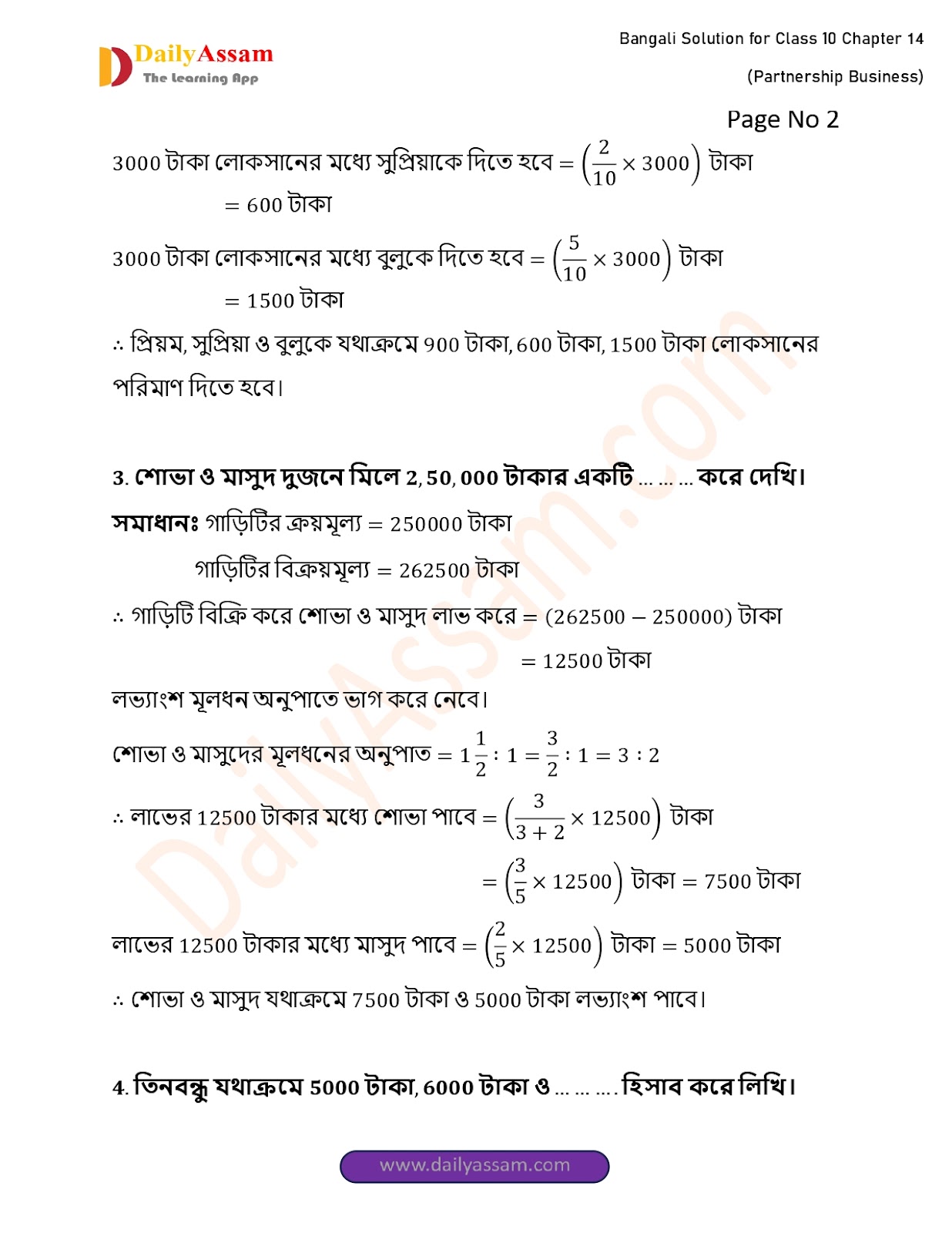 WBBSE Class 10 Mathematics Chapter 14 Solution | West Bengal Class 10 Mathematics Chapter 14 অংশীদারি কারবার (Partnership Business) Answer | 2025 - 2026