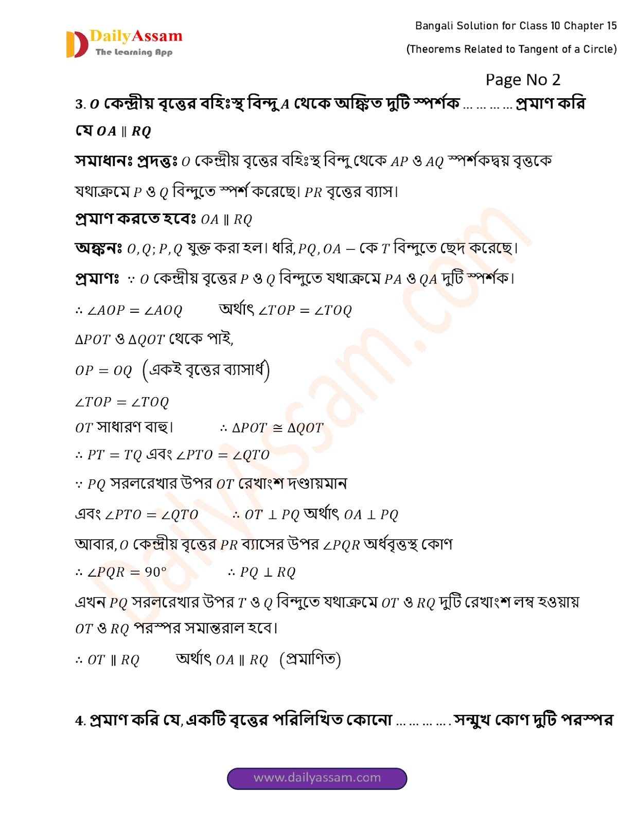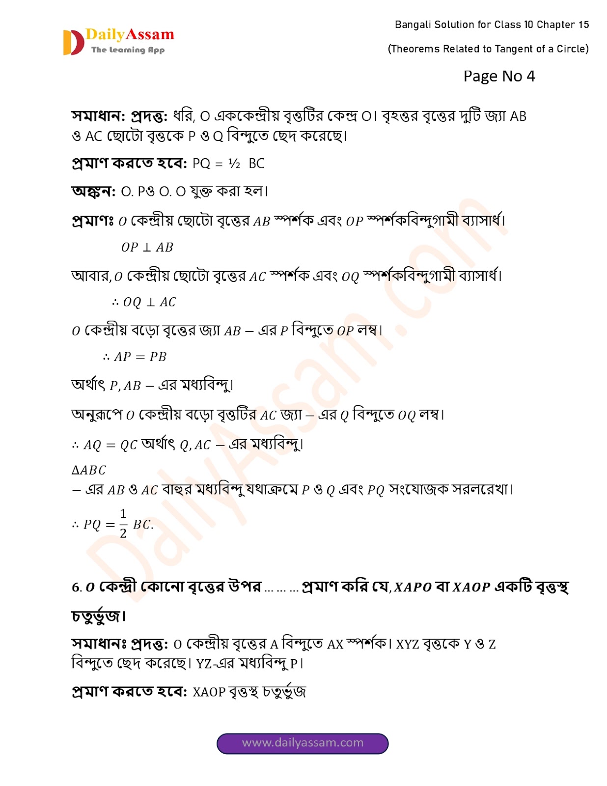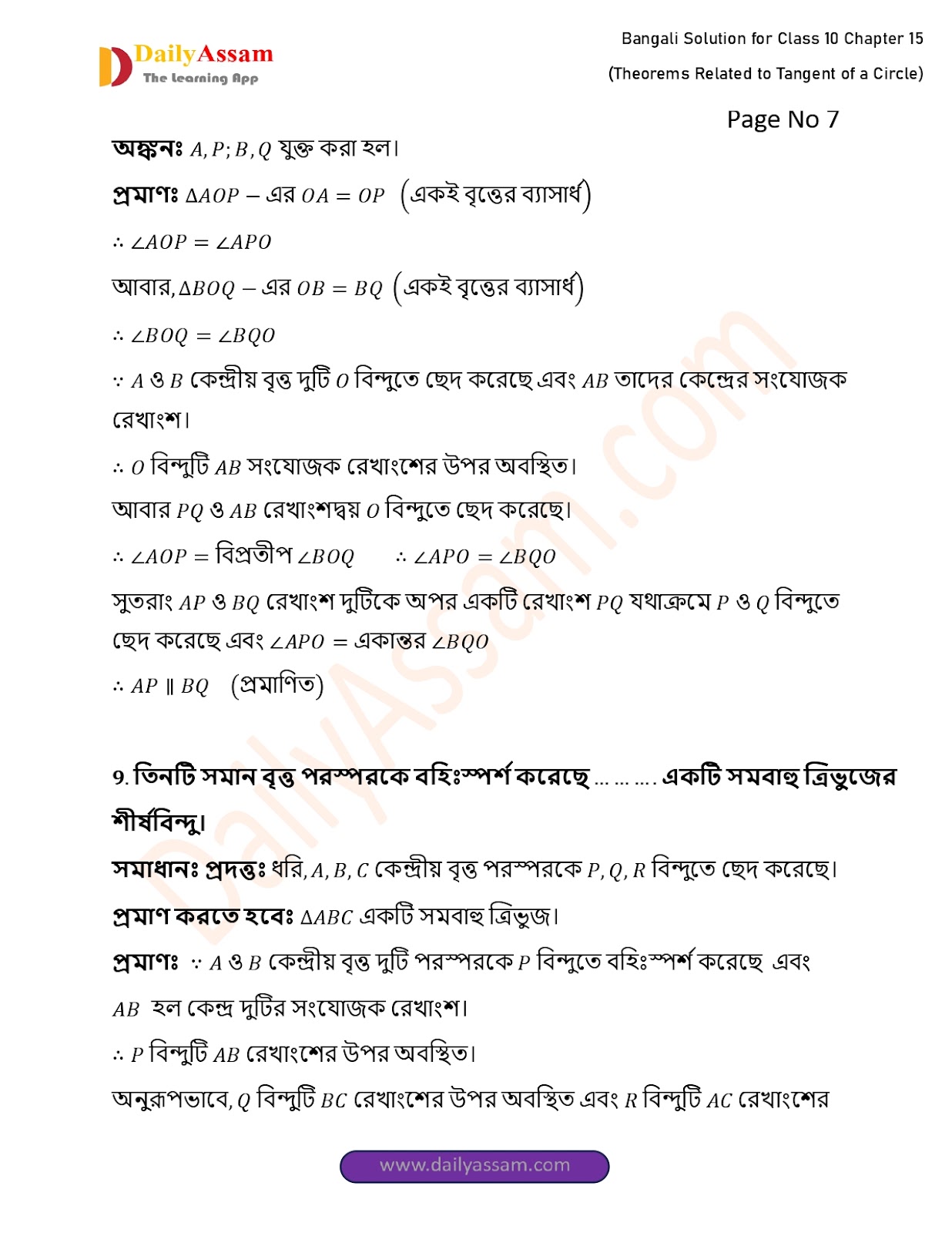 WBBSE Class 10 Mathematics Chapter 15 Solution | West Bengal Class 10 Mathematics Chapter 15 বৃত্তের স্পর্শক সংক্রান্ত উপপাদ্য (Theorems Related to Tangent of a Circle) Answer | 2025 - 2026