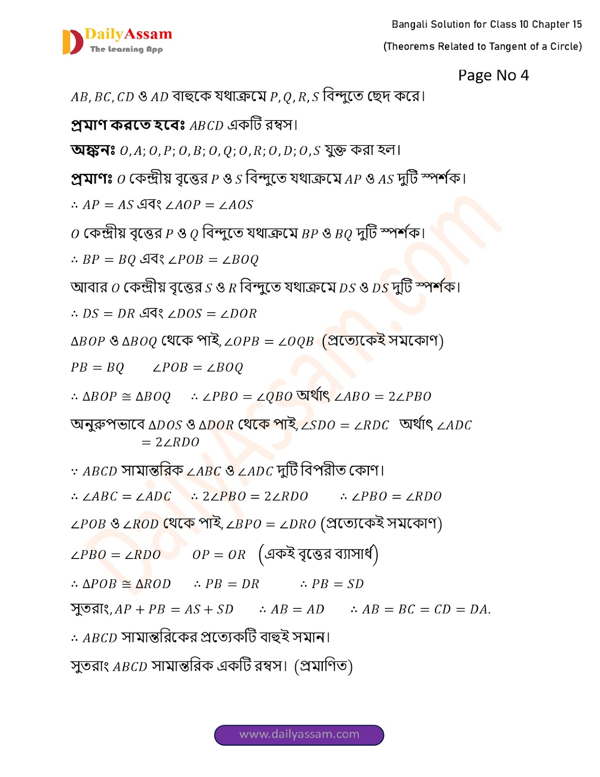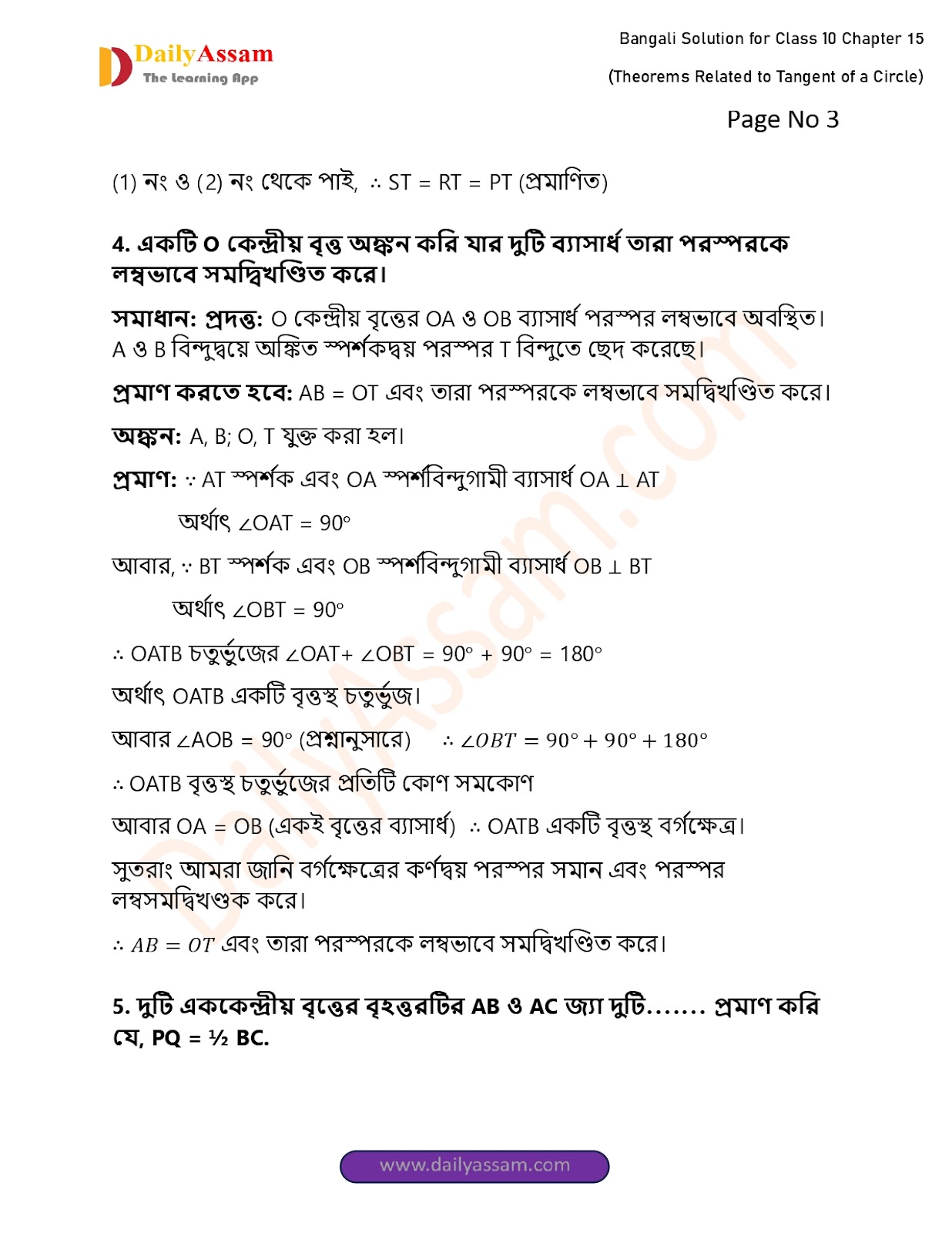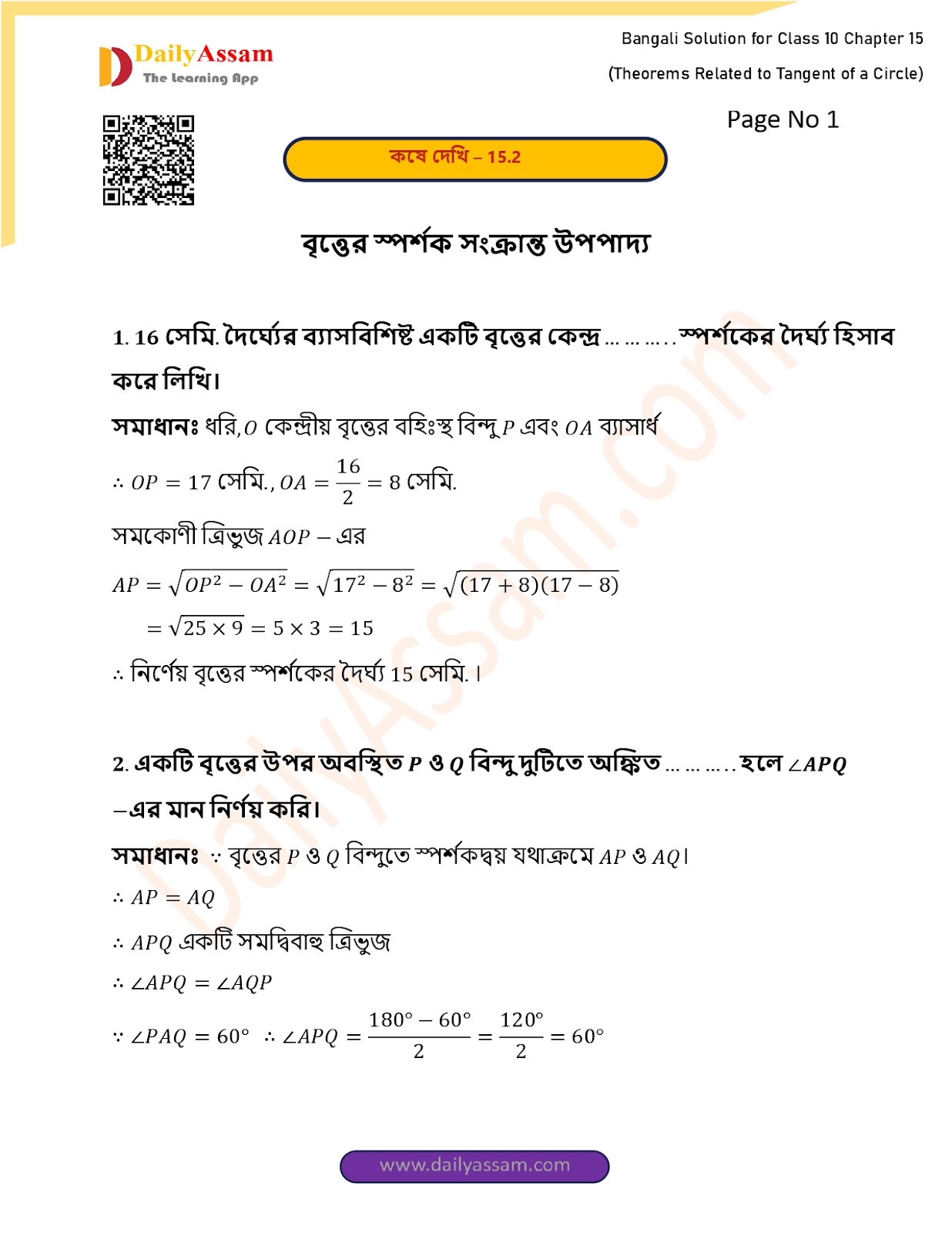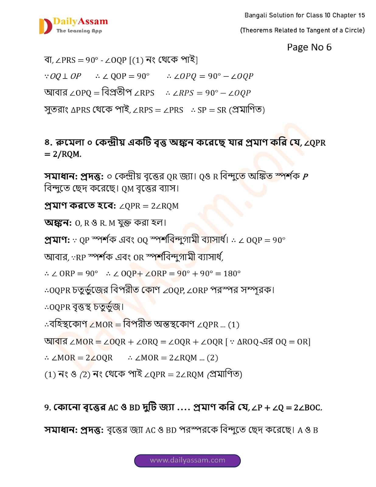 WBBSE Class 10 Mathematics Chapter 15 Solution | West Bengal Class 10 Mathematics Chapter 15 বৃত্তের স্পর্শক সংক্রান্ত উপপাদ্য (Theorems Related to Tangent of a Circle) Answer | 2025 - 2026
